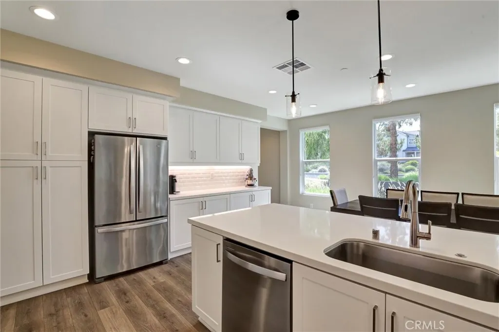 Welcome to 176 Novel, a rare two-story corner-lot home located in the highly desirable Novel Park at the Great Park Neighborhoods. Built in 2020 and thoughtfully upgraded, this residence offers an oversized open-concept floor plan with 2 spacious bedrooms and 2.5 bathrooms, delivering an exceptional blend of modern design and everyday comfort. At 1,845 square feet, this home is incredibly large for a two-bedroom plan, offering more space than most comparable condos in the area. The open layout is ideal for both entertaining and daily living, featuring a seamless flow between the kitchen, dining, and living areas with abundant natural light. The large open kitchen features an oversized island and thoughtful upgrades including newer stainless-steel appliances, quartz countertops, and a timeless subway tile backsplash, offering a modern yet inviting space ideal for gathering and entertaining. Upstairs, the home offers a well-designed and private living experience. The spacious primary suite serves as a relaxing retreat, featuring a generous layout, a well-appointed en-suite bathroom, and ample closet space. The second bedroom is also thoughtfully sized and includes its own en-suite bathroom and walk-in closet, making it ideal for guests, family members, or a home office setup. Located within the thoughtfully planned Great Park Neighborhoods, residents enjoy access to beautifully maintained community amenities including parks, walking trails, playgrounds, and recreational areas. The home is conveniently situated near Woodbury Town Center, Irvine Spectrum Center, and a wide array of shopping, dining, and entertainment options, offering both lifestyle convenience and everyday practicality. The property is part of the award-winning Irvine Unified School District, consistently recognized for its academic excellence. With a prime corner-lot location, modern upgrades, and proximity to everything Irvine has to offer, 176 Novel presents a rare opportunity to own a spacious and contemporary home in one of Orange County’s most sought-after communities.