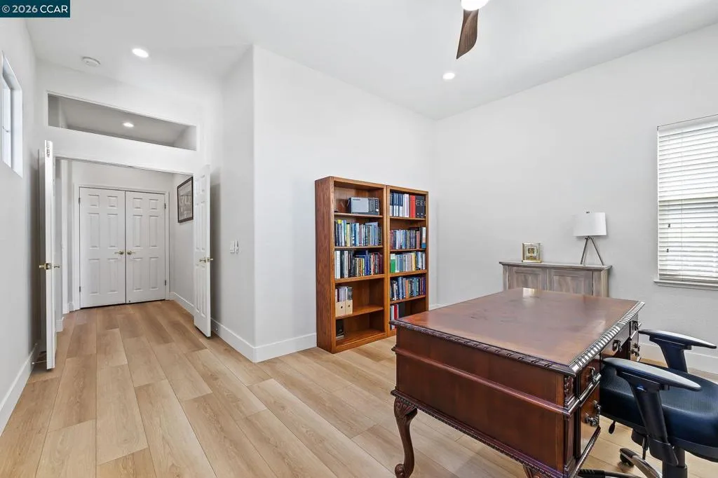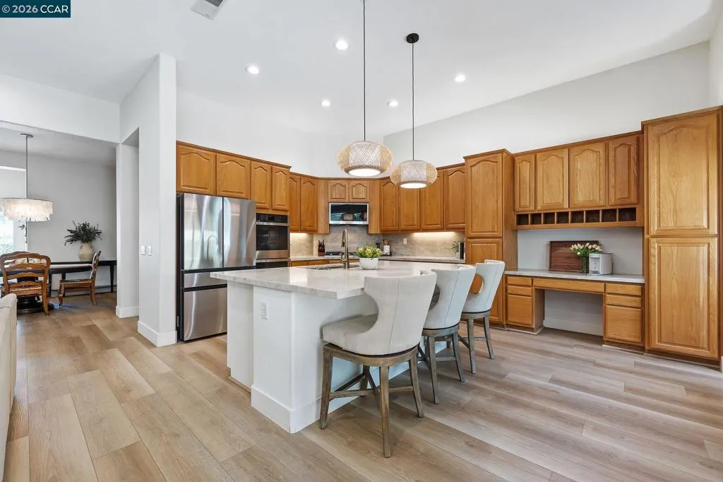 Beautifully Upgraded Chesapeake Floor Plan! Light, bright, and beautifully upgraded, this enhanced Chesapeake floor plan stands out from the moment you walk in. Extensively updated in 2024, the home features wide-plank luxury vinyl flooring, new baseboards, fresh interior and ceiling paint, and modern lighting throughout—creating a clean, cohesive feel across the home. The fully reimagined kitchen is the centerpiece, featuring stainless steel appliances, Taj Mahal quartzite countertops with a full-height backsplash, and a custom 8’x5’ island crafted for both everyday living and effortless entertaining. The layout is well designed, with open-concept and two spacious primary suites on opposite sides for privacy—ideal for guests or multigenerational living—plus a dedicated office and a flexible bonus room for hobbies, fitness, or additional living space. Step outside to a private backyard with no rear neighbors, complete with low-maintenance turf in both the front and back, a sprinkler system, and a remote-controlled awning that provides additional shade for comfortable outdoor living. Additional upgrades include owned solar with battery backup and no true-up electric bill, an EV charger, and all appliances included—delivering comfort, efficiency, and long-term value. Located in Summerset, a premier 55+ active adult community, residents enjoy resort-style amenities including an Olympic-size pool, spa, clubhouse, fitness center, pickleball, tennis, and bocce—all with low HOA dues. A home that delivers on every level—this is the one!