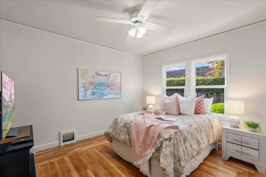 Experience the quintessential Willow Glen lifestyle in this enchanting 3-bedroom, 2-bathroom Spanish-style residence, making its debut on the market for the very first time! Perfectly positioned just steps from Downtown Willow Glen's bustling retail corridor of Lincoln Avenue and seconds away from the neighborhood's premier boutiques, coffee shops, and dining. Spanning just over 1,600 SF, this home radiates warmth and authenticity. The living room serves as a stunning centerpiece with its rustic wood-beamed ceilings and a signature arched picture window. Beautiful original hardwood floors flow throughout, leading to an updated kitchen featuring crisp white cabinetry, stone countertops, and a double wall oven. Perhaps the most exciting feature is the additional 380 SF bonus room (not included in the official square footage). With its classic tile flooring and private garden access, this versatile space is the perfect canvas for an exceptional home office, fitness studio, or guest retreat. While the charm is historic, the infrastructure is sound and it is move-in ready including a new HVAC system and water heater, pristine landscaping, and a private backyard patio. Don't miss this "once-in-a-generation" opportunity to own a piece of Willow Glen history!