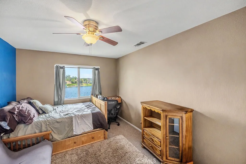 Experience lakefront living at its finest in the gated community of Tierra Shores in Menifee. Perfectly positioned on the water, this stunning home offers sweeping lake views and the rare advantage of owning the land to the water’s edge! Opening the door to creating your own private dock and enjoying peaceful mornings or sunset evenings right from your backyard. Tierra Shores is a private enclave of just 310 homes built around a beautiful, stocked lake where residents can fish for bass, catfish, and trout or take out a boat and enjoy the water. The community is rich with amenities including a resort-style pool, clubhouse, playgrounds, basketball court, and secured RV and boat storage, truly something for everyone. Offering approximately 2,778 square feet of well-designed living space, this 4-bedroom, 3-bathroom home features a full bedroom and bathroom on the main level, ideal for guests or extended family. Upstairs, a spacious loft provides endless possibilities, whether you envision a game room, home theater, or office. The open-concept living areas are filled with natural light and showcase incredible lake views from both the kitchen and living room, creating a seamless blend of comfort and scenery. Whether you’re entertaining or simply unwinding, this home delivers a lifestyle that feels like a getaway every day. Don’t miss this rare opportunity to own a true waterfront gem in one of Menifee’s most desirable communities.