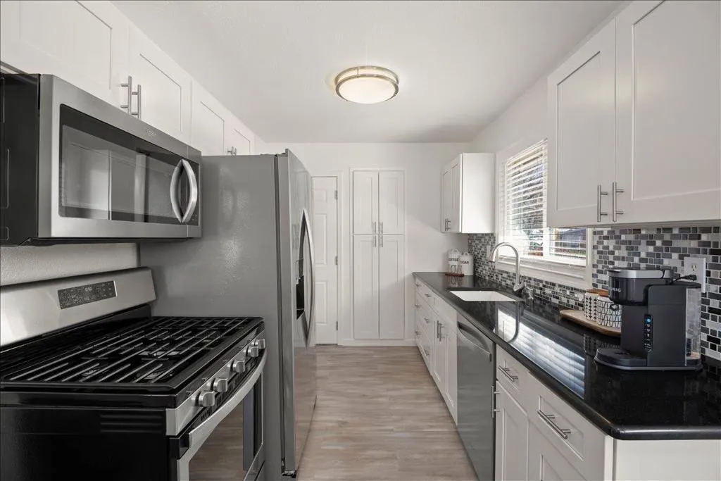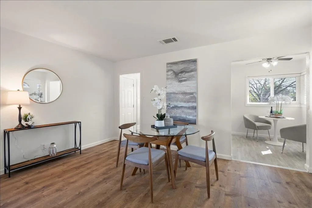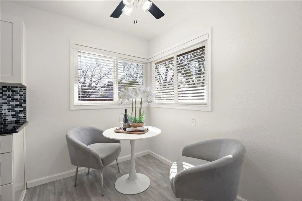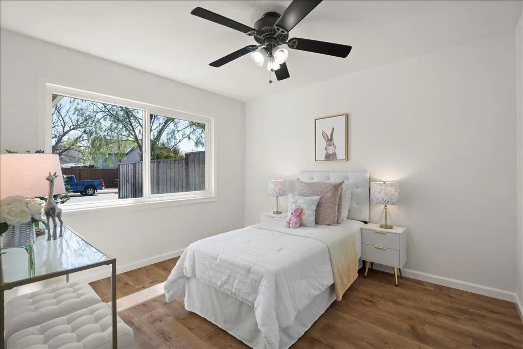Tastefully updated Garcia home situated on a tree lined street in a fabulous Cambrian neighborhood. Remodeled kitchen with white shaker cabinets, slab granite counter tops, custom tiled backsplash, stainless steel appliances, gas oven/range, microwave, dishwasher and sink. Breakfast nook and built-in pantry. Living & dining room combination with a wood burning fireplace. Three bedrooms all with ceiling fans and mirrored closet doors. Newer interior doors and hardware. Wood blinds throughout. Custom updated tiled hall bathroom with new glass shower enclosure. Primary suite with porcelain tiled surfaces, stall shower with custom tiled banner. Laminate wood flooring throughout. Double pane windows and slider. Freshly painted interior. Central forced air heating and air-conditioning. Newer roof & gutters in 2020. Newer garage door and opener in 2020. Freshly updated landscaping. New Tough Shed for extra storage. New custom wood swinging gate to park extra vehicles, boats or trailer on side yard. Some newer fencing. Three car driveway and two car garage. Large and spacious backyard. Centrally located strolling distance to Carlton Elementary, Union Middle, and Blue Ribbon Award winning Leigh High School. Close to Safeway, Starbucks and The Cantina. Easy commuting to all major freeways