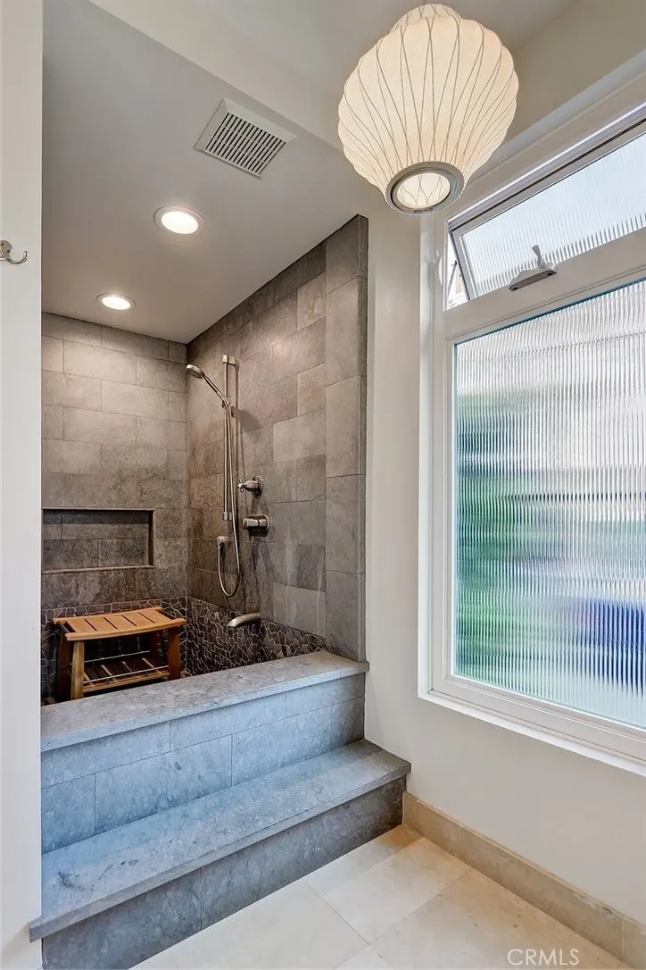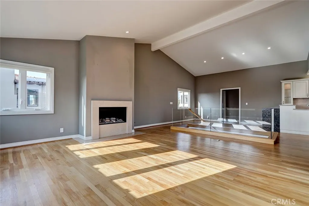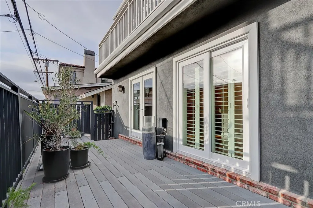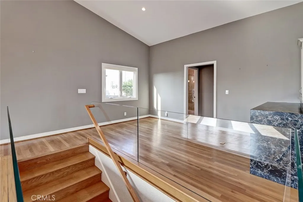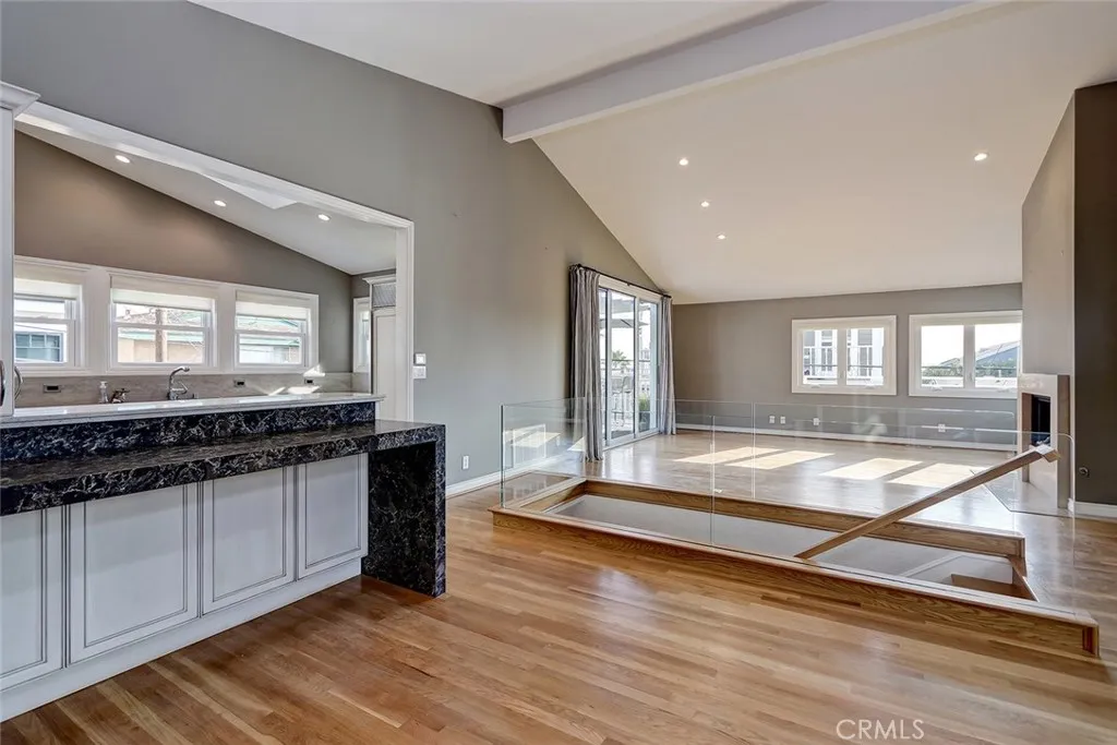 Beautiful, completely remodeled coastal home with elements of a warm contemporary design in the sand section of Manhattan Beach. Upon entry you are greeted by a Starfire glass bannister that leads to the main living area upstairs. The expansive family room is perfect for entertaining with the living room opening to a spacious wrap around balcony with ocean views. The living room offers 14 foot vaulted ceilings with partial ocean views, a modern fireplace facade with stone inlay, and wood floors that open to the dining area and kitchen. The remodeled kitchen features Neff cabinetry, decorative glass/metal drawers, limestone counters, new quartz breakfast bar, high end appliances, ULine 24 Wine Chiller and a Velux auto-sensing Skylight. Also on the upper level is the spacious second bedroom. The second bathroom is remodeled with beautiful marble accents. The master suite is on the first level featuring wood floors, 2 spacious closets, and French doors that open to a private lower patio area. The master bath is outfitted with Anne Sacks limestone floors, countertops and roman shower/tub with custom Tansu cabinetry. The property has an oversized two car garage with an abundance of storage. Additional upgrades include new Energy Efficient Windows and AC/HVAC. Located just a few blocks from Manhattan Beach shops, restaurants, and walking distance to the beach and Grandview Elementary School. Washer/ Dryer, fire pit and patio furniture are included in the rent.