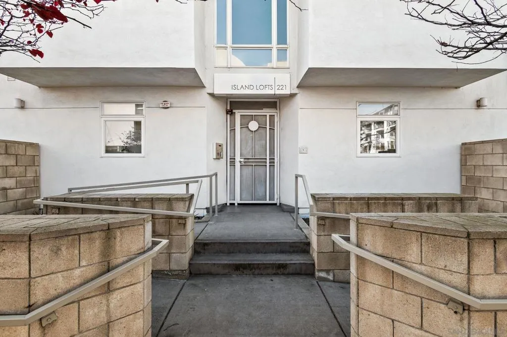 Rarely available Urban Loft in the iconic Island Lofts, designed by renowned contemporary architect Jonathan Segal. This top-floor 1 bedroom, 2 bath residence showcases dramatic 17-foot ceilings, floor-to-ceiling windows, and abundant natural light, creating a bright, open, and airy living space. The flexible layout features a main-level living area with bath and a spiral staircase leading to a private loft-style primary suite. Enjoy city views from the private balcony—perfect for entertaining or relaxing while taking in the energy of the Marina District. Thoughtfully updated with laminate wood flooring, modernized bathrooms, and in-unit washer/dryer for everyday convenience. Includes one assigned secured parking space, with guest parking options nearby via approved overnight (validated) use of the Marriott District just steps from the building. Ideally located just minutes from Petco Park, the Gaslamp Quarter, Panto Park, top dining, shopping, museums, the waterfront, and easy freeway access. A rare opportunity to own a distinctive architectural residence in the heart of Downtown.