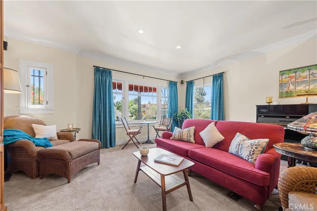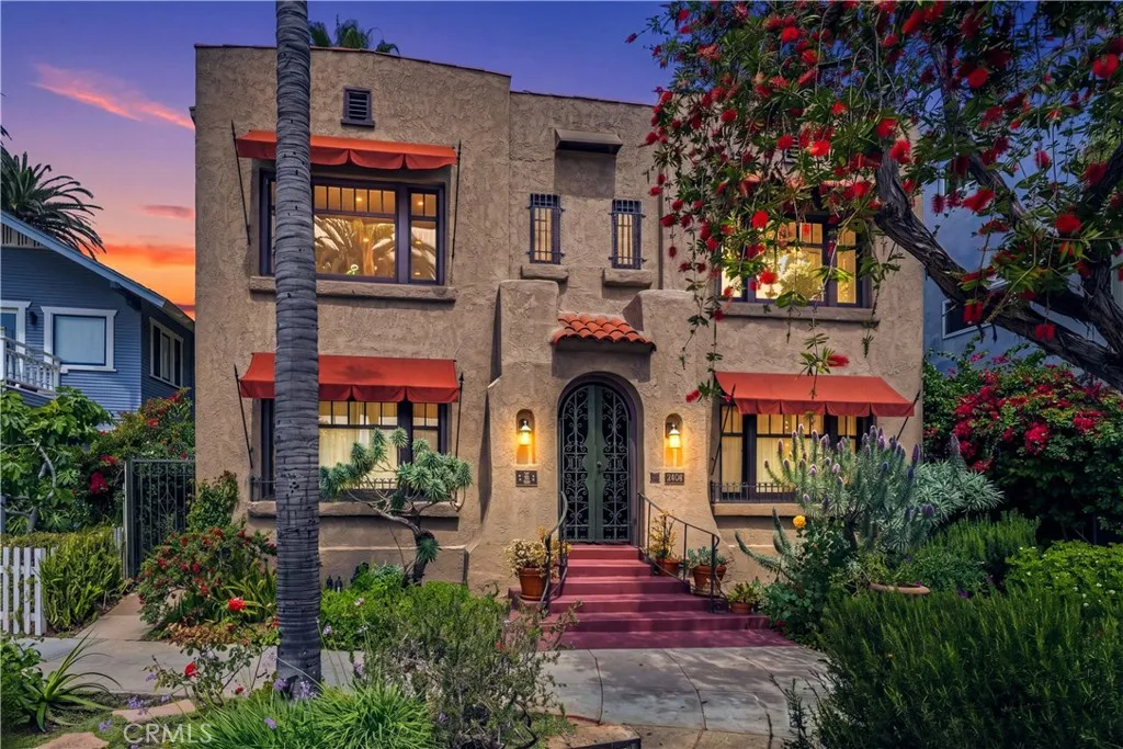 Historic 4-Unit Spanish-Style Income Property in Bluff Park. Well-maintained and thoughtfully preserved, this charming four-unit Spanish-style property is ideally located in the heart of Bluff Park—directly across from Trolley Park and just two blocks from the beach. The property features a spacious 4-bedroom, 2.5-bath owner’s unit complete with a two-car garage, fireplace, HVAC, whole-house stereo system, private laundry, and a secluded patio with built-in seating and BBQ—perfect for indoor-outdoor living. Three additional one bed, 1 bath units, each with dedicated office space, offer updated kitchens and baths along with beautiful hardwood flooring. The property includes four garages with built-in storage, plus multiple outdoor spaces, including private patios for each unit and a shared courtyard with fountains and lush landscaping. Major improvements include extensive renovations to the front building and garages, taken down to the studs with updated plumbing and electrical throughout. Original architectural details—hardwood floors, living room built-ins, and crown molding—have been carefully restored, preserving the property’s historic charm. Three of the one-bedroom units are currently tenant-occupied on month-to-month leases. Located just moments from the shops and restaurants of Broadway, Belmont Shore, and the ocean corridor, this prime coastal setting consistently drives strong rental demand and low vacancy. Ideal for an investor or owner-user seeking a character-rich coastal income property with upside potential.