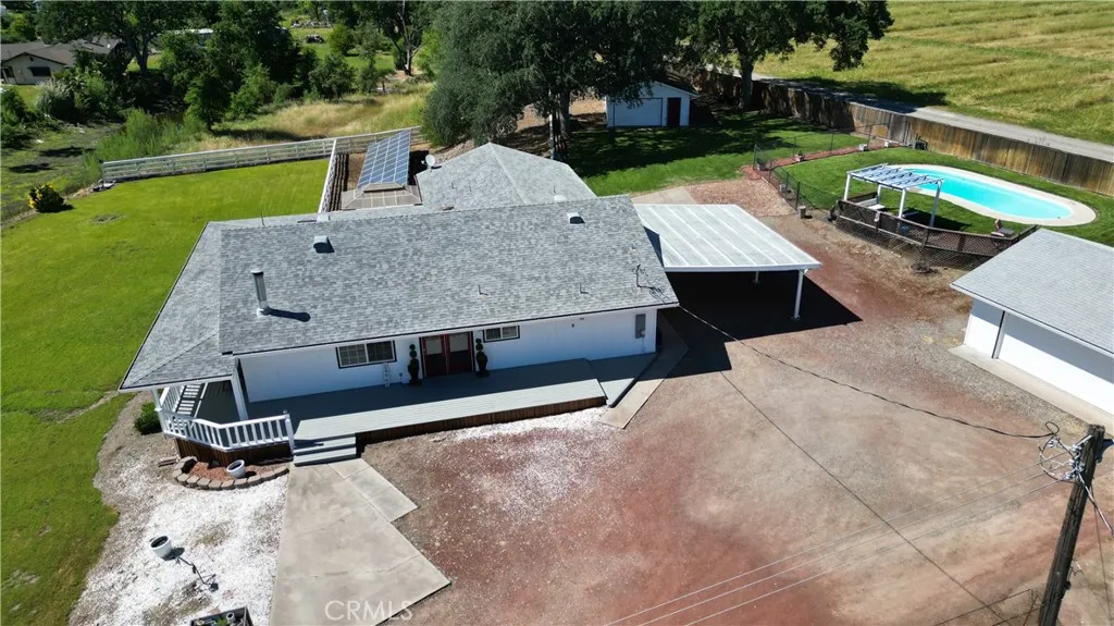 Welcome to 24960 2nd Avenue in Los Molinos—an exceptional property offering space, privacy, and an incredible lineup of features both inside and out. This expansive 4-bedroom, 2-bath or 3-bedroom and office boasts approximately 2,386 square feet of comfortable livingspace, perfectly situated on a usable 1.44-acre lot. Step inside to find a functional and inviting layout ideal for families, entertaining, or multi-use living. Large living areas provide flexibility, while ample natural light creates a warm and welcoming atmosphere throughout.Outside is where this property truly shines. Enjoy your own private backyard retreat featuring an in-ground pool, hot tub, and a built-insauna located within the home—perfect for relaxing or hosting gatherings year-round. The property also features a charming seasonal pond, enhanced by Los Molinos Water Company water shares that provide a reliable water source and add to the natural beauty and peaceful setting. With wide-open space, there’s still plenty of room for gardening, recreation, or future expansion. Car enthusiasts, hobbyists, and those needing extra storage will love the multiple outbuildings, including a detached 3-car garage, an additional detached 2-car garage, a dedicated storage room, and a 2-car carport—offering abundant parking and workspace options. Energy efficiency is astandout feature with a fully owned 15kW solar system, designed to eliminate electric bills while adding long-term value. Ideally located for those who want rural living without sacrificing convenience, the property offers an easy commute—approximately 25 minutes to Chico and about 30–35 minutes to Redding via Highway 99. Located in a quiet, rural setting while still offering convenient access to near by amenities, this property combines the best of country living with modern comforts.