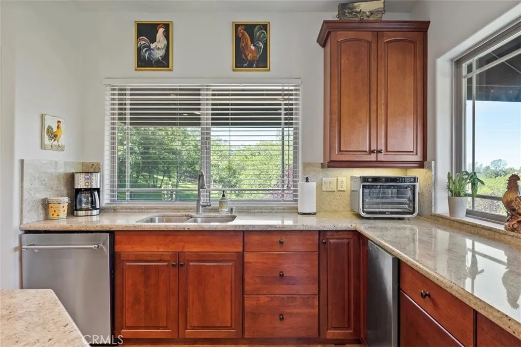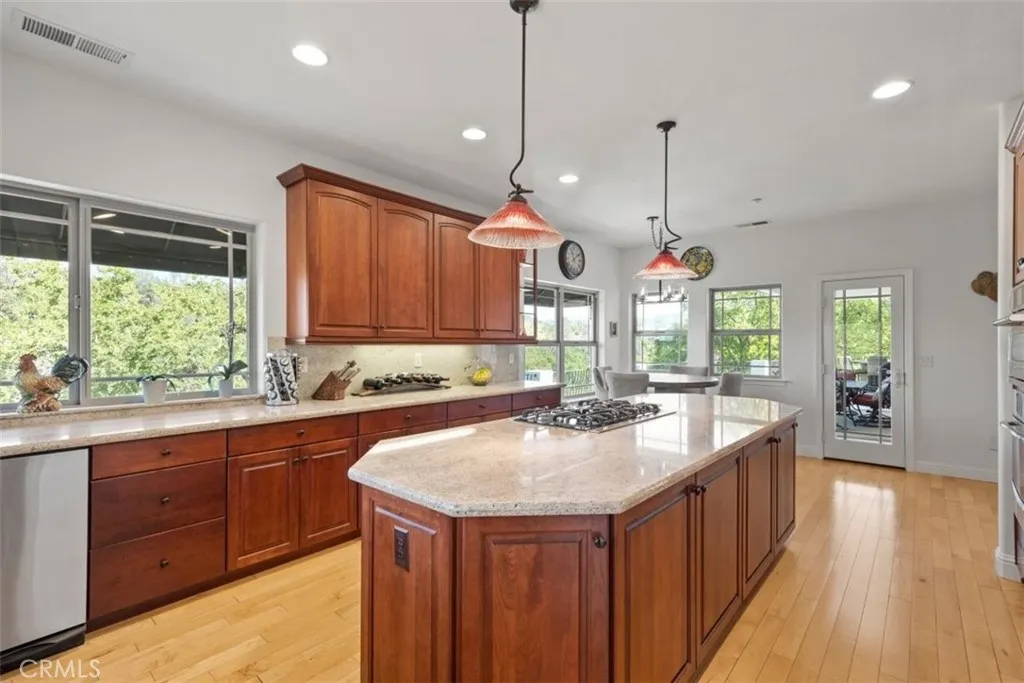 Stunning Tuscan Estate in Exclusive Gated Canyon Oaks Community! Welcome to this exceptional Tuscan-style residence nestled within the prestigious, gated Canyon Oaks golf course community. Situated on nearly half an acre, this 4-bedroom, 4-bathroom estate offers breathtaking views, timeless elegance, and thoughtfully designed living spaces. Step inside to soaring ceilings and an abundance of natural light streaming through numerous picture windows, creating a bright and airy ambiance throughout. Beautiful laminate wood flooring flows seamlessly across the main living areas. Designed for both luxury and functionality, the home features two spacious primary suites, including a main-floor retreat complete with a jetted tub, separate walk-in shower, and generous walk-in closet. A second primary suite is located on the lower level, offering privacy and flexibility for guests or multi-generational living. The heart of the home is the well-appointed kitchen, showcasing custom self-closing cabinetry and drawers, pots and pans drawers, granite countertops, a large island, top-of-the-line appliances, gas cooktop, trash compactor, and a walk-in pantry. Adjacent to the kitchen, enjoy a charming breakfast nook with picturesque views. Entertain in style in the expansive formal dining room, or relax in the luxurious living room featuring a fireplace and panoramic views that open seamlessly to a massive veranda—perfect for indoor-outdoor living. The veranda overlooks the golf course and includes its own outdoor dining area. Additional interior spaces include a private office with a closet and a dedicated media room, ideal for work and leisure. Step outside to your personal backyard oasis, complete with a sparkling in-ground heated Pebble Tec pool with cascading waterfall, a second outdoor dining area, and a covered patio wired for TV and spa—perfect for year-round enjoyment. Additional amenities include fully owned solar, fire sprinkler system throughout the house, central vacuum, water softener, dual HVAC systems, hot water circulator, wired for sound system, and a spacious 3-car garage. This remarkable property offers the perfect blend of luxury, comfort, and resort-style living in one of the area’s most sought-after communities.