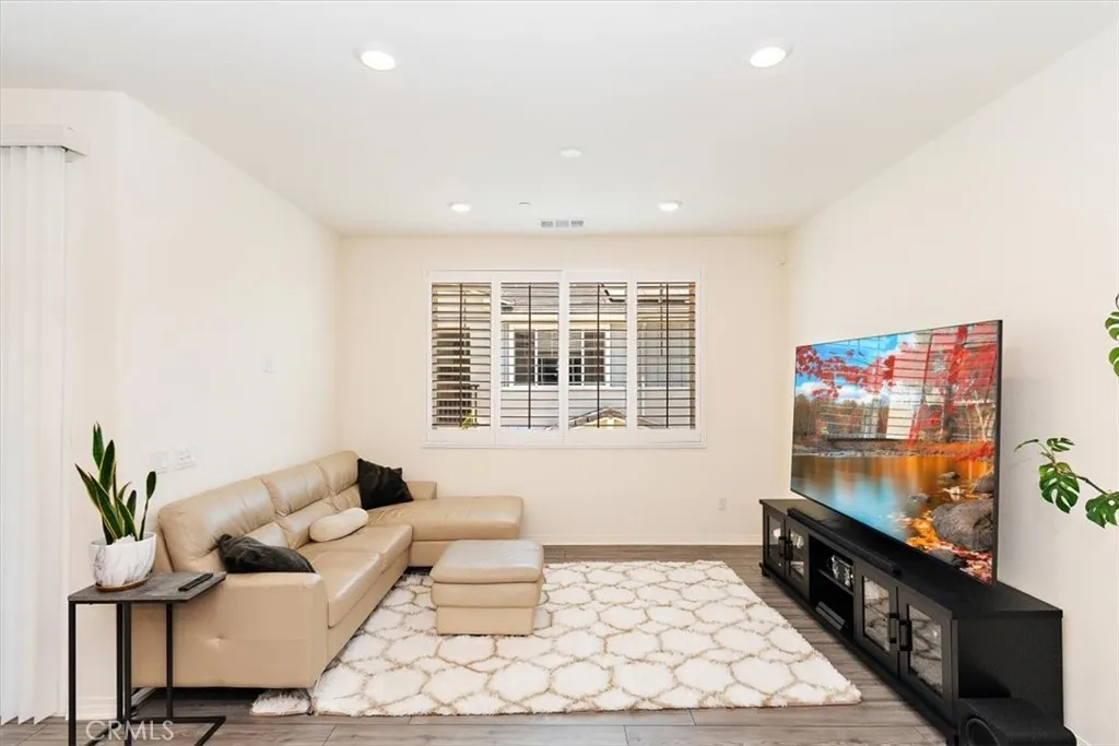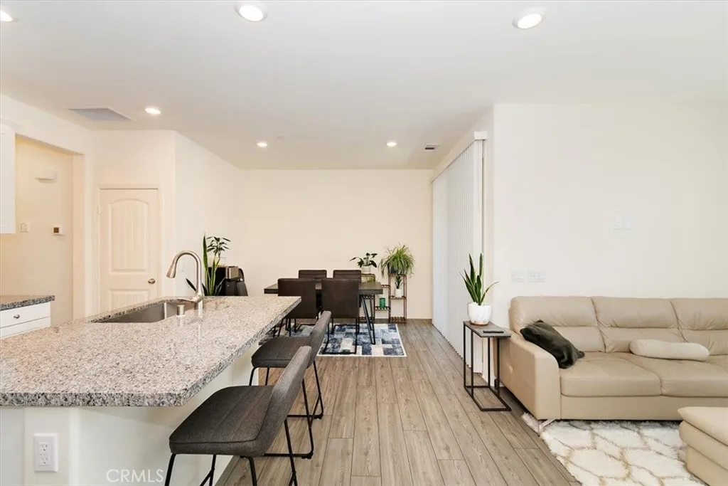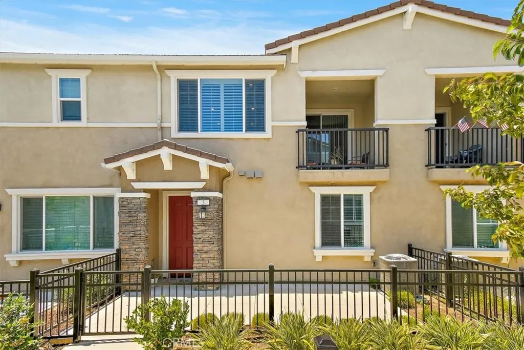 Beautiful townhome in the highly desirable Gabion Ranch community of North Fontana. This modern home features an open-concept layout with a spacious kitchen offering white cabinetry, granite countertops, stainless steel appliances, and a large island that flows into the bright great room with abundant natural light and access to a private deck. The primary suite includes a walk-in closet and ensuite bath with dual sinks and a walk-in shower. A private first-floor secondary bedroom features its own ensuite bathroom and wet bar, ideal for guests, multigenerational living, or a home office. Additional features include solar power for energy efficiency, laminate flooring throughout, LED lighting, keyless entry, washer and dryer, and a tankless water heater. Enjoy resort-style amenities including multiple pools and spas, splash pad, clubhouse, outdoor lounge with fire pit, BBQ areas, parks, sports courts, and a dog park. Conveniently located near shopping, dining, and easy freeway access.