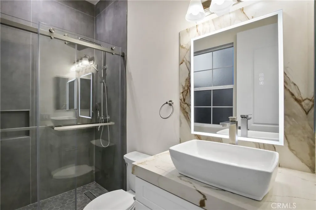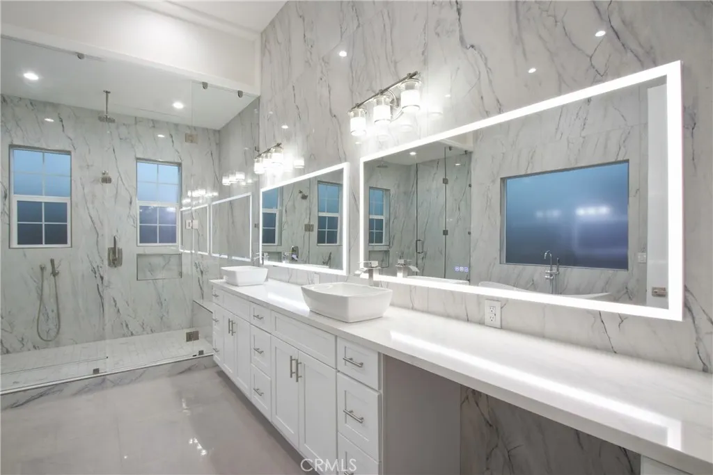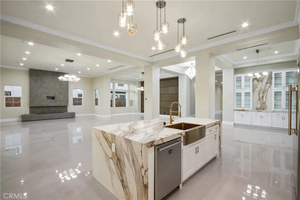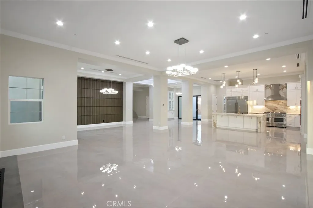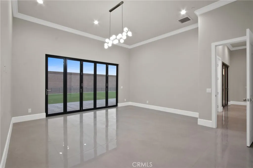 Welcome to 13715 Copley Drive, Rancho Cucamonga, a stunning brand-new luxury estate offering 4 bedrooms, 5.5 bathrooms, and 4,554 sq ft of refined living space on a ½-acre horse-zoned lot in an exclusive enclave of custom homes. Designed for modern living, entertaining, and multi-generational flexibility, this residence impresses from the moment you enter through the 8-foot custom double entry doors, opening to soaring ceilings and a bright open-concept floor plan. Expansive living areas are enhanced by three bi-folding glass doors that seamlessly connect indoor and outdoor spaces. The chef’s kitchen is a showpiece featuring high-end Forno appliances, premium finishes, and generous workspace—ideal for hosting large gatherings. Each bedroom includes its own private en-suite bath, while a striking custom fireplace feature wall adds warmth and architectural elegance. Finishes throughout include Spanish porcelain slab countertops, full-height shower walls, frameless stainless shower doors, and upgraded lighting and plumbing fixtures. Built with efficiency and comfort in mind, the home includes a fully paid solar system with 46 panels, 18kWh system with a battery backup of 13 kWh, dual-zone HVAC, and pre-wiring for smart home features. The outdoor space offers a resort-style setting with RV parking and double gates, stamped colored concrete, a built-in BBQ island, outdoor fireplace, and approximately 3,000 sq ft of premium artificial turf. The flat, usable lot provides excellent ADU potential, while front landscaping features water-saving drip irrigation. Additional highlights include a low tax rate, low HOA, city sewer connection, stunning mountain views, and access to the highly regarded Etiwanda School District. This is a rare opportunity to own a new luxury estate on a half-acre lot in one of Rancho Cucamonga’s most desirable new developments.