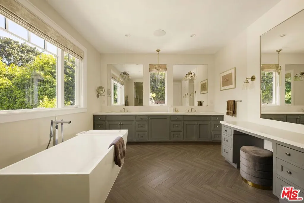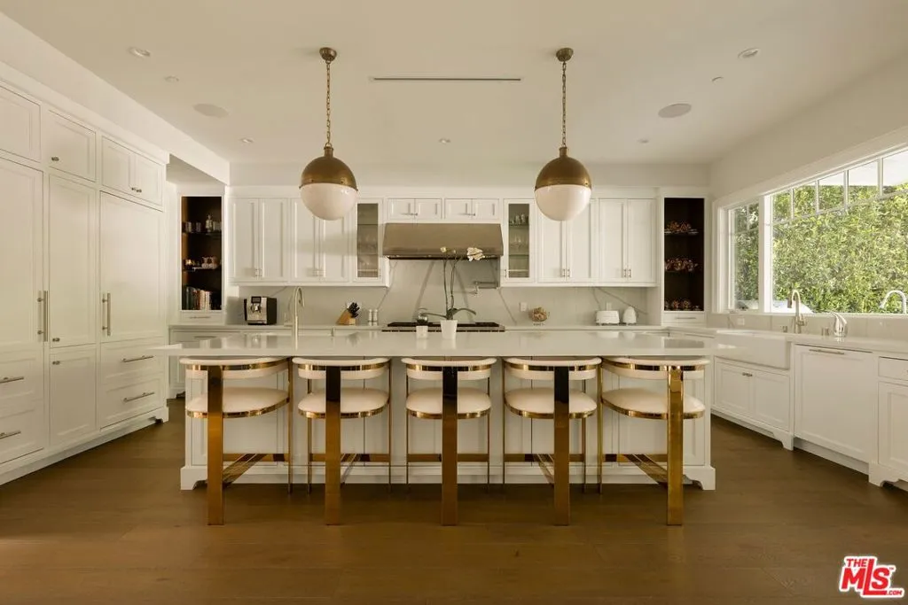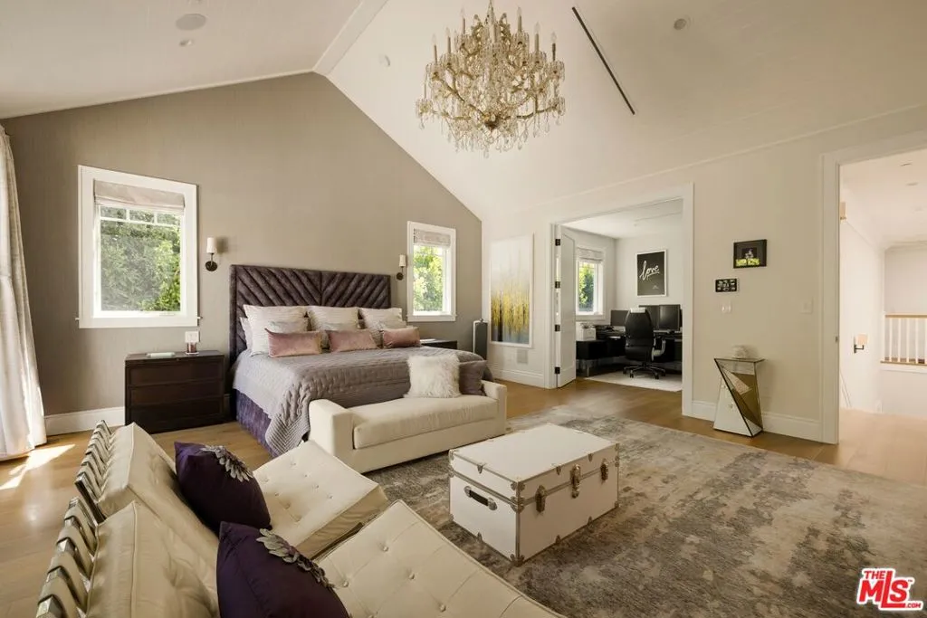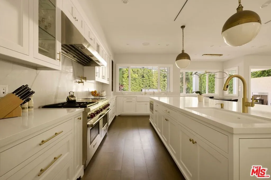Set along one of Brentwood's most desirable north-south corridors, this peaceful, gated 2018- built Traditional offers approximately 5,280 square feet of open, well designed living with high ceilings, wide-plank floors, and seamless indoor, outdoor flow throughout. The kitchen is equipped with custom cabinetry, marble countertops, and Wolf and Sub-Zero appliances, opening to the main living and dining areas, complemented by an atmosphere-controlled wine cellar. The primary suite features a private balcony, fireplace, walk-in closet, bonus office space - that could easily be a second, large walk in closet - and spa-style bath with soaking tub and oversized steam shower. Outside, a swimmer's pool, outdoor kitchen, and fireplace seating area create a clean, functional entertaining space, all just moments from Brentwood's shops and restaurants.