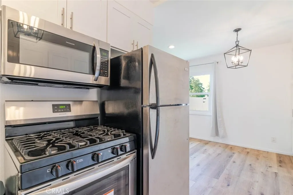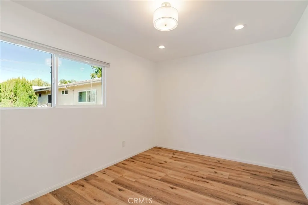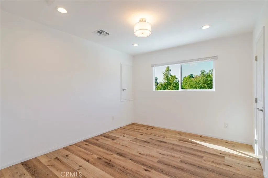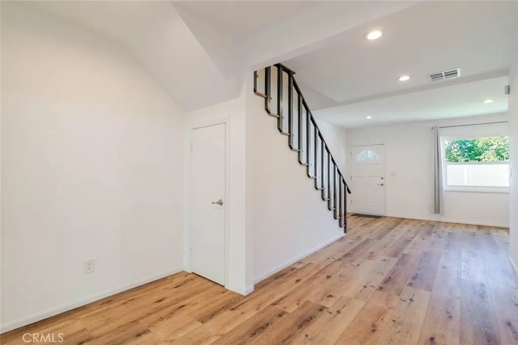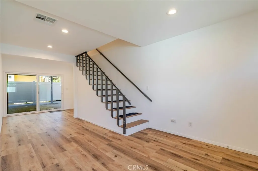 Welcome to this beautifully updated two-story single-family home in the heart of Sherman Oaks. Offering approximately 1,200 sq ft of thoughtfully designed living space, this 3-bedroom, 1.5-bath residence combines modern finishes with everyday functionality. Inside, an open-concept layout is enhanced by high ceilings, recessed lighting, and warm wood-toned flooring throughout. The spacious living and dining areas flow seamlessly, creating an inviting environment for both relaxing and entertaining. The kitchen is equipped with stainless steel appliances and ample cabinetry, making meal prep both stylish and convenient. Upstairs, you'll find well-appointed bedrooms, including a primary suite featuring a walk-in closet for added storage and comfort. A full-size washer and dryer are conveniently located in the dedicated laundry room, adding to the home's practicality. Enjoy indoor-outdoor living with direct access to a private outdoor area, perfect for morning coffee or unwinding at the end of the day. Ideally located near shopping, dining, and major commuter routes, this home offers the perfect blend of comfort, style, and convenience.