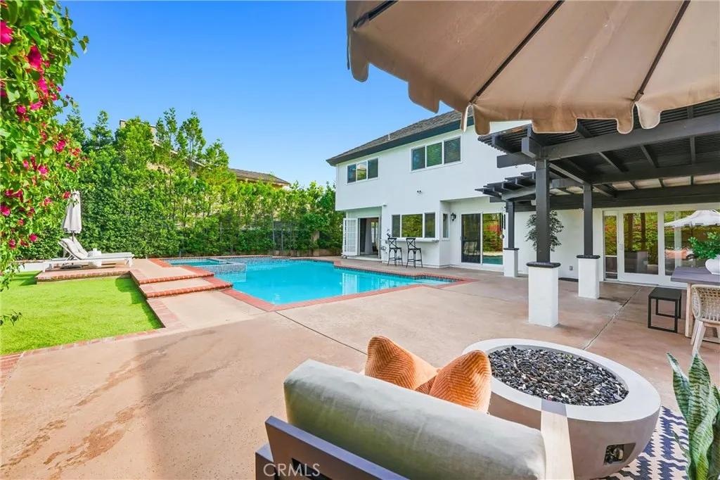 Welcome to 7131 E Cambria, a stunningly upgraded home in the coveted Pheasant Run community of Orange Park Acres—where upscale design meets equestrian charm. With incredible interior upgrades, rare HOA amenities, and a ASSIGNED horse stall, this home offers both lifestyle and luxury. Step inside to a bright, inviting living space with real white oak flooring, fresh designer paint, and oversized new windows and doors that fill the home with natural light. A striking new staircase with black iron detail and a chic chandelier set the tone for the thoughtful upgrades throughout. The kitchen shines with quartzite countertops, a waterfall-edge peninsula, new cabinetry, and stainless steel appliances including a new dishwasher and double ovens. The adjacent living area features a new stone fireplace, custom media wall, and custom in-ceiling speakers downstairs that create a true movie-theater experience. The formal dining room overlooks the pool and backyard, creating the perfect setting for entertaining. Comfort is covered with a brand-new HVAC system, including new ducting and AC. All bathrooms have been fully renovated within the last one to two years. The primary suite offers a spa-inspired bath with Calacatta Gold marble, a freestanding tub, frameless glass shower, and Kohler fixtures, while secondary baths feature floating vanities and designer finishes. The backyard is built for entertaining with a pool and spa with new heater, fire pit, upgraded turf, covered patio, and hidden exterior speakers near the trellis. Fresh exterior paint and an owned ADP security system complete the package. Enjoy Pheasant Run’s private equestrian arena, stables, trails, and peaceful tree-lined streets. Turnkey, stylish, and move-in ready—7131 E Cambria truly checks every box.