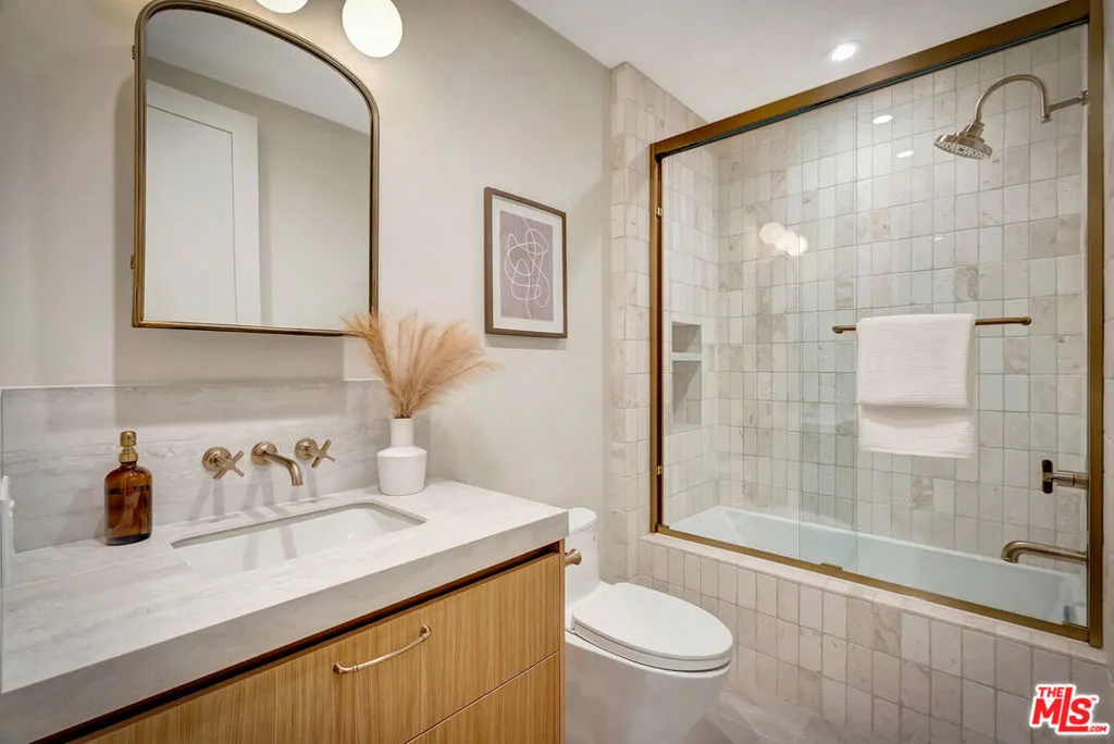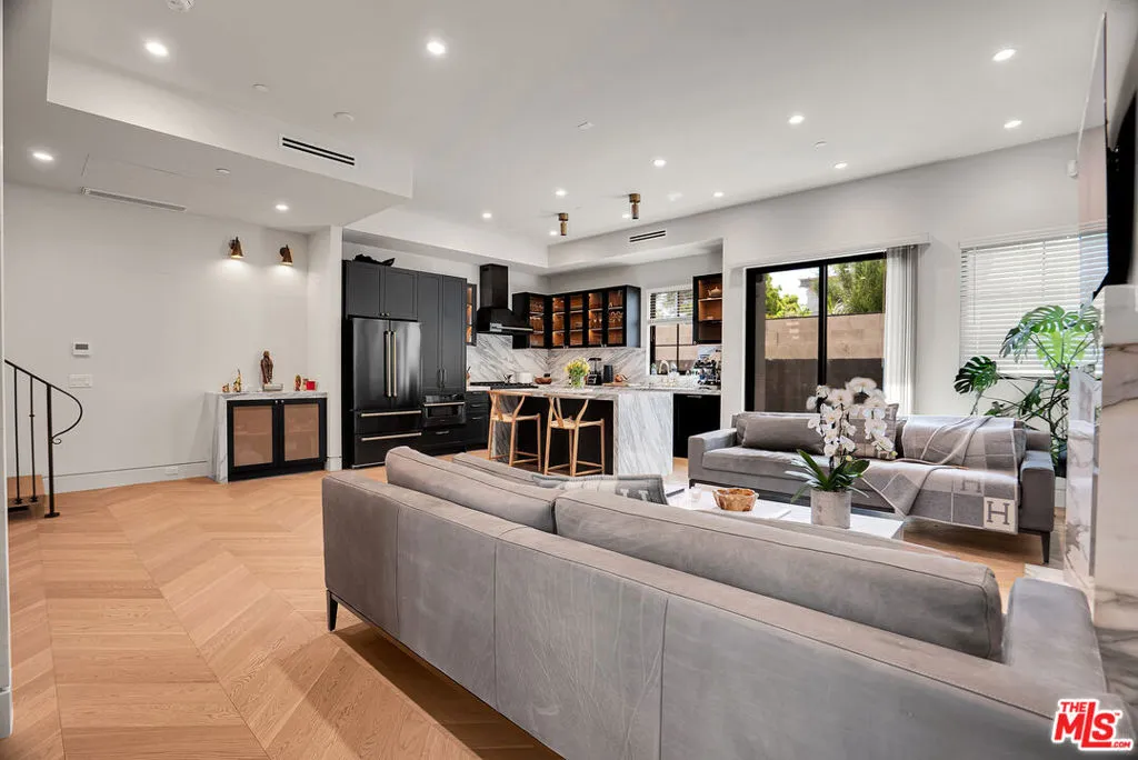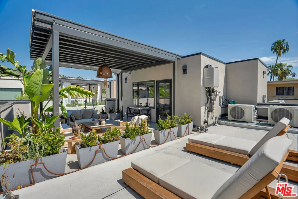 Introducing a NEWLY CONSTRUCTED contemporary/modern townhouse (2025), ideally positioned on one of West Hollywood's most sought-after streets. This exceptional residence embodies a refined blend of timeless architectural design, elevated finishes, and modern luxury living, offering approximately 1,655 sq ft of thoughtfully curated living space. This private, gated home features 2 spacious bedrooms and 2.5 impeccably designed bathrooms. A dramatic foyer opens to a sprawling, light-filled open-concept floor plan designed to maximize natural light and volume. Soaring ceilings and expansive picture windows define the main living areas, where formal living and dining spaces are enhanced by sophisticated architectural details, ideal for both intimate gatherings and grand-scale entertaining with a wine closet and fireplace. At the heart of the home lies a state-of-the-art chef's kitchen, showcasing custom cabinetry, a sleek waterfall-edge island, premium appliances, and designer fixtures that deliver both culinary excellence and striking visual appeal. The second level hosts three beautifully appointed bedrooms and two luxurious bathrooms, each finished with bespoke materials. The primary suite serves as a true sanctuary, featuring dual vanities, an oversized walk-in shower, and a custom dressing room/closet with high-end built-ins and a fireplace. The rooftop deck elevates outdoor living with city views, creating the perfect backdrop for al fresco dining, morning coffee, or evening relaxation. Additional highlights include designer lighting, two side-by-side parking spaces in a gated garage with an EV charger, large dedicated storage, an in-unit laundry area, and paid solar panels. This turnkey modern masterpiece offers sophistication, comfort, and privacy-just moments from the finest shopping, dining, and amenities West Hollywood has to offer. Monthly HOA dues cover water and gardening. A truly exceptional offering in one of the city's premier locations. AN ABSOLUTE MUST-SEE.