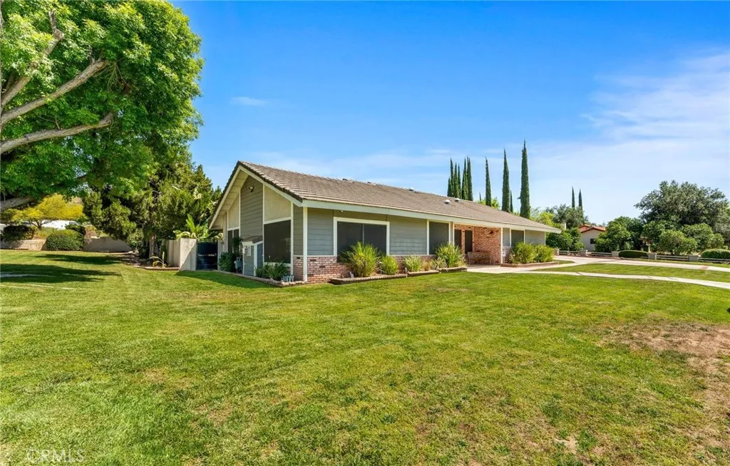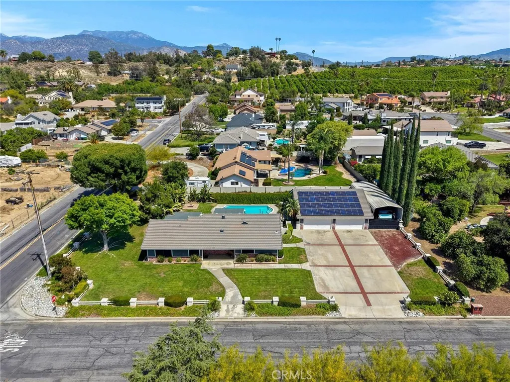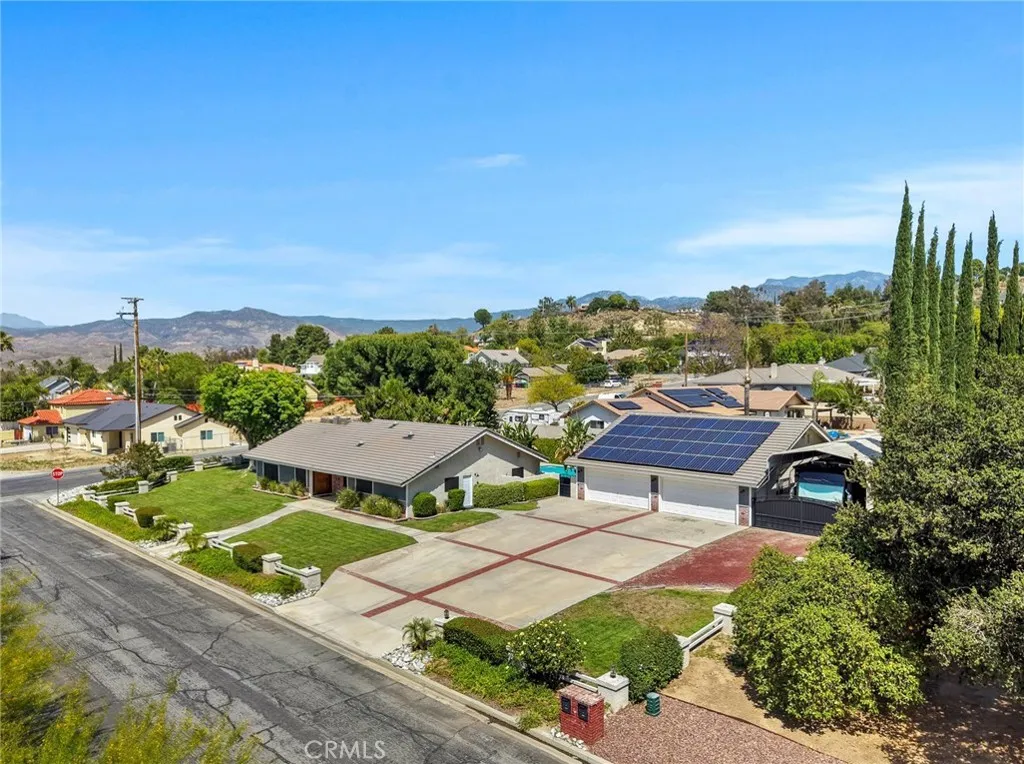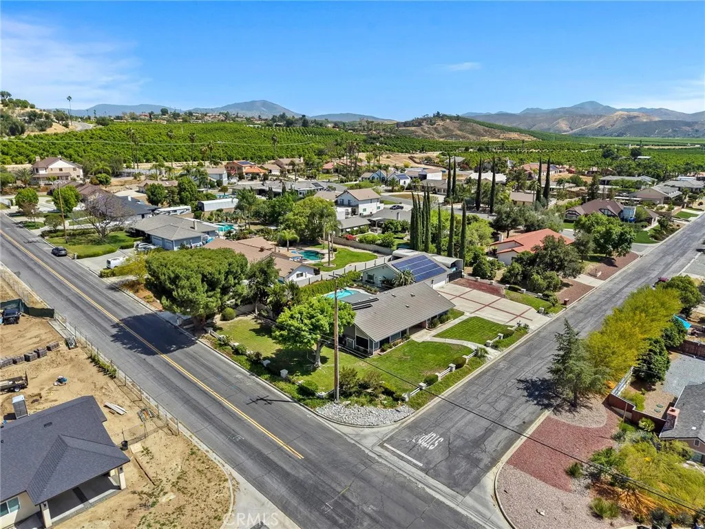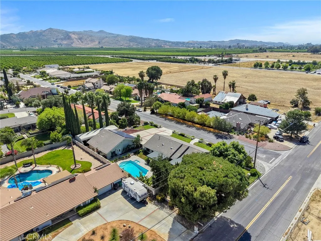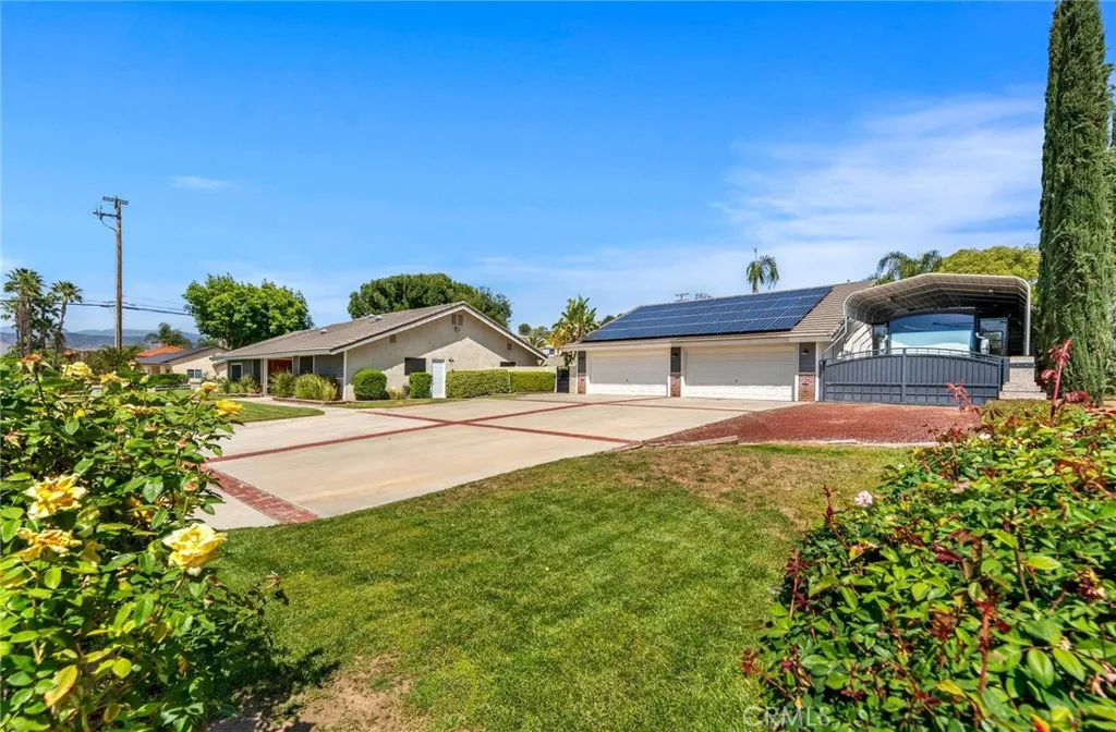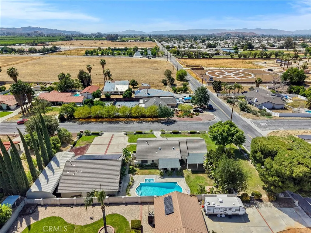 Stunning custom estate (3,007 SQ FT total — main house 2,207 SQ FT + 800 SQ FT ADU) on a .46-acre corner lot adjacent to East Hemet orange groves. Four bedrooms, three baths, vaulted beamed living room, and a chef’s kitchen with single-slab granite, large island, soft-close cabinetry, rock backsplash, pot filler, double-oven range, two dishwashers and trash compactor. Primary suite with crown molding, dual vanities and oversized dual-head shower; all bedrooms fit king beds. Upgrades include paid solar, tankless water heater, reverse osmosis, whole-house attic fan, ethernet, intercom to ADU, and updated plumbing/electrical. ADU features kitchenette, full bath and living area — ideal for guests or multi-generational living. Exterior: 4-car garage with epoxy floors and dog wash, covered RV parking w/ remote gate, 220V and hookups, covered patio, gas fire pit, app-controlled saltwater pool & jacuzzi, landscape and permanent holiday lighting.