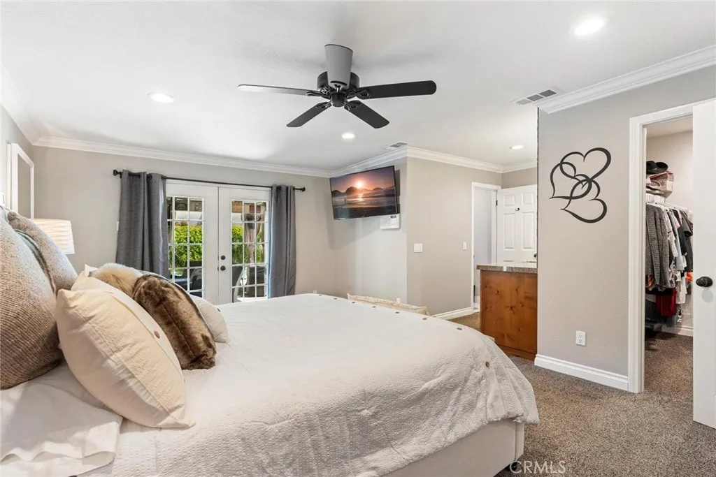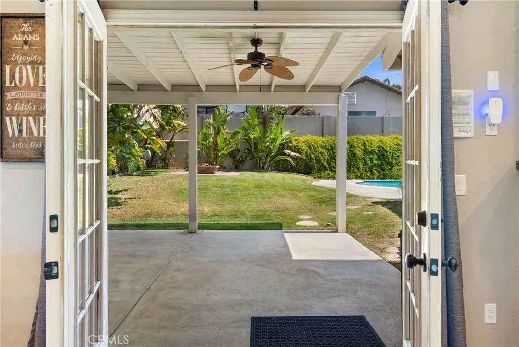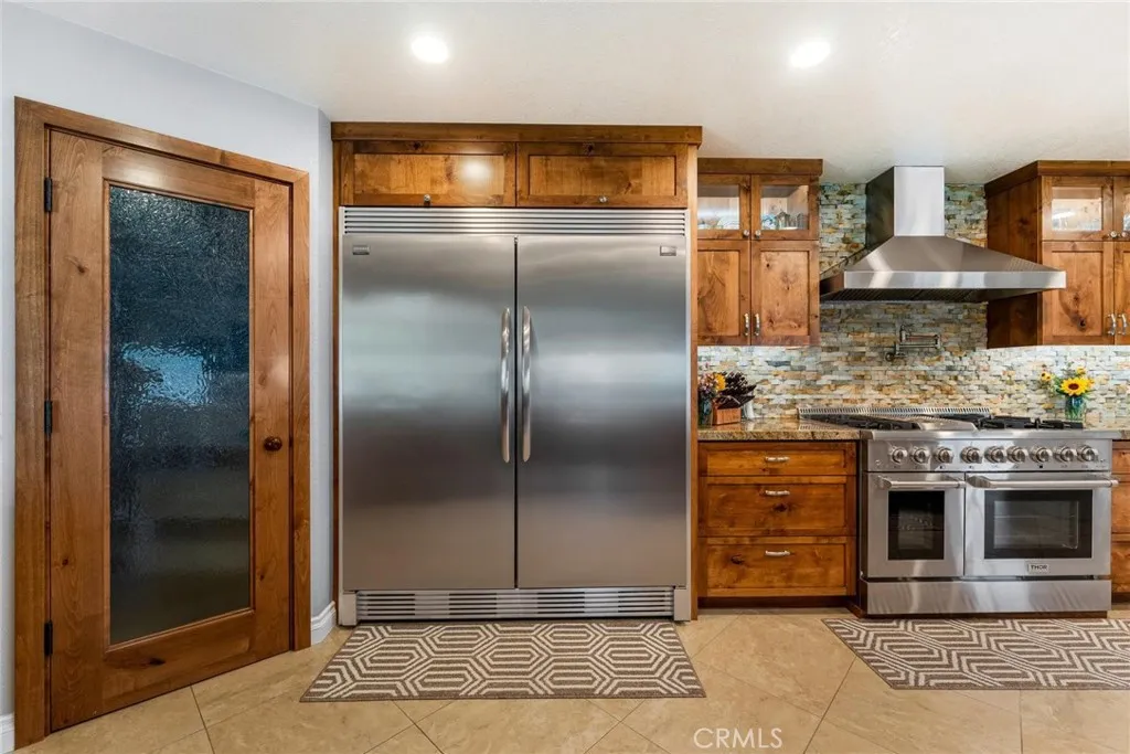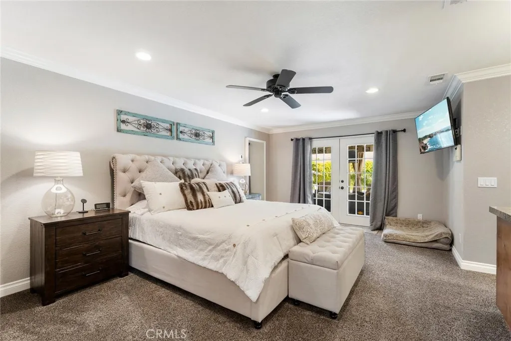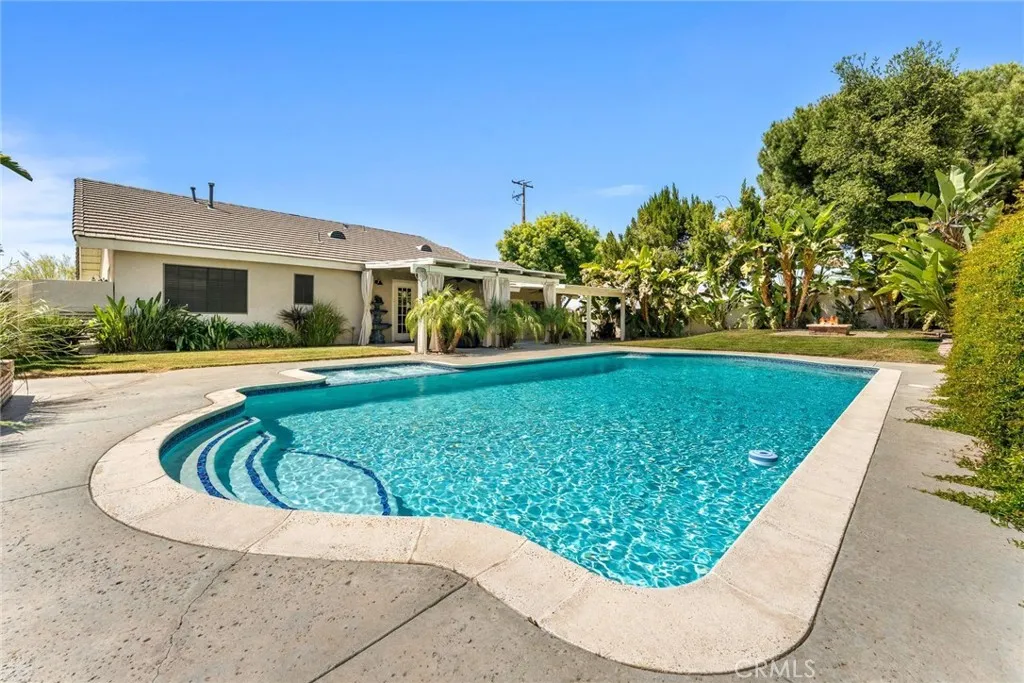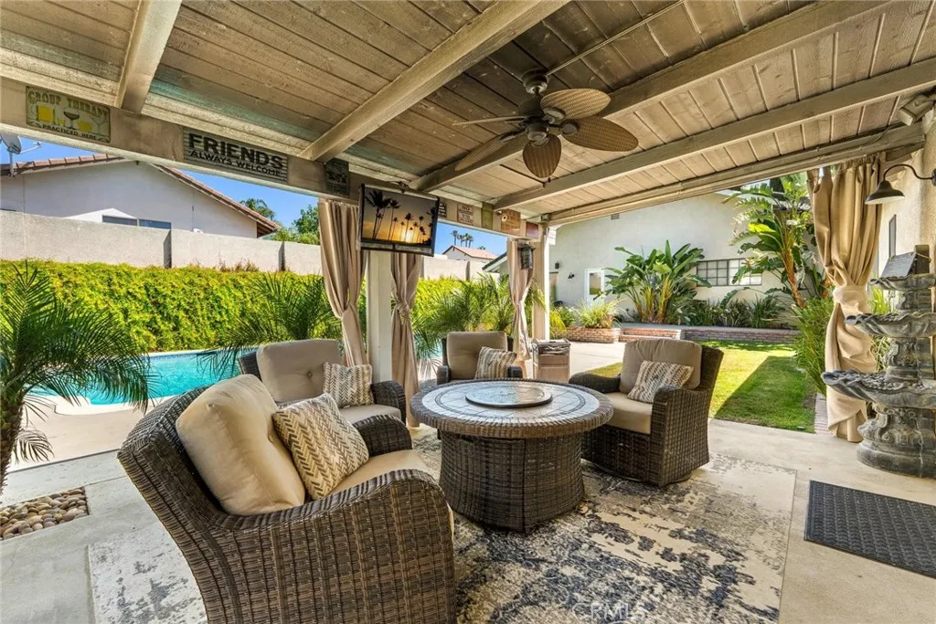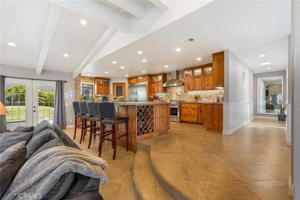 Stunning custom estate (3,007 SQ FT total — main house 2,207 SQ FT + 800 SQ FT ADU) on a .46-acre corner lot adjacent to East Hemet orange groves. Four bedrooms, three baths, vaulted beamed living room, and a chef’s kitchen with single-slab granite, large island, soft-close cabinetry, rock backsplash, pot filler, double-oven range, two dishwashers and trash compactor. Primary suite with crown molding, dual vanities and oversized dual-head shower; all bedrooms fit king beds. Upgrades include paid solar, tankless water heater, reverse osmosis, whole-house attic fan, ethernet, intercom to ADU, and updated plumbing/electrical. ADU features kitchenette, full bath and living area — ideal for guests or multi-generational living. Exterior: 4-car garage with epoxy floors and dog wash, covered RV parking w/ remote gate, 220V and hookups, covered patio, gas fire pit, app-controlled saltwater pool & jacuzzi, landscape and permanent holiday lighting.