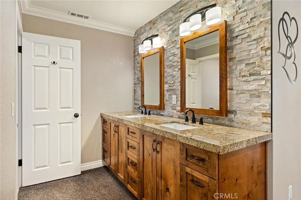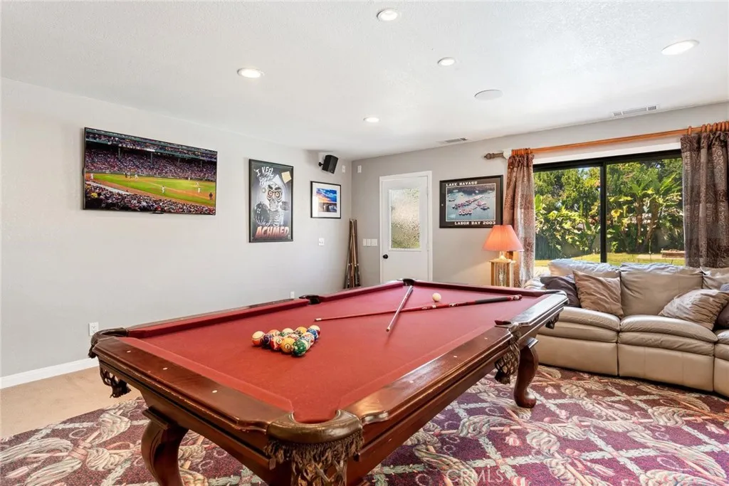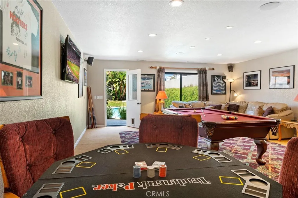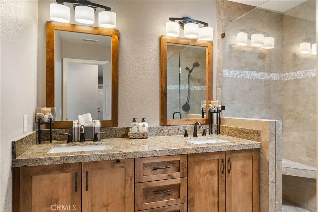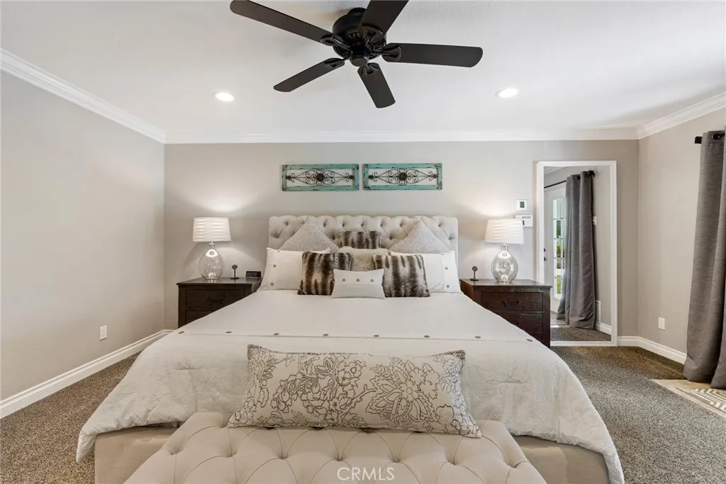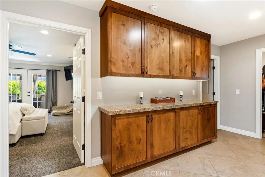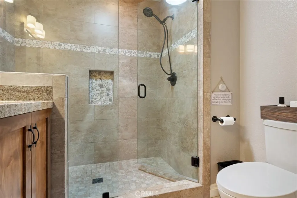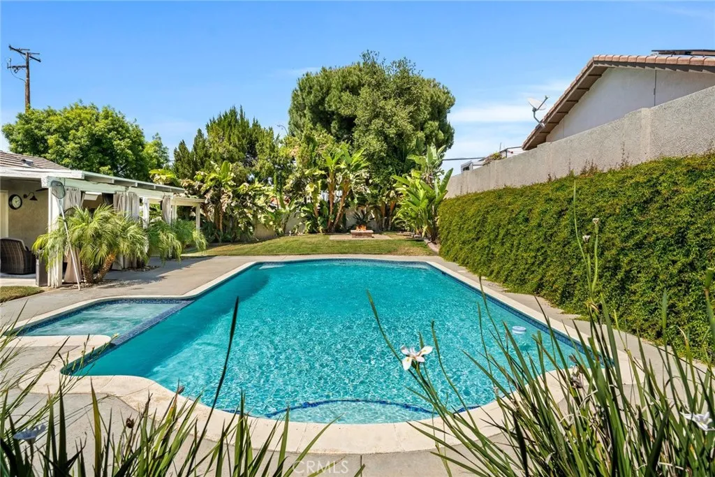 Stunning custom estate (3,007 SQ FT total — main house 2,207 SQ FT + 800 SQ FT ADU) on a .46-acre corner lot adjacent to East Hemet orange groves. Four bedrooms, three baths, vaulted beamed living room, and a chef’s kitchen with single-slab granite, large island, soft-close cabinetry, rock backsplash, pot filler, double-oven range, two dishwashers and trash compactor. Primary suite with crown molding, dual vanities and oversized dual-head shower; all bedrooms fit king beds. Upgrades include paid solar, tankless water heater, reverse osmosis, whole-house attic fan, ethernet, intercom to ADU, and updated plumbing/electrical. ADU features kitchenette, full bath and living area — ideal for guests or multi-generational living. Exterior: 4-car garage with epoxy floors and dog wash, covered RV parking w/ remote gate, 220V and hookups, covered patio, gas fire pit, app-controlled saltwater pool & jacuzzi, landscape and permanent holiday lighting.