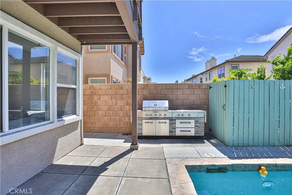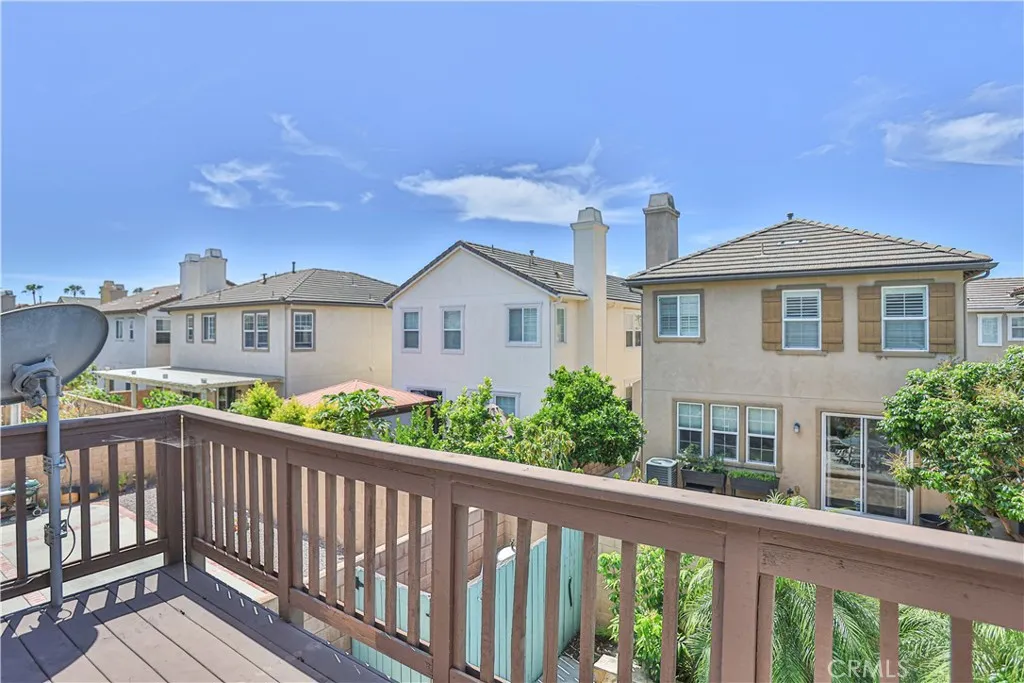 Beautiful home nestled in the secluded gated community of Charleston @ South Coast. Ideally located on one of the community’s best private streets with no homes directly in front, this spacious two-story residence offers 4 bedrooms + loft and 2.5 baths across nearly 2,300 sq ft. A bright, open floor plan welcomes you with a light-filled living room featuring soaring 10-foot ceilings. Family room with fireplace seamlessly connects with the dining area, and an open gourmet kitchen complete with a center island, white cabinetry, granite countertops, stainless steel appliances, and a walk-in pantry. Large sliding doors open to a private backyard retreat featuring a sparkling pool and spa with custom flagstone, raised planters, BBQ area, and an expansive patio—perfect for relaxing or entertaining. Upstairs, an elegant staircase leads to a sunlit landing with a large picture window and a versatile loft, ideal for a home office, library, or additional living space. The spacious primary suite includes motorized shades and a private balcony overlooking the backyard. The ensuite bath features dual vanities, a travertine walk-in shower with frameless glass, a soaking tub, and a large walk-in closet with built-in organizers. Three additional bedrooms offer mirrored wardrobe doors, while the secondary bath includes dual sinks and a full tub/shower. Additional highlights include an upstairs laundry room with ample storage, designer paint, Heirloom Collection hardwood flooring in main living areas, and a durable tile roof. Spacious two-car garage offers direct access to the kitchen and side yard. Recent upgrades include a new pool heater, newer carpet, and epoxy-coated garage floors. Enjoy low HOA dues and a prime location just minutes from South Coast Plaza, Segerstrom Center for the Arts, fine dining, shopping, top-rated schools, and major freeways (405 & 55). OPEN HOUSE SATURDAY APRIL 25TH FROM 11AM - 3PM