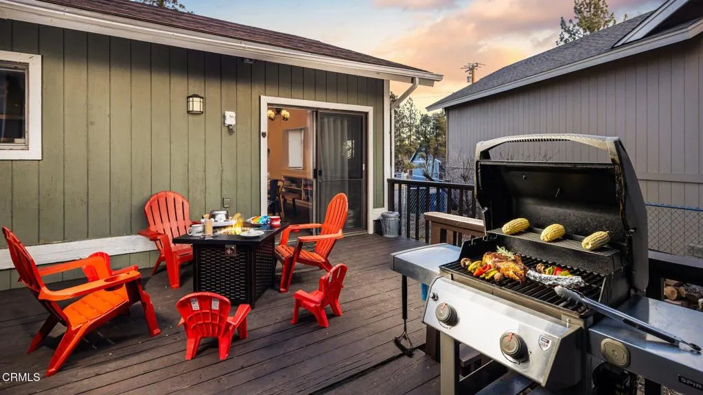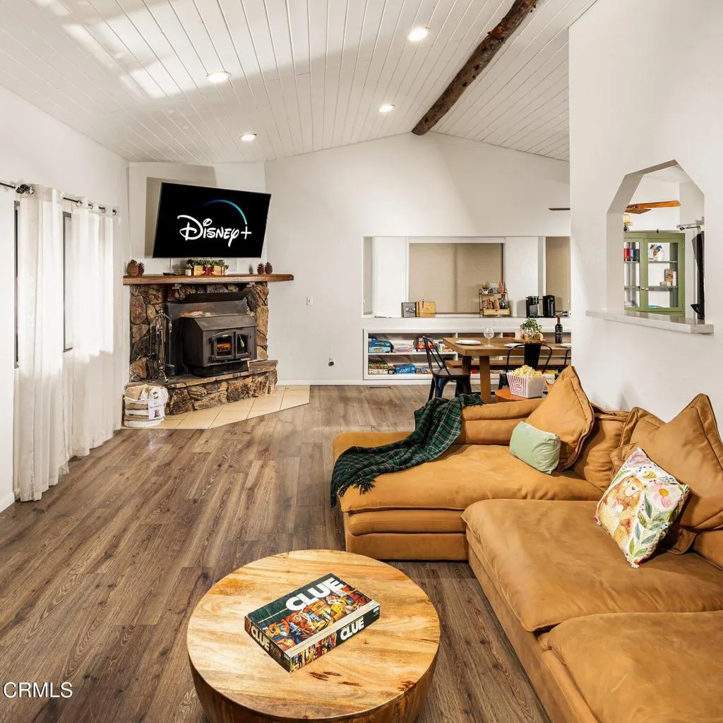****Very motivated seller ~ Priced to sell*** Beautifully updated and tucked away in a peaceful, serene part of Big Bear City. This turnkey 3-bedroom, 2-bath home with 6-seat hot tub offers the ideal blend of mountain charm and modern convenience. Located just minutes from Big Bear Lake, ski resorts, hiking trails, and the Village, you'll enjoy both tranquility and easy access to year-round recreation.Thoughtfully upgraded with over $150,000 in renovations, the home features a bright open-concept layout perfect for entertaining. The inviting living room centers around a cozy wood-burning fireplace insert, creating a warm and welcoming atmosphere.The updated kitchen is designed for both function and style, offering ample counter space, a peninsula with bar seating, a breakfast nook, and a large single-basin sink. Quartz countertops and updated fixtures in both the kitchen and bathrooms provide a clean, modern finish. Each full bathroom includes a bathtub, ideal for unwinding after a day outdoors.Major system upgrades include a newer furnace, updated ductwork, a smart Ecobee thermostat, and keyless entry. Appliances were upgraded approximately three years ago.Step outside to enjoy durable Trex-style decking and industrial-grade metal stair treads, built to withstand mountain conditions. The fully fenced backyard is perfect for pets and play, and features a spacious deck ideal for entertaining. Enjoy evenings under the stars with ambient Govee lighting and a newer hot tub.Additional highlights include an attached garage with a NEMA 14-50 outlet for EV charging, and a versatile bonus room with private exterior access--ideal for a home office, studio, guest overflow, or additional storage.Currently operating as a successful short-term rental with over 120 positive reviews, a 4.9-star average rating, and 'Guest Favorite' and 'Super Host' status, this property offers strong income potential.Optional furnishings may be negotiated, making this a true turnkey opportunity--perfect as a full-time residence, vacation home, or investment property.* Listing agent is related to seller