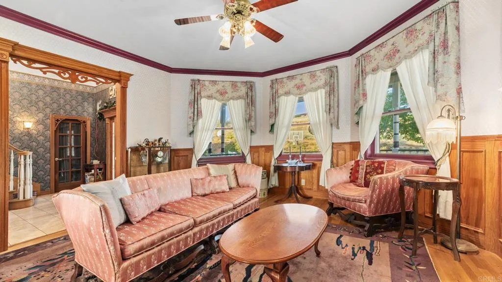 One-of-a kind Valley Center property! Space, charm & endless opportunity tucked among the rolling hills of Valley Center, this stunning Victorian-style property sits on 2.81 acres with breathtaking mountain views and everything you need to live, grow, and thrive. The 2,900 sq ft main home offers 5 bedrooms and 3 bathrooms, wrapped in classic charm with a signature wrap-around porch. The attached 716 sq ft, 1 bed/1 bath ADU is ideal for multi-generational living or generating rental income...a true property within a property! Energy independence comes courtesy of 51 fully owned solar panels, while the detached 4-car garage, RV/trailer pad, chicken coop, and mature fruit trees like 30 lime, orange, grapefruit, pomelo, apricot, peach and avocado trees make this estate as functional as it is beautiful. Cool off in the pool, entertain on the porch, and enjoy the kind of privacy and space that North County San Diego rarely offers. This one checks every box...don't miss it! Secluded feel just 10 mins from the 15!