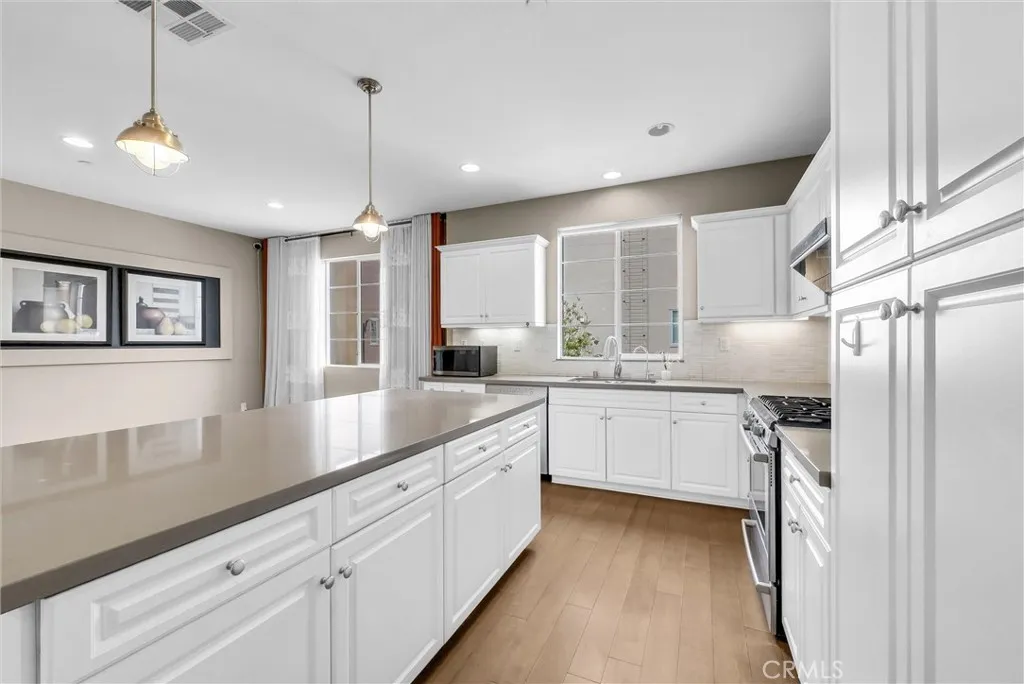 Beautifully upgraded former model home offering 4 bedrooms and 3.5 bathrooms across 1,847 sq ft of thoughtfully designed living space. This stunning townhouse showcases premium model upgrades, a bright open layout, and modern conveniences throughout. The first floor features a private ensuite bedroom with a full bath—ideal for guests, multigenerational living, or a home office. On the second level, enjoy an airy living room that flows seamlessly into a modern kitchen equipped with a high-powered range hood, perfect for cooking and entertaining. Step outside to a private balcony—ideal for relaxing or enjoying your morning coffee. The third floor offers three spacious bedrooms, providing comfort and privacy for the whole household. Additional upgrades include a whole-house water softener and filtration system, as well as a newer brand-name washer and dryer purchased in 2024. All appliances are included, making this home truly move-in ready. Located in a quaint, quiet, gated, and pet-friendly community featuring pet stations and complimentary waste bags for added convenience. Ideally situated near the 60 Freeway for easy access to shopping, dining, and commuting routes.