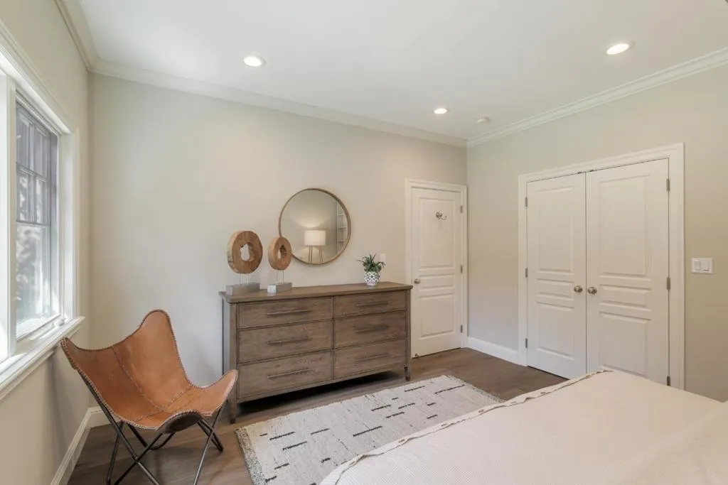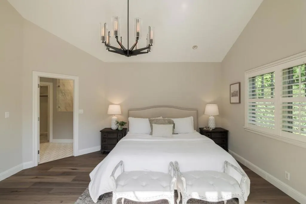 This beautiful Craftsman-inspired home offers elegant interiors, flexible floor plan and exceptional indoor-outdoor living on a large lot. Extensively expanded and remodeled in 2003, the home blends timeless architectural character with modern comfort and quality craftsmanship. This superb location is close to schools, parks, shops, restaurants, services, downtown Palo Alto, Burgess Rec Center, commute routes and top Silicon Valley employers. Entertaining is made easy in the formal living room, dining room and family room/kitchen featuring a large island with breakfast bar & prep sink, casual dining area, granite counters, stainless steel appliances all open to a family room with vaulted ceilings, and bi-fold doors to the back deck/garden. The back garden features multilevel heated sitting areas, large gas fire pit, corten steel planters and well-appointed outdoor kitchen. The thoughtfully designed floor plan features 4 bedrooms and 2 bathrooms on the main level, including a spacious ground-level primary suite with a luxurious en-suite bath, French doors to the back garden and two walk-in closets. The lower level features a large family room, 5th bedroom, 3rd bathroom, laundry room, temperature controlled wine cellar and extra bonus storage area. Top rated Menlo Park schools.