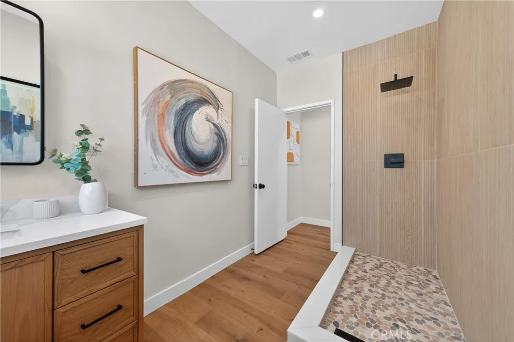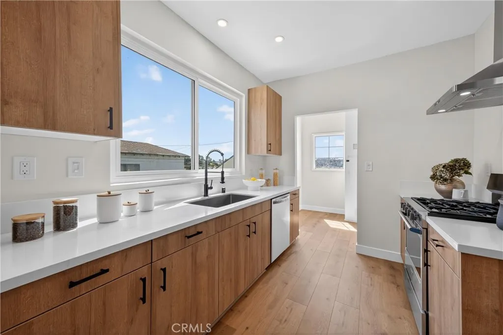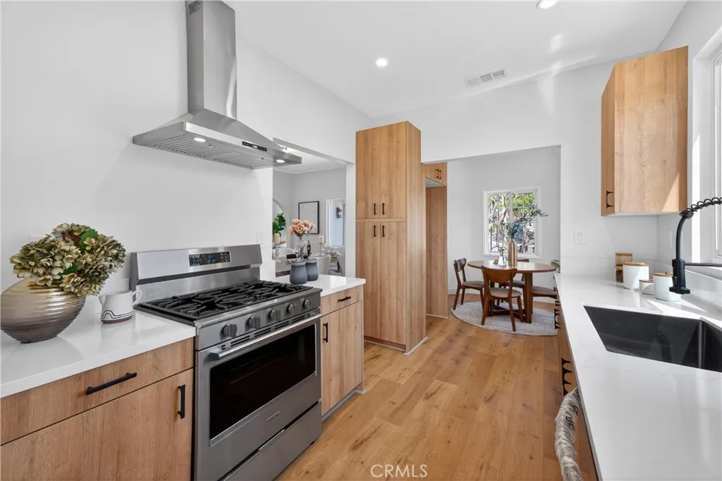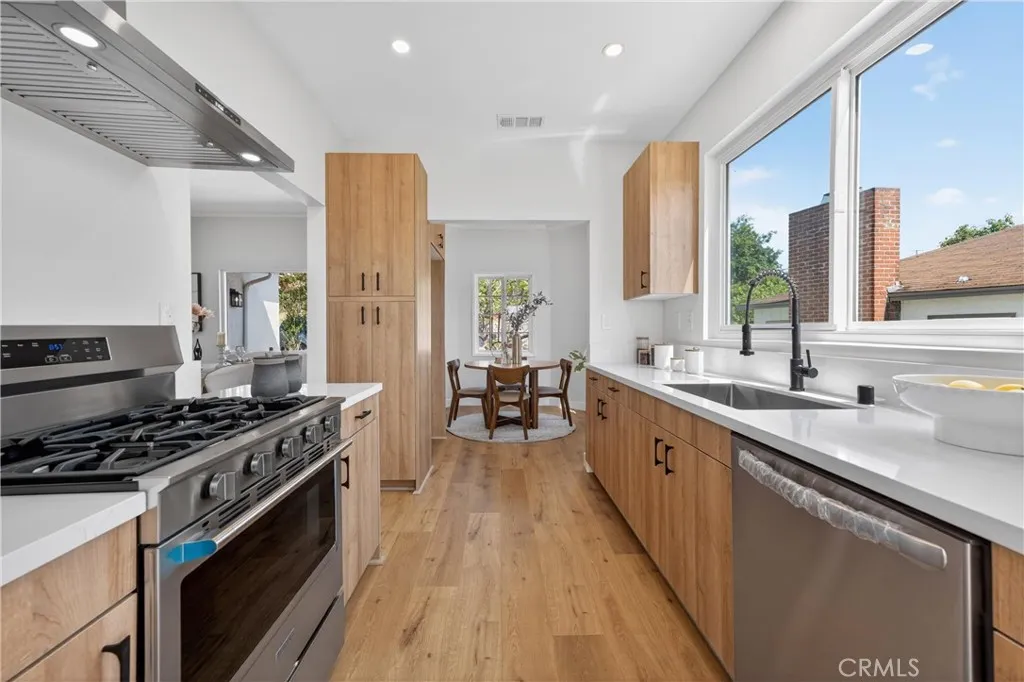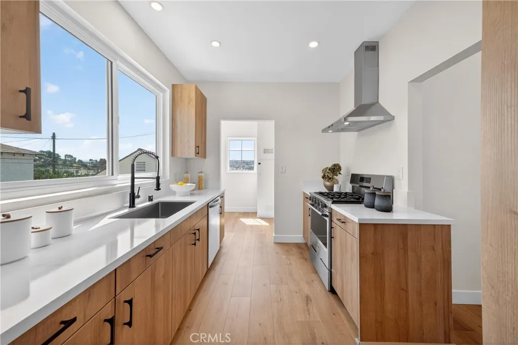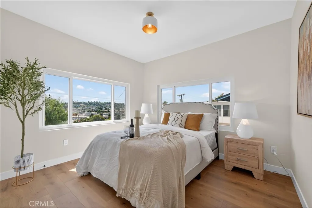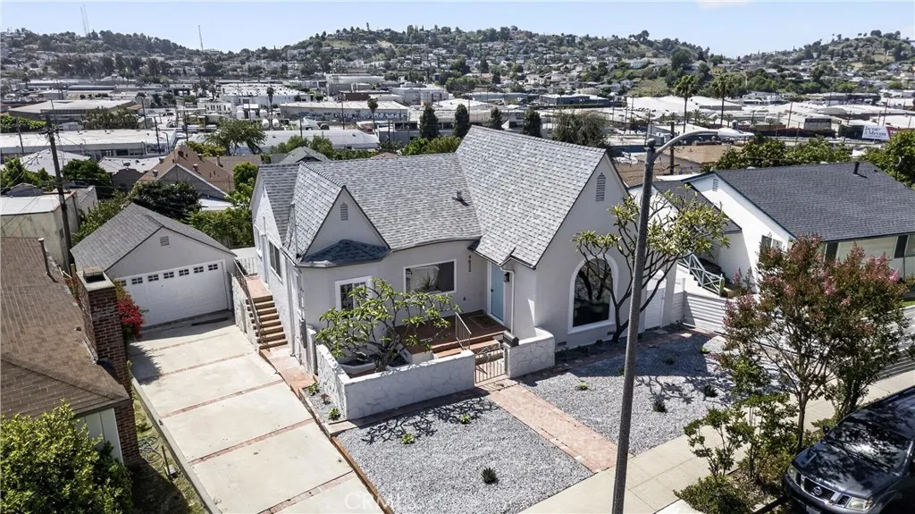 Stunningly Reimagined Tudor in the Heart of El Sereno! Nestled in the vibrant and highly sought-after community of El Sereno, this gorgeous remodeled Tudor-style home perfectly blends classic architectural charm with sophisticated modern luxury. From the moment you arrive, the striking facade and professional landscaping set the stage for a residence that is as stylish as it is welcoming. The light-filled interior boasts an open-concept flow, featuring soaring vaulted ceilings and pristine light oak flooring throughout. The gourmet kitchen is a chef’s dream, outfitted with custom cabinetry, sleek quartz countertops, and high-end stainless steel appliances. Adjacent to the dining area, the spacious living room centers around a minimalist fireplace, framed by a massive arched window that invites the outdoors in. The primary suite is a true sanctuary, where expansive windows offer breathtaking, unobstructed views of the rolling hills and city lights. The spa-like bathrooms are meticulously designed with designer tile work, premium fixtures, and a walk-in rain shower featuring a river-rock floor. Every detail of this home has been curated for the discerning buyer looking for a turnkey masterpiece in one of Northeast LA’s hottest neighborhoods. Welcome home to a perfect marriage of vintage soul and contemporary elegance.