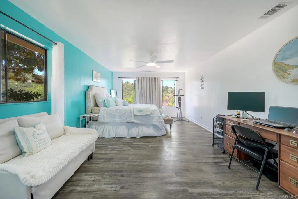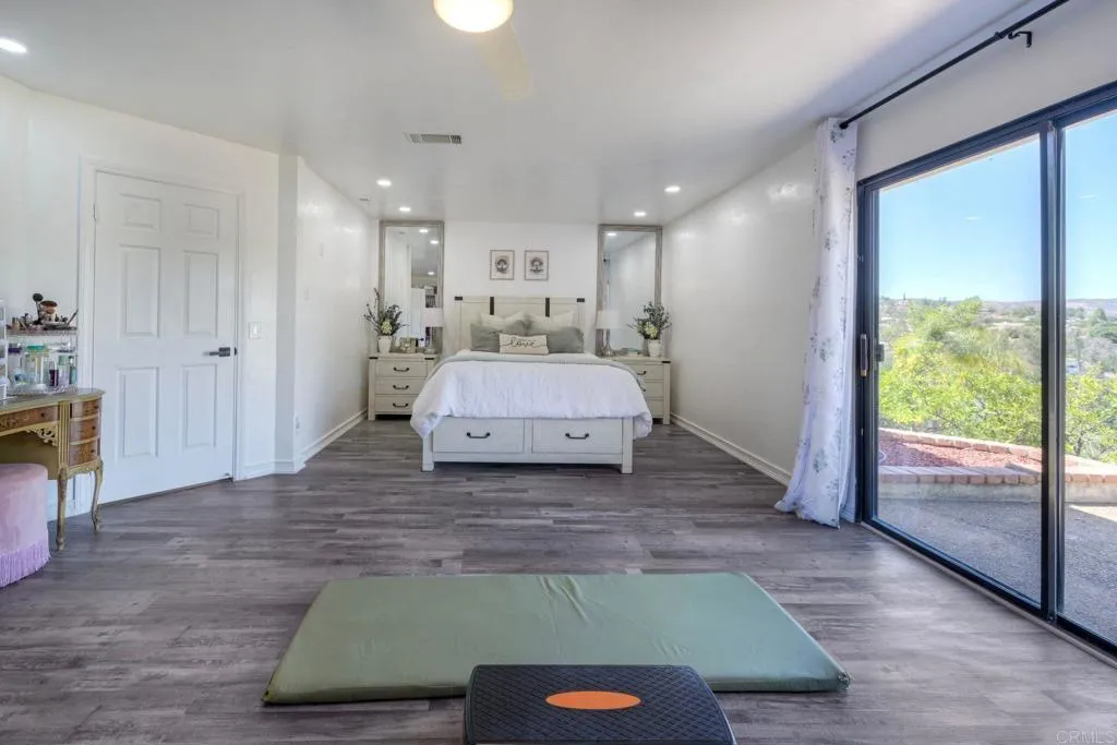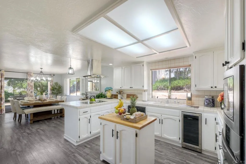 Welcome to this beautifully upgraded home offering approximately 2,540 sq ft on a generous .63-acre lot in the highly desirable San Diego Country Estates. This spacious 4-bedroom, 2.5-bath home blends comfort, privacy, and stunning mountain views.The flexible layout includes two oversized bedrooms, plus another bedroom ideal for a home office, guest room, or additional pantry/storage. The open-concept interior is filled with natural light and features brand-new luxury vinyl flooring, fresh interior paint, a freshly painted fireplace, a wet bar for entertaining, and new ceiling lights with fans throughout. The kitchen is updated with new pendant lighting, a chandelier, new electric cooktop, modern hood range, and a new refrigerator. The primary suite includes a custom closet system. Bathrooms have been refreshed with new flooring, toilets, a new sink in the half bath, and upgraded lighting with built-in speakers and exhaust fans. Ample storage is found throughout. Step outside to enjoy peaceful outdoor living under a magnolia tree, with expansive mountain views and a spacious backyard perfect for entertaining. The property includes 3 oak trees, 3 palm trees, and a private fruit orchard with 3 orange trees, 3 grapefruit trees, and 5 lemon trees. Additional highlights include a 3-car garage, driveway parking for up to 8 vehicles, and fully paid solar (16 panels). Located near San Vicente Resort Golf Course, Barona Casino, and local wineries, this home offers space, upgrades, natural beauty, and convenience.