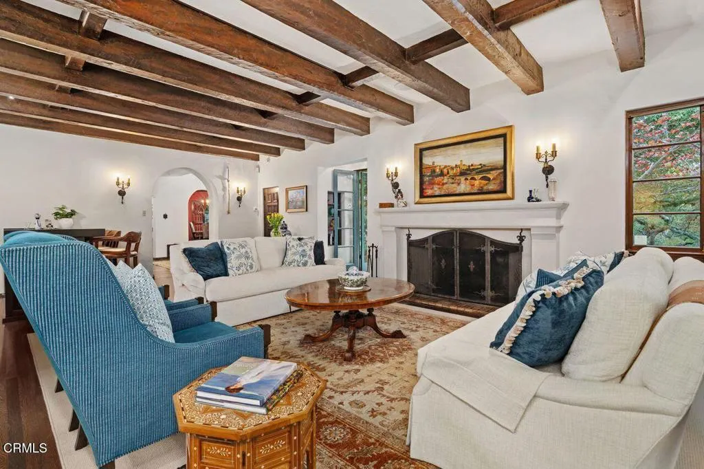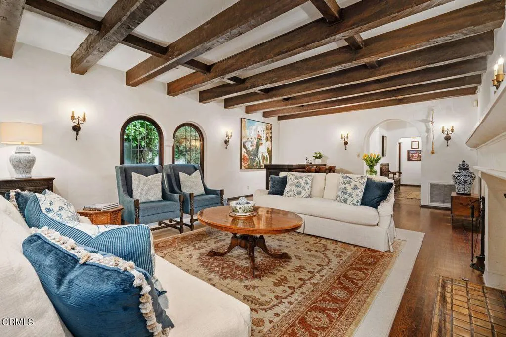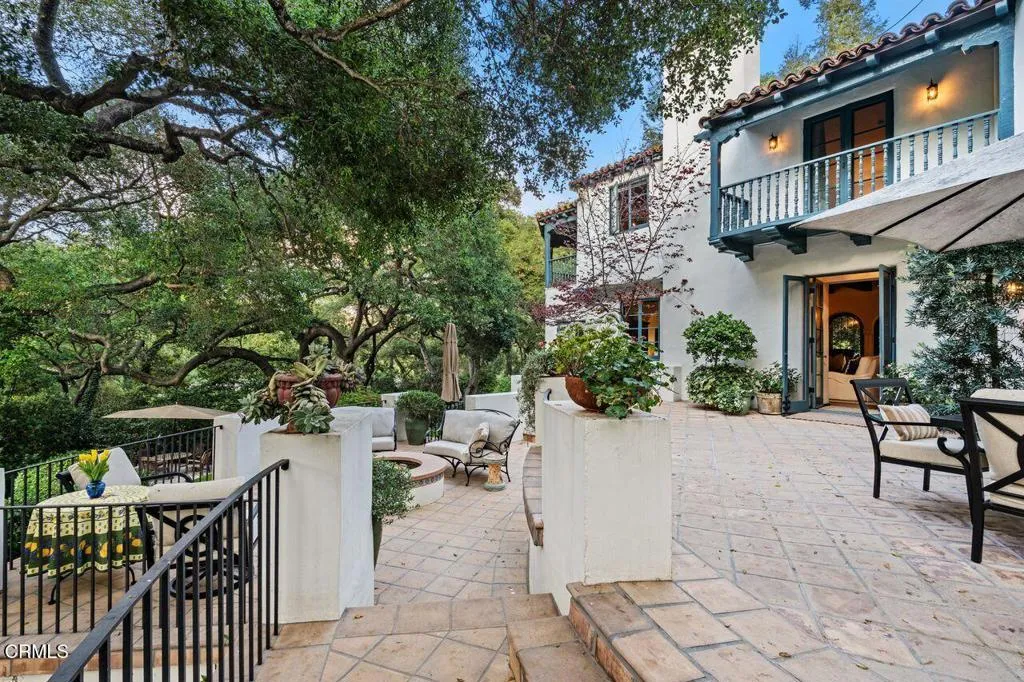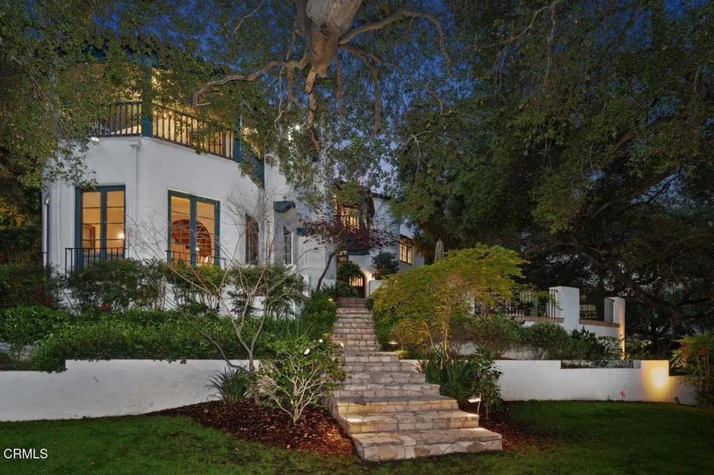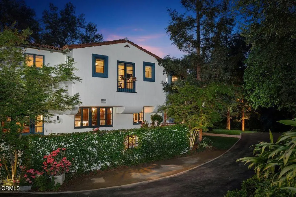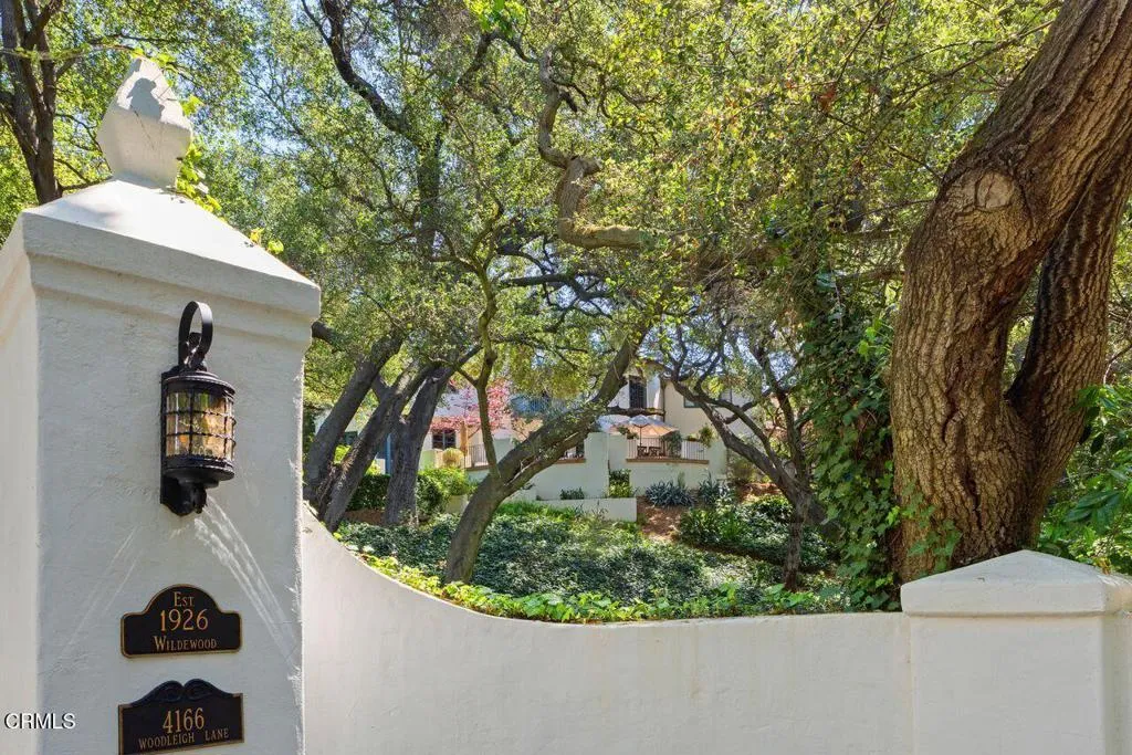 Welcome to a rare opportunity to acquire one of the most architecturally significant and storied estates in La Canada Flintridge. Nestled among majestic heritage oak trees in the prestigious Flintridge enclave, Wildewood Estate is a 1926 Spanish Colonial masterpiece set on a 40,523 square foot lot, designed by architect Ray J. Kieffer. It offers both historical provenance and extraordinary Mills Act tax advantages, with estimated annual property tax savings of approximately $75,000. Believed to have been offered for sale only once in its history, this is a legacy property of uncommon distinction.Officially recognized as the First Historically Significant Residence in La Canada Flintridge, the estate holds a distinguished place in the community's architectural legacy and has been featured in leading design publications, including Homes & Gardens, which recognized it as 'one of the world's best homes' for its thoughtful blend of modern comfort and original character.Over 17 years, the current owners undertook an extraordinary restoration, preserving original details while enhancing the home for modern living. Specialized architects and skilled tradespeople ensured period-appropriate work. Improvements include a full rebuild of the kitchen and all bathrooms, a new front courtyard, expanded backyard deck, and a downstairs wine room. The former domestic help quarters above the three-car garage have been rebuilt and now serve as a private home office with a kitchenette and bath.The two-story residence showcases authentic Spanish Colonial Revival architecture, with east- and west-facing patios and an inviting upstairs sitting porch. A dramatic coffered-ceiling entry with leaded-glass windows introduces interiors rich in character, including a grand living room with open-beam ceilings and fireplace, formal dining room, breakfast room, chef's kitchen with butler's pantry, and guest powder room. Upstairs, the primary suite features a fireplace, dressing room, Malibu tile bath, and large closet, alongside a secondary suite and two additional bedrooms. In total, the estate features five bedrooms and four-and-a-half baths.The grounds offer sweeping views of the San Gabriel Mountains and historic Flintridge, while a drive-through driveway from two wooded lanes enhances privacy and presence.Wildewood Estate is a preserved piece of Southern California architectural history offering grandeur, romance, and enduring financial advantage through the Mills Act designation.