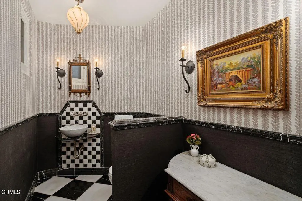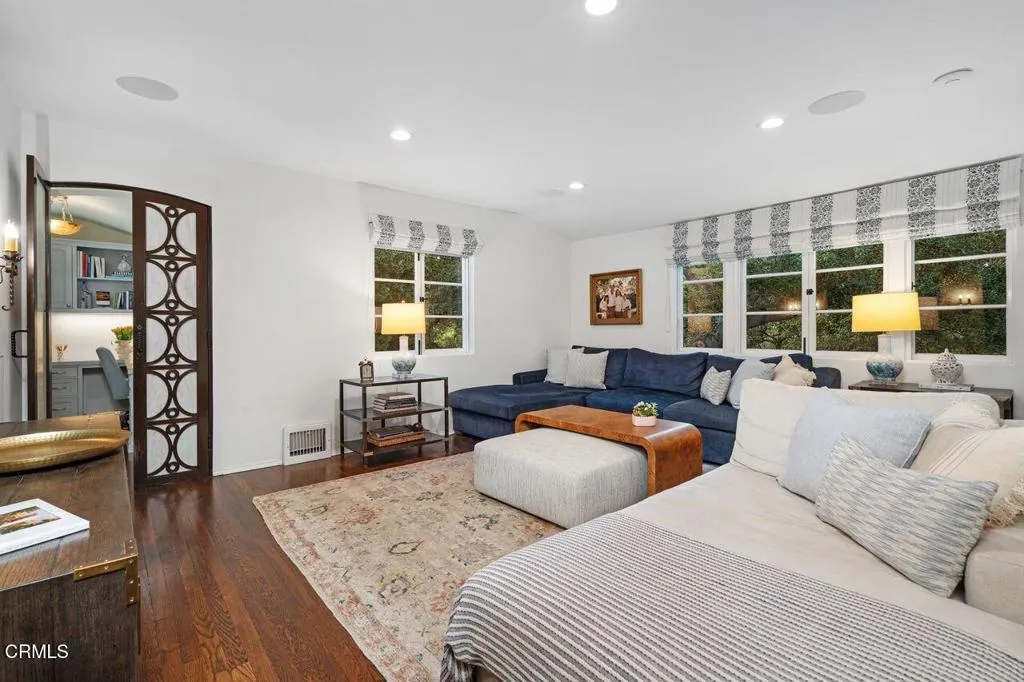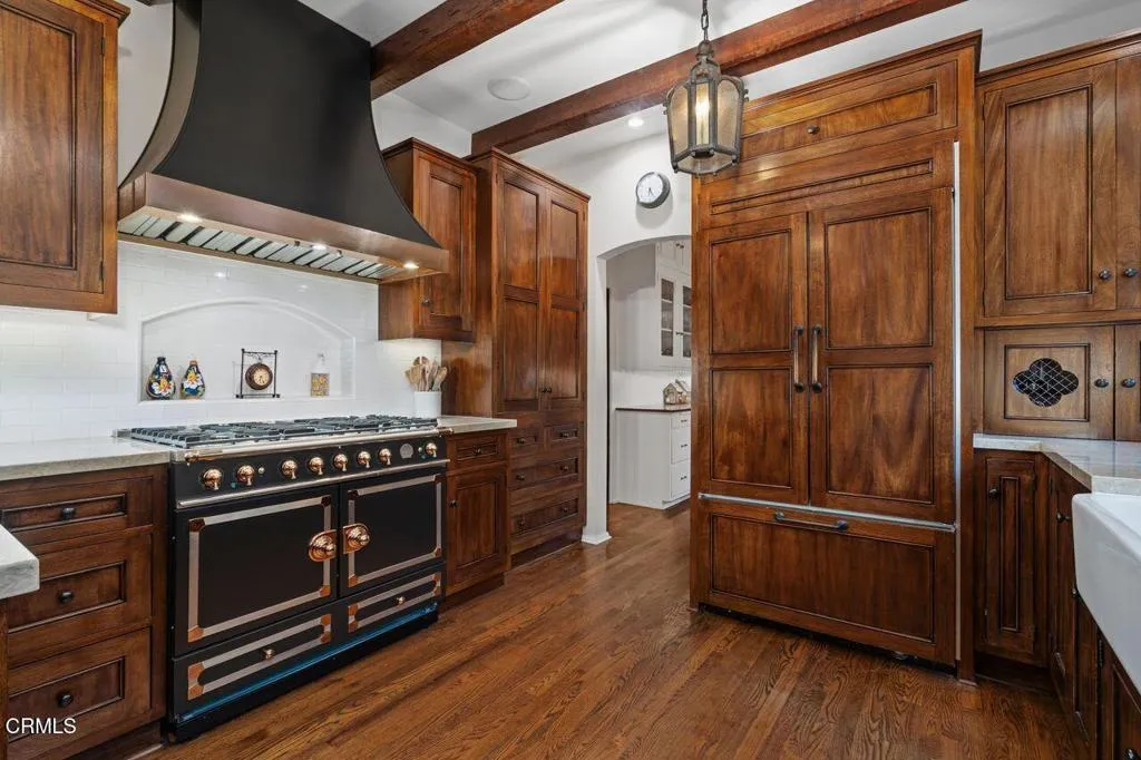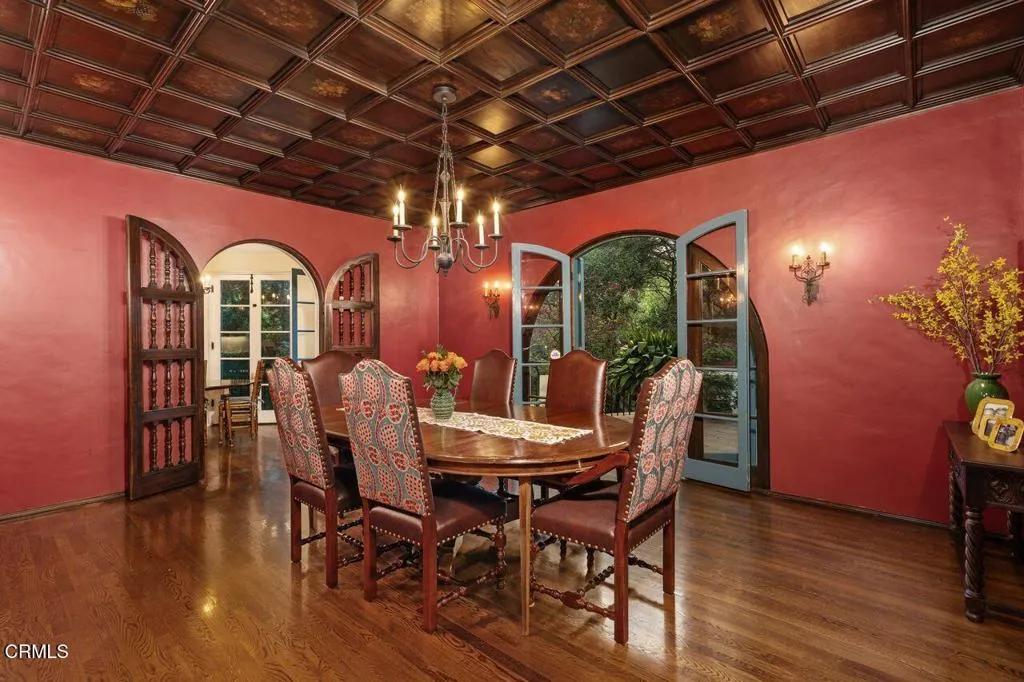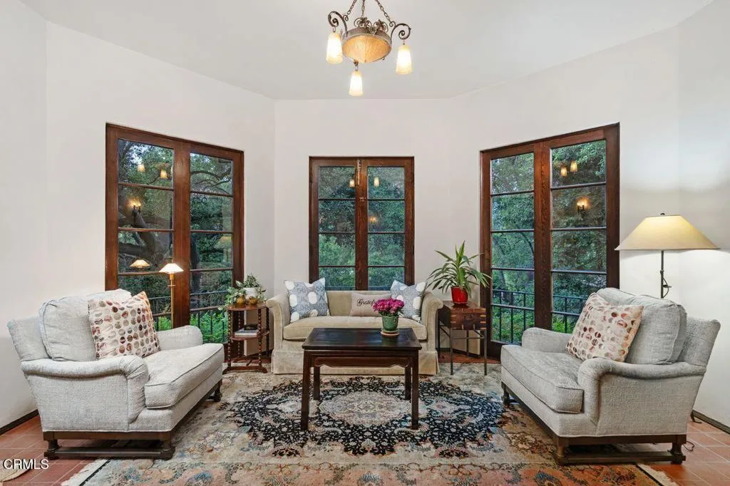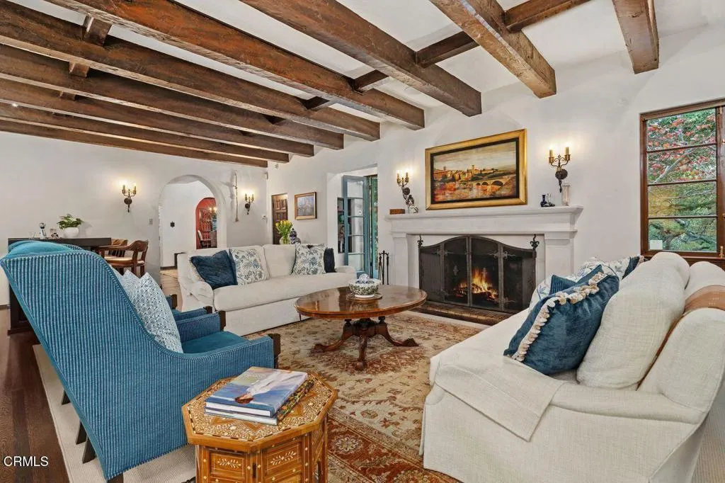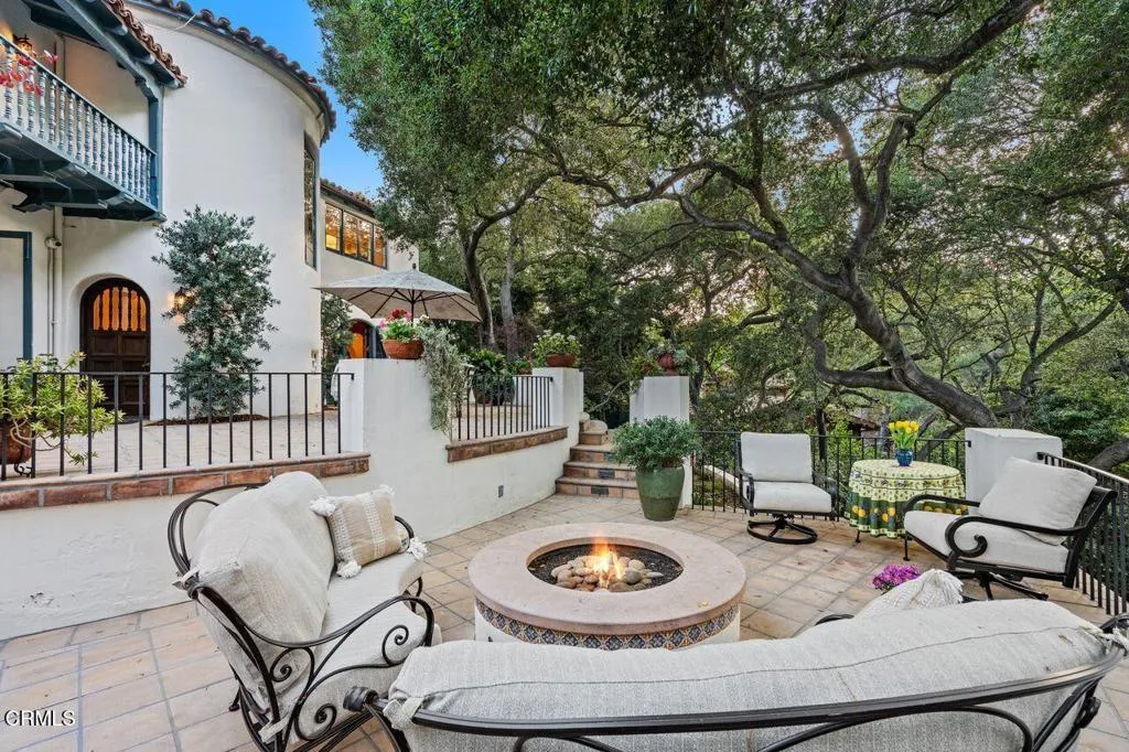 Welcome to a rare opportunity to acquire one of the most architecturally significant and storied estates in La Canada Flintridge. Nestled among majestic heritage oak trees in the prestigious Flintridge enclave, Wildewood Estate is a 1926 Spanish Colonial masterpiece set on a 40,523 square foot lot, designed by architect Ray J. Kieffer. It offers both historical provenance and extraordinary Mills Act tax advantages, with estimated annual property tax savings of approximately $75,000. Believed to have been offered for sale only once in its history, this is a legacy property of uncommon distinction.Officially recognized as the First Historically Significant Residence in La Canada Flintridge, the estate holds a distinguished place in the community's architectural legacy and has been featured in leading design publications, including Homes & Gardens, which recognized it as 'one of the world's best homes' for its thoughtful blend of modern comfort and original character.Over 17 years, the current owners undertook an extraordinary restoration, preserving original details while enhancing the home for modern living. Specialized architects and skilled tradespeople ensured period-appropriate work. Improvements include a full rebuild of the kitchen and all bathrooms, a new front courtyard, expanded backyard deck, and a downstairs wine room. The former domestic help quarters above the three-car garage have been rebuilt and now serve as a private home office with a kitchenette and bath.The two-story residence showcases authentic Spanish Colonial Revival architecture, with east- and west-facing patios and an inviting upstairs sitting porch. A dramatic coffered-ceiling entry with leaded-glass windows introduces interiors rich in character, including a grand living room with open-beam ceilings and fireplace, formal dining room, breakfast room, chef's kitchen with butler's pantry, and guest powder room. Upstairs, the primary suite features a fireplace, dressing room, Malibu tile bath, and large closet, alongside a secondary suite and two additional bedrooms. In total, the estate features five bedrooms and four-and-a-half baths.The grounds offer sweeping views of the San Gabriel Mountains and historic Flintridge, while a drive-through driveway from two wooded lanes enhances privacy and presence.Wildewood Estate is a preserved piece of Southern California architectural history offering grandeur, romance, and enduring financial advantage through the Mills Act designation.