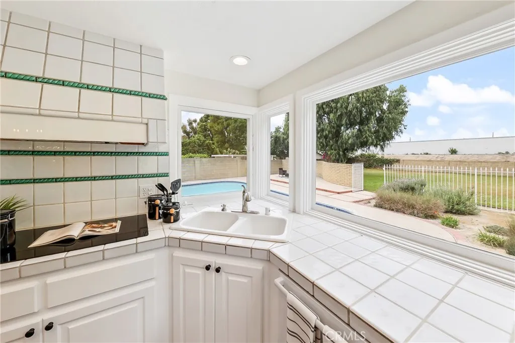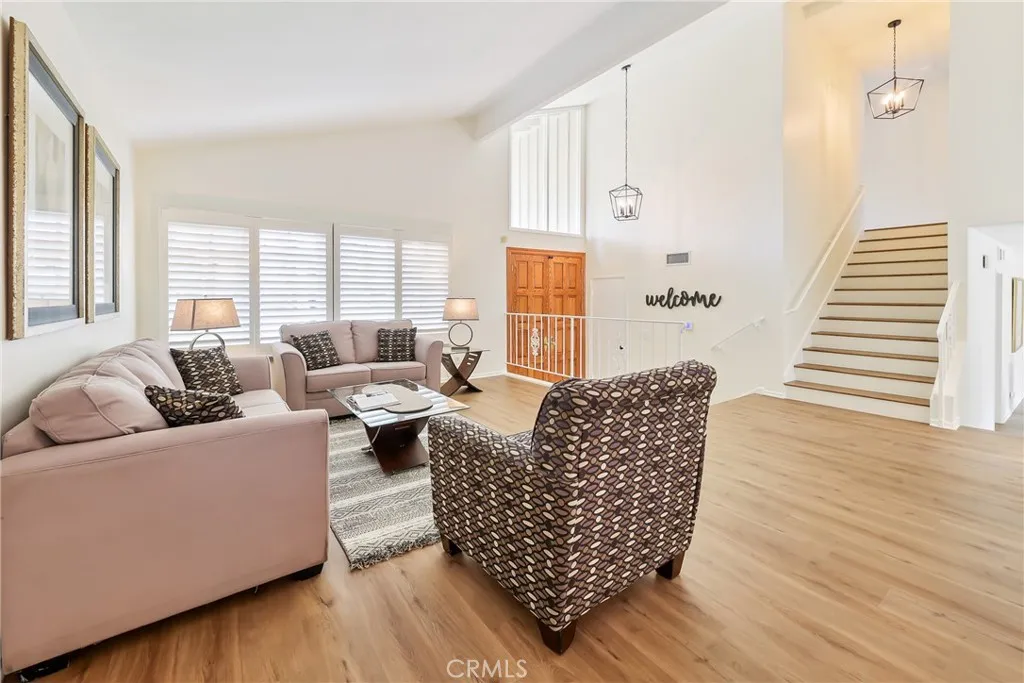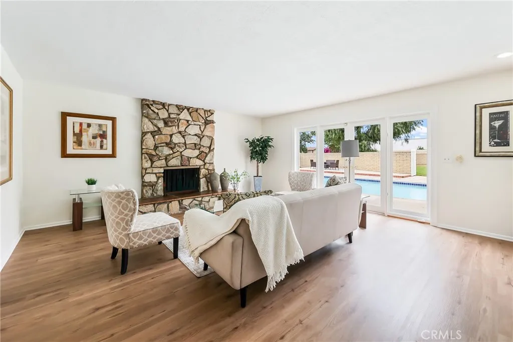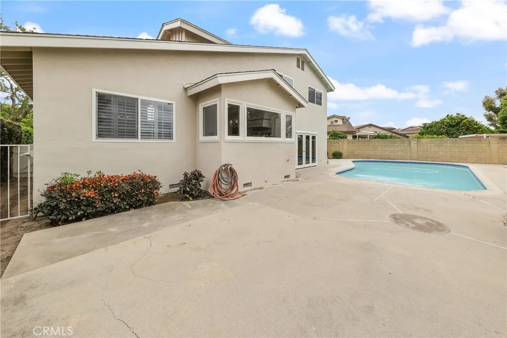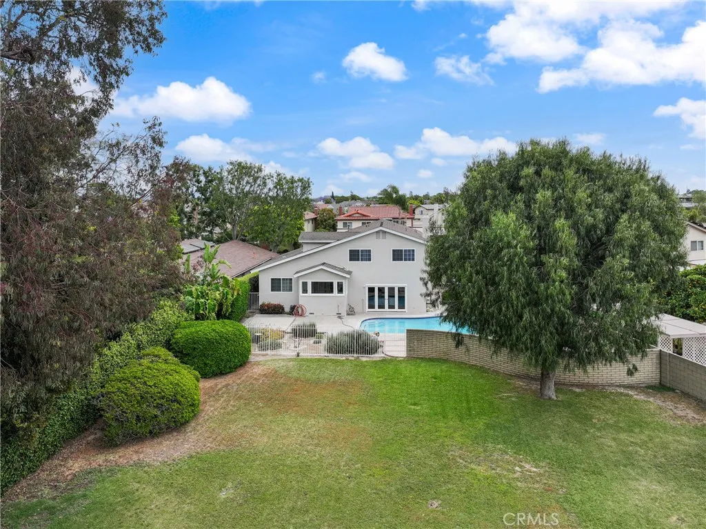 Welcome to this rare find, situated on 2 lots totaling 12,770 Sq. Ft.! The front lot which holds the home and pool area is 7107 SF and the bonus back lot is 5663 SF. An ADU can be built on the back lot (verify with city) or make it into an exquisite and fun entertaining area. This classic S&S home has been beautifully refreshed and is located in the highly sought-after College Park North neighborhood of Los Alamitos. With 4 bedrooms, 2.5 baths and approximately 2585 square feet of living space, the multi-level layout is very versatile. Double front doors open into a formal entry, which steps up to the living room and dining area, which feature vaulted ceilings. The kitchen has been lovingly maintained, blending original charm with thoughtful updates such as recessed lighting, tray ceiling, custom cabinets and drawers with fresh paint & hardware, induction cooktop, double oven and Thermador warming drawer. Enjoy an expansive view of the backyard and pool through large picture windows. Step down to the family room complete with a raised rock fireplace, wet bar and freshly painted built-in cabinets and shelving, with direct access through the French doors to your private backyard retreat. Downstairs is one bedroom (used as an office) and a half bathroom, plus a dedicated laundry area. Upstairs is the spacious primary bedroom with ensuite bath, walk-in closet, additional large closet with mirrored wardrobe doors, and private balcony with an amazing view of the horizon. Two additional bedrooms and a full bathroom complete the upper level, with one bedroom offering a unique multi-level design accented by a charming dormer window. Step outside to your oversized, resort-style backyard with an in-ground pool, hardscaped patio area, firepit and shaded lawn area. The pool was just completely redone including all equipment, plumbing, mechanics, plaster and tile. Current updates include new wood-look laminate flooring throughout, new paint inside and out, newer central AC, heater and water heater, newer flex piping, new light fixtures and fresh landscaping. Additional highlights include dual pane vinyl windows, French doors, plantation shutters and recessed lighting. Your large 2 car garage with direct access to the house adds convenience. All of this is located within the high rated Los Alamitos School District and just moments from parks, schools, dining and shopping. Don’t miss out on the opportunity to make this home yours!