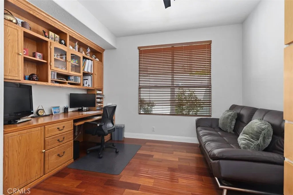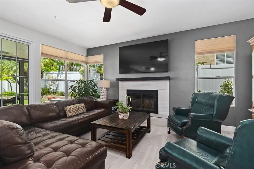 Welcome to this beautiful and spacious Flora Vista 4-bedroom, 3-bath plus office home in San Clemente's sought after Forster Ranch area with high ceilings and a bright airy feel. Enjoy the wood floors in the entry, living and dining rooms, while the kitchen and family room feature tile flooring. The kitchen has granite countertops, an island, a Thermador 6-burner range and a built-in microwave/single oven combo. The downstairs includes an office/den, full bathroom and laundry room. The upstairs offers a primary suite with a large bathroom featuring separate tub, shower, fireplace and walk-in closet, 3-bedrooms and a full bathroom. The backyard includes a covered patio with a built-in barbecue and owned Solar panels on the roof. Bright, sunny and thoughtfully designed throughout, this home offers a versatile layout and a seamless balance of comfort, functionality and style.