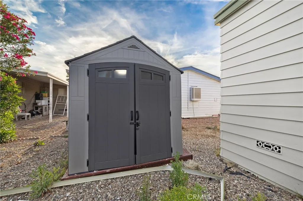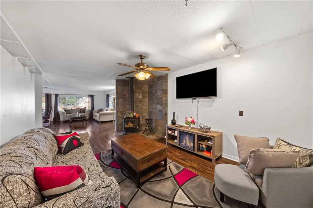 Lovely, well maintained 2 bedroom 2 bath in Eden Roc North 55yr+ senior community. Formal living room and family room with Franklin wood-burning stove. Kitchen has a 5-burner gas stove, oven with broiler, dishwasher, refrigerator dbl sink. Primary bedroom has dressing area with spacious seated vanity, loads of closet space, linen closet, and large walk-in shower. Full guest bath. Laminated wood flooring in all but guest bedroom. Ceiling fans in nearly every room. Screen in front porch. 2 sheds. Great park amenities including pool, spa, clubhouse, game room, billiards, banquet facilities, and more.