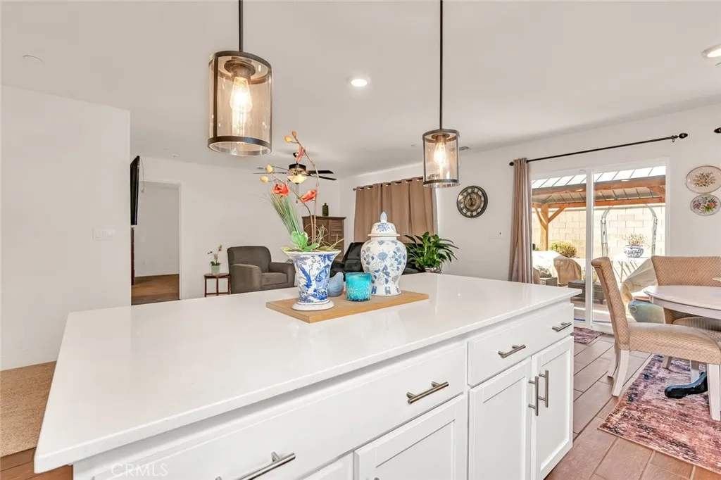 Welcome to this beautifully maintained single-story home built in 2020, located in a desirable gated community. This 4-bedroom, 2-bathroom home offers a modern open-concept layout designed for comfortable living and entertaining. The kitchen features quartz countertops, stainless steel appliances, a gas stove, built-in microwave, pantry, and a convenient bar area—all opening seamlessly to the spacious living room filled with natural light. Refrigerator is included, adding extra convenience for the new owner. Tile flooring enhances both style and durability in the main living areas. The primary suite offers a relaxing retreat with a walk-in closet, dual sinks, and a walk-in shower. Three additional bedrooms provide flexibility for family, guests, or a home office. Washer and dryer are also included, making this home truly move-in ready. Outside, enjoy a low-maintenance backyard with extensive concrete—perfect for entertaining or easy upkeep. The property also offers potential RV or boat parking, adding extra versatility. With a stucco exterior and modern finishes throughout, this home combines style, function, and convenience in a secure community setting.