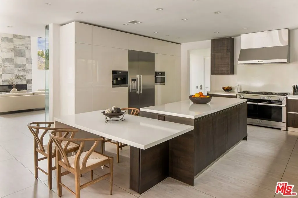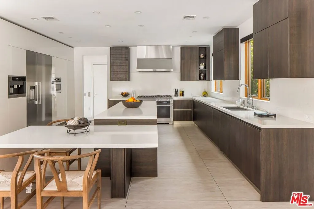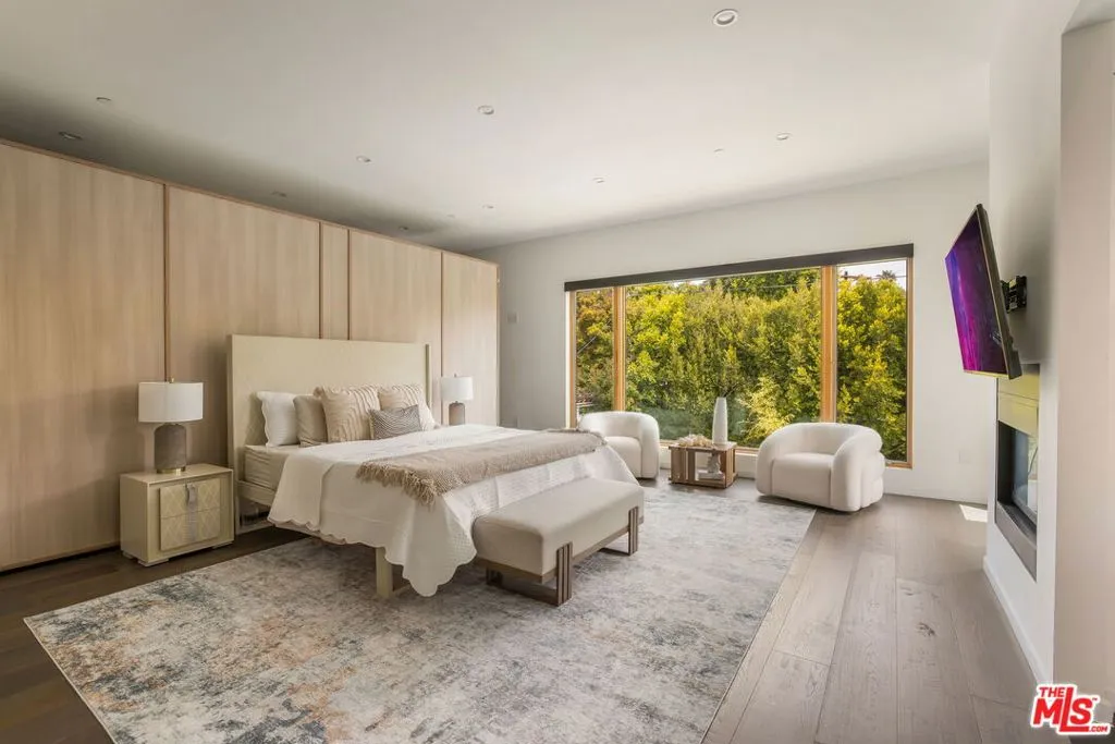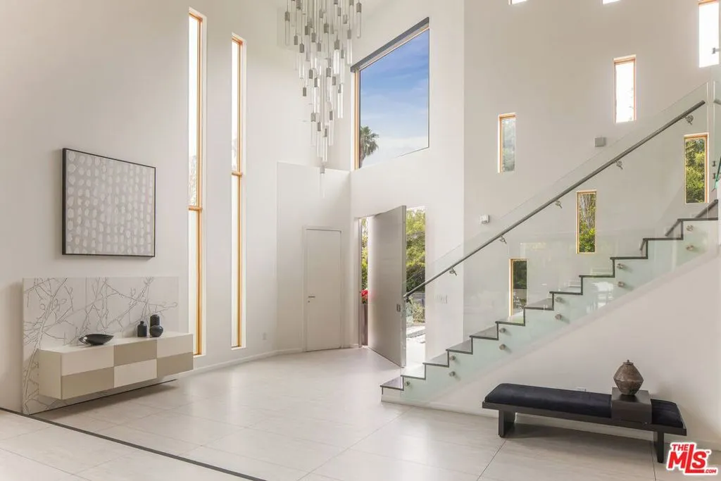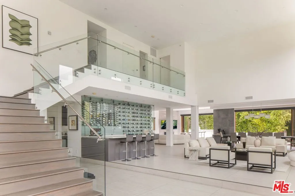 A Stunning architectural triumph, set back from iconic Sunset Boulevard t this custom-built Brentwood estate seamlessly blends modern sophistication with inviting warmth. From the moment you enter it feels warm and inviting, providing a great atmosphere. Situated on an expansive lot, this 7-bedroom, 7-bathroom masterpiece offers thoughtfully designed living spaces tailored for grand entertaining and effortless everyday living. Step through a dramatic double-height foyer where 24-foot cathedral ceilings, a dazzling chandelier, and floor-to-ceiling windows create an unforgettable first impression. The open-concept layout flows with intention, wrapped in rich Italian tile flooring and illuminated by designer lighting that sets the perfect ambiance throughout. At the heart of the home lies a show stopping chef's kitchen, outfitted with top-of-the-line Miele appliances, a wine fridge, built-in coffee maker, sleek Italian cabinetry, and a cozy breakfast nook. Double Expansive panoramic sliding doors blur the lines between indoors and out, leading to an unexpectedly serene backyard oasis. Discover a private outdoor retreat where luxury and tranquility meet. The backyard features a heated pool, spa, outdoor fireplace, built-in BBQ, and elegant seating areas designed for year-round entertaining, this hidden sanctuary offers peace and privacy. The lower level opens up a world of lifestyle possibilities with its own entrance and parking. It's complete with a state-of-the-art movie theater, fitness room, and two generously sized bedrooms including a spacious suite perfect for guests, in-laws, or a private studio. With room for a car collection or even an art gallery, the space is as functional as it is flexible. An elevator services all levels, including the tranquil primary suite featuring a cozy fireplace, custom walk-in closets, and a lavish, spa-inspired bathroom with a standalone Italian soaking tub, oversized rainfall shower, and dual vanities. Each additional bedroom offers an en-suite bath and walk-in closet, ensuring both comfort and privacy. To top it all off, a stunning rooftop terrace provides panoramic city views an ideal setting for elevated entertaining or peaceful evenings under the stars. With parking for up to 16 cars, a converted office garage, and a triple-zone smart climate system, every detail has been carefully curated. This is more than a home it's a lifestyle. Bold. Refined. One of a kind.
