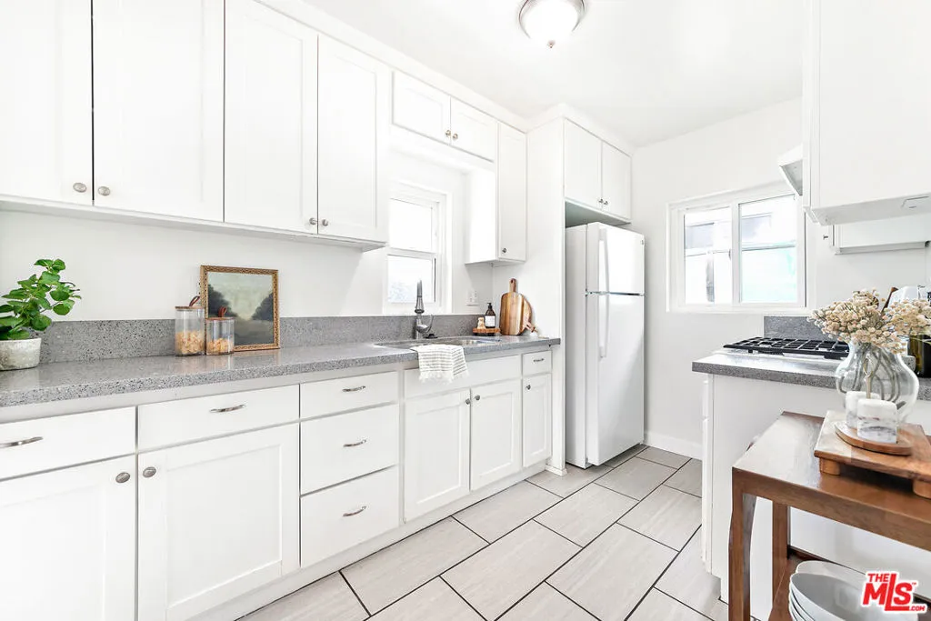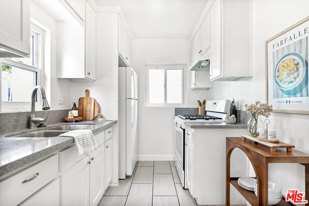 Nestled in the vibrant community of East Los Angeles, this exceptional front unit stand alone single family home offers a rare opportunity. Situated on a spacious 6,686 sqft lot, this 2 bed 1 bath bungalow is thoughtfully updated, showcasing modern upgrades including updated plumbing and electrical systems, remodeled kitchen with quartz countertops, a stainless steel sink, ceramic tile flooring, and dual-pane windows. Comfort is ensured year-round with updated AC and heating systems. To top it off, there is a laundry area/room with washer and dryer inside the home. It has its own private 2-car garage, along with separate outdoor spaces, enjoy a welcoming freshly painted front porch and gated front yard. The fully fenced lot is enhanced with mature fruit trees, offering both privacy and charm. Conveniently located just minutes from major freeways and only about 10 minutes from Downtown Los Angeles, you'll have easy access to hotspots like the Arts District, Little Tokyo, and ROW DTLA known for their dynamic dining options.