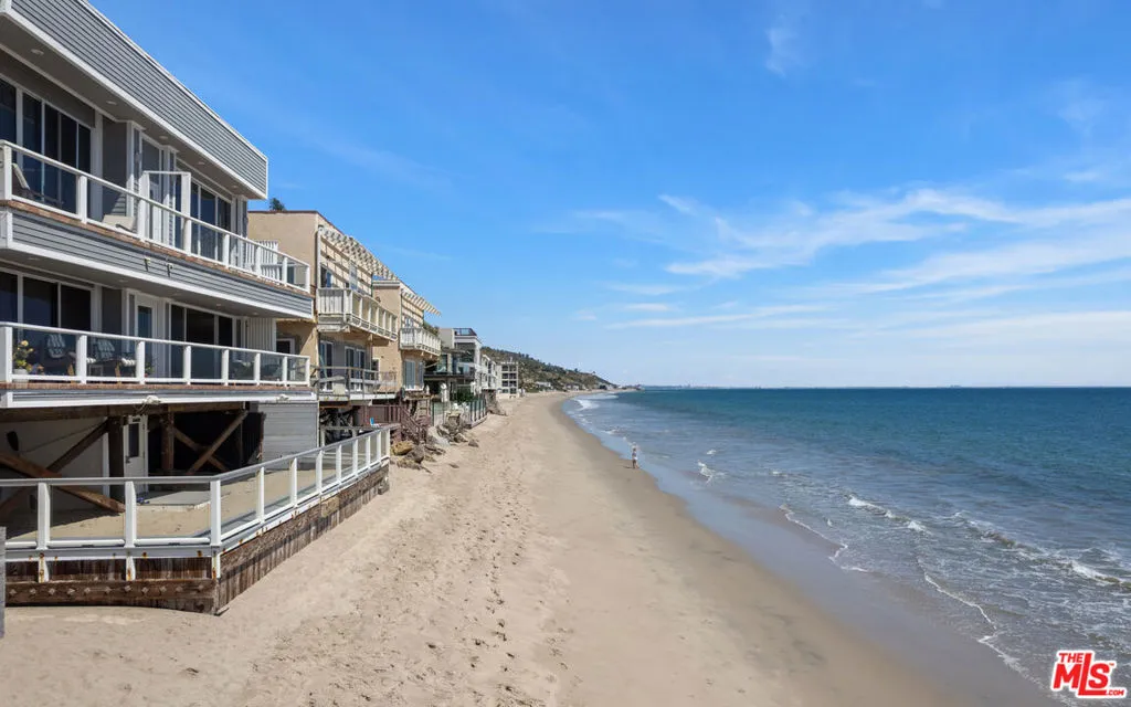 Experience the pinnacle of coastal luxury in this rare 2-bedroom, 2-bath oceanfront residence on exclusive Carbon Beach (Billionaire's Beach). Nestled next door to Nobu Malibu, Little Beach House Malibu (Soho House), and just steps from the historic Malibu Pier, this home offers unparalleled access to the sand, surf, and celebrity-favored dining and social scene. Step onto your private beachfront deck, where the Pacific crashes just beneath you and panoramic views sweep along the Santa Monica coastline. The deck seamlessly flows into a bright, sun-drenched living room perfect for entertaining or quiet evenings by the sea. Adjacent is a beautifully updated kitchen featuring top-of-the-line stainless steel appliances, ideal for effortless coastal living. The spacious primary suite boasts a generous walk-in closet and a luxurious en-suite bath with a separate shower and soaking tub. Additional highlights include a gated, oceanfront community, in-residence laundry, and a two-car tandem garage for secure, convenient parking. This turnkey beachfront gem delivers the ultimate Malibu lifestyle, don't miss your chance to own a piece of this legendary shoreline.
