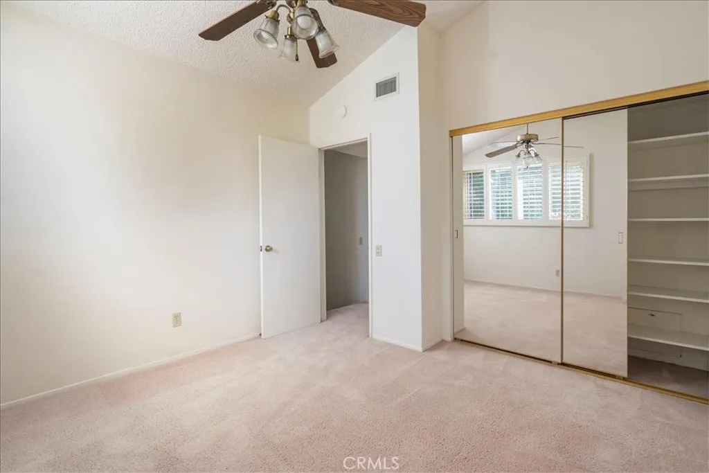 A 4 bedroom, 2 Bath Townhome within walking distance of a Golf Course. This stunning 4-bedroom, 2-bathroom townhome embodies the essence of resort-style living. As you enter, you're greeted by the airy expanse of the living room, boasting high ceilings that add a touch of grandeur to your everyday living space. The downstairs area features a spacious kitchen adorned with tile counters, offering ample room for culinary creations, and a generous dining area that's perfect for hosting gatherings. Sliding glass doors beckon you to the outside patio, an ideal spot for entertaining guests or unwinding with a refreshing morning coffee or a leisurely evening glass of wine. Venturing further downstairs, discover the primary bedroom, complete with an adjoining bath for added convenience, as well as another well-appointed secondary bedroom. Upstairs, two additional bedrooms await, along with a full bathroom. Valencia Fairways offers residents a plethora of amenities. Enjoy the nearby golf course, sparkling community pools, tennis court, and the lush parks throughout the neighborhood. Convenience is key with easy access to the freeway and close proximity to California Arts, College of the Canyons and Meadows Elementary. Don't miss your chance to experience the epitome of Southern California living at Valencia Fairways. Schedule your viewing today