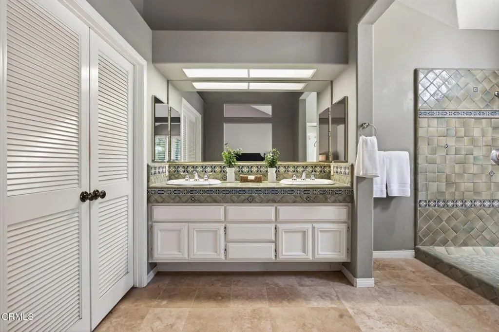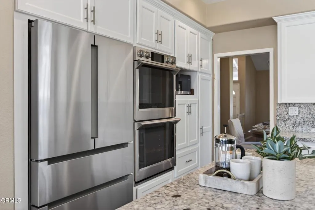 Spectacular is the only way to describe this exceptional single-story home, ideally situated on a quiet cul-de-sac within JM Peter River Ridge--Oxnard's premier golf course community. Known for its broad, curving streets, mature trees, and expansive estate-sized lots, this neighborhood offers both elegance and tranquility.Spanning nearly 2,600 square feet, this beautifully designed residence sits on an impressive 16,000-square-foot lot, thoughtfully landscaped with over 20 mature trees and professionally curated garden vignettes--perfect for outdoor dining and entertaining.Upon entry, you're welcomed by gleaming hardwood floors, soaring ceilings, and striking architectural details. Custom oversized windows and sandblasted shutters bathe the home in abundant natural light, creating a warm and inviting ambiance throughout.The reimagined gourmet kitchen is truly one-of-a-kind, featuring a large granite center island, abundant custom cabinetry, and premium stainless-steel appliances. Designed for both functionality and style, it retains a charming in-kitchen dining area that overlooks the serene backyard.The open-concept living spaces include a cozy living room with a custom fireplace and a spacious family room with a second fireplace--ideal for relaxing during cool coastal evenings.The luxurious primary suite serves as a private retreat, complete with dual vanities, a generous walk-in closet, a soaking tub, and a beautifully appointed shower with designer tile and glass block detailing. An oversized glass door provides direct access to the lush backyard.Three additional bedrooms offer versatility, including one with custom built-in bookshelves and a Murphy bed that converts into a desk. With French doors opening to the living room, this space is perfect as a bedroom, home office, library, or formal sitting area.Step outside and unwind to the peaceful sounds of nature in your private backyard oasis.Residents enjoy HOA amenities that include a resort-style pool and spa, tennis and pickleball courts, and expansive greenbelt areas--perfect for year-round enjoyment in the region's Mediterranean climate.Conveniently located just minutes from The Collection at RiverPark, you'll have access to top retailers and dining, including Whole Foods, REI, Cinemark Theatres, and Lazy Dog. Explore nearby Ventura for its vibrant breweries and coastal charm, or take advantage of easy access to Highway 101 for a seamless commute to Santa Barbara or Malibu.