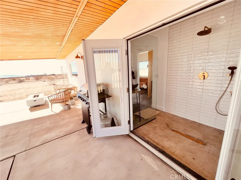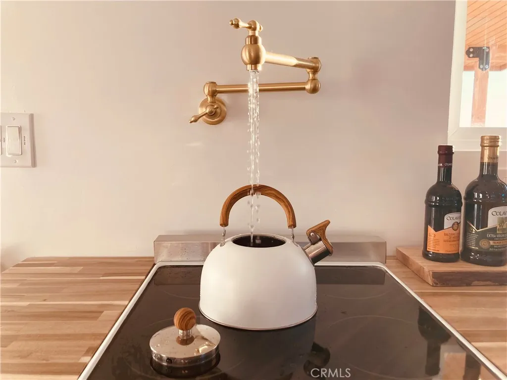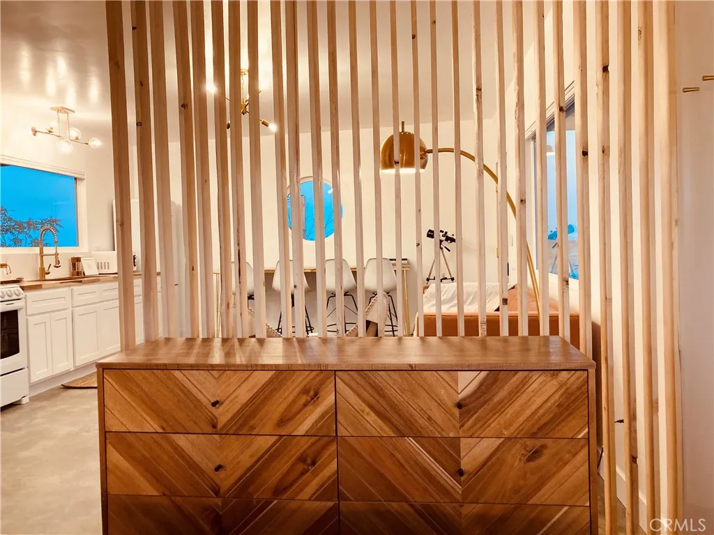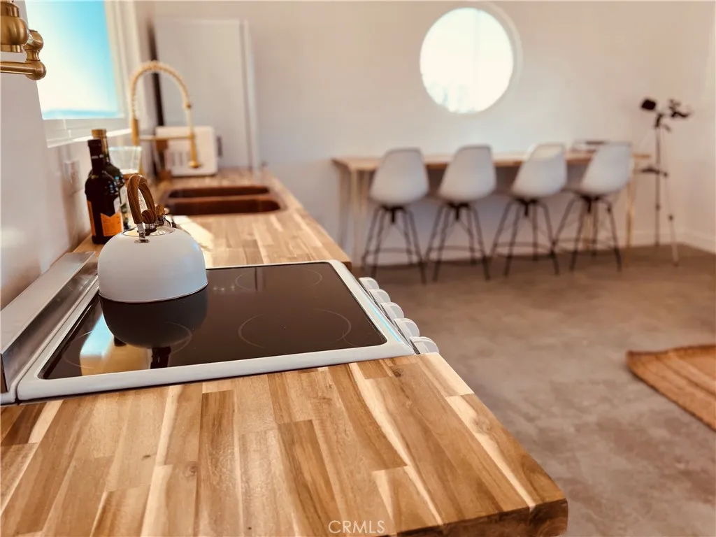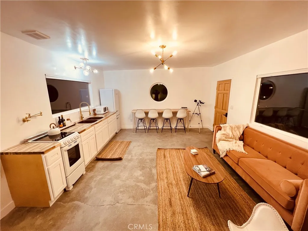 Looking for a fully turnkey, successful Airbnb to purchase and make your own... Introducing "The Luna Lookout - Double Tubs". This home's renovation was permitted including the conversation from a recreational cabin to an SFR home with a detached historic water tower and an upgraded electric panel. Experience incredible desert views, huge harvest moons and star filled nights. Nestled on a vast 5-acre property, this custom redesigned 1 bedroom, 1 bath residence offers stylish designer finishes and panoramic desert views. Designer touches include: gorgeous modern tiling, a walk out shower with French doors, oversized round windows, real copper sinks, pot filler, butcher block countertops, a high bar that flexes as an office space, wood mid century paneling and the original concrete floors. With wifi, city water, and fully on grid electric this house gives popular off grid vibes while being fully on grid. It has a tankless "on demand" water heater and new appliances. Zero details have been overlooked. Amenities include: hammocks, an outdoor shower, outdoor concrete firepit with a shaded lounge area, grill, and double hot or cold plunge tubs that are a huge hit with guests. The property converted the historic water tower to a fully heated and cooled laundry and storage room with a "lookout tower" for stargazing or watching wild life. Its thoughtful layout integrates the inside with the outside optimizing this tiny home into a luxurious space. Come experience why Joshua Tree is world renowned for its fusion of modern luxury and natural beauty and discover why guests consistently rate this Airbnb destination as a perfect 5-star escape. All furniture, furnishings, and supplies are negotiable and can convey with no value or warranty. Can be Sold Fully Furnished: All furniture, furnishings, and supplies are negotiable and can convey with no value or warranty. Permitted renovation and conversion from Rec Cabin to SFR is complete. No seller Carry.