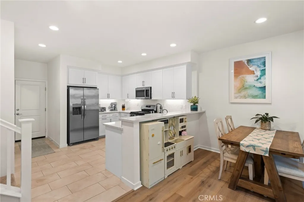 Welcome to this beautifully upgraded 3-bedroom, 3-bathroom townhome located in the highly sought-after Discovery neighborhood of Sommers Bend community, built by Woodside Homes. This two-story residence showcases exceptional attention to detail, quality finishes, and true pride of ownership throughout. The open-concept layout features a modern kitchen with quartz countertops, upgraded sink and touch-activated faucet, under-cabinet lighting, enhanced storage with custom shelving, and a spacious pantry with additional cabinetry and electrical outlet. The home has durable, pet-resistant wide plank laminate flooring and upgraded tile throughout the main living areas, with stain-resistant carpet and upgraded padding in the bedrooms and stairs. Upstairs, the primary suite includes a fully upgraded bathroom with a floor-to-ceiling tiled shower and thoughtfully enhanced hardware. Additional features include ceiling fans with multiple speeds and dimming in all bedrooms and living areas, Roman blackout shades throughout, and a well-appointed laundry room with butcher block counters, Kraft Maid cabinetry, and a wall-mounted retractable drying line. The garage is finished with epoxy flooring and built-in storage, while the home also benefits from enhanced insulation for added comfort and efficiency. A Frigidaire refrigerator is included, with regularly maintained water filtration. Located in a vibrant master-planned community, residents enjoy resort-style amenities including a clubhouse, swimming pool, and regular community events. Conveniently situated near parks, trails, and top-rated schools. This turnkey home offers the perfect blend of modern upgrades, functionality, and community living.