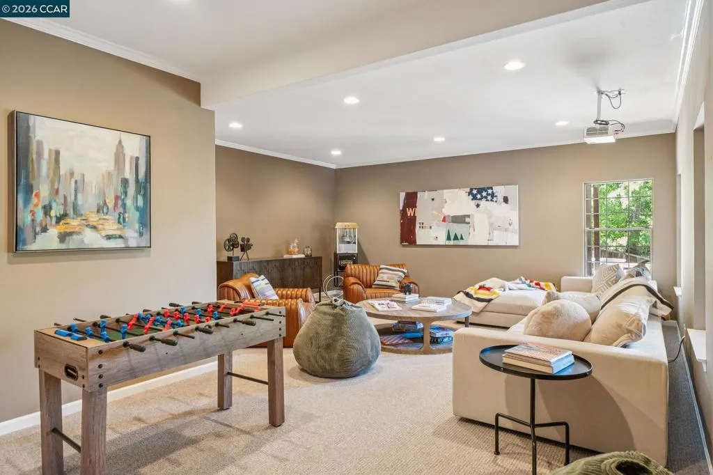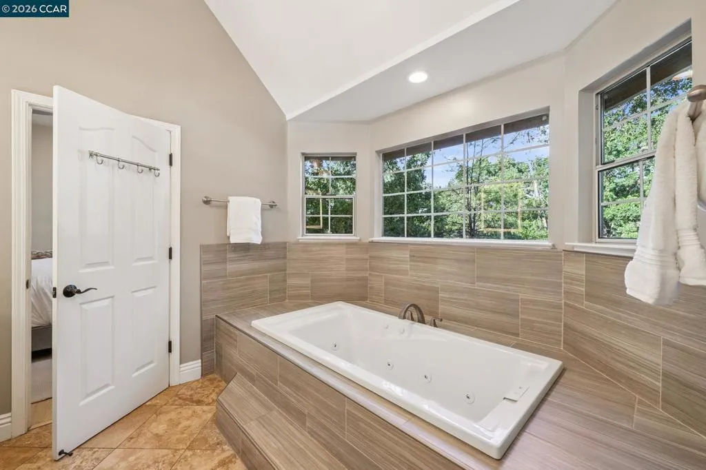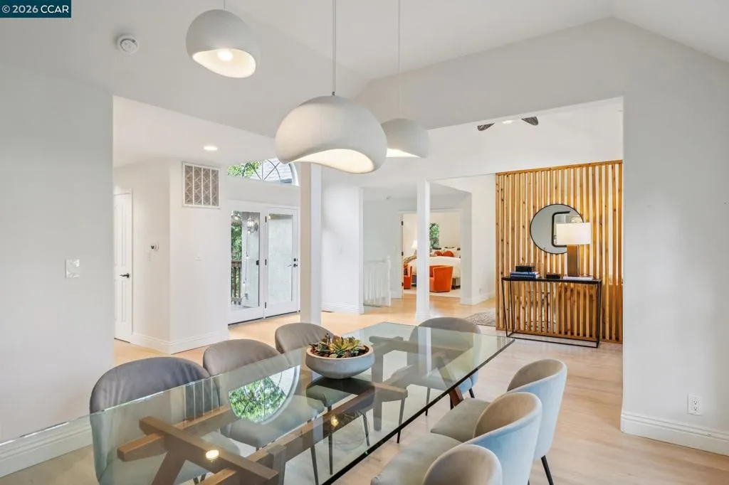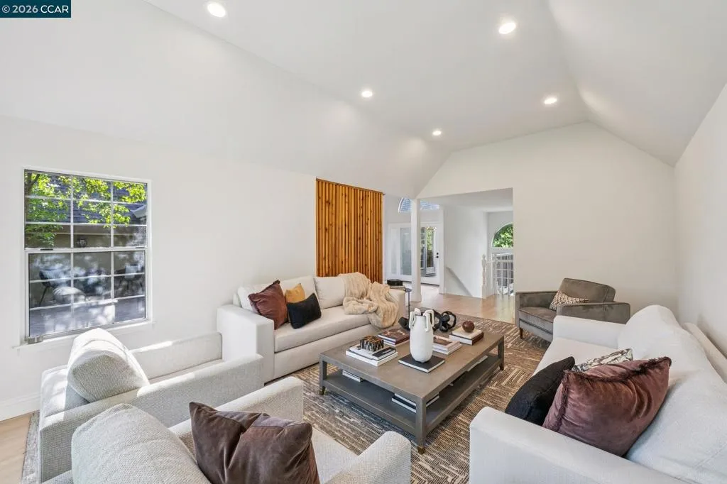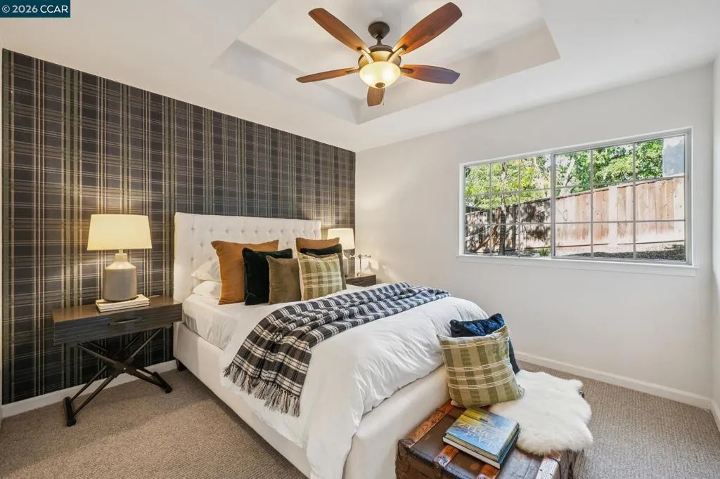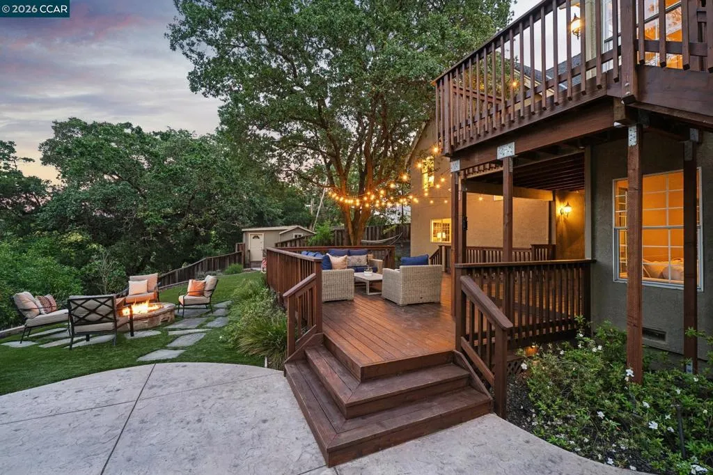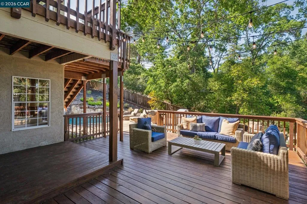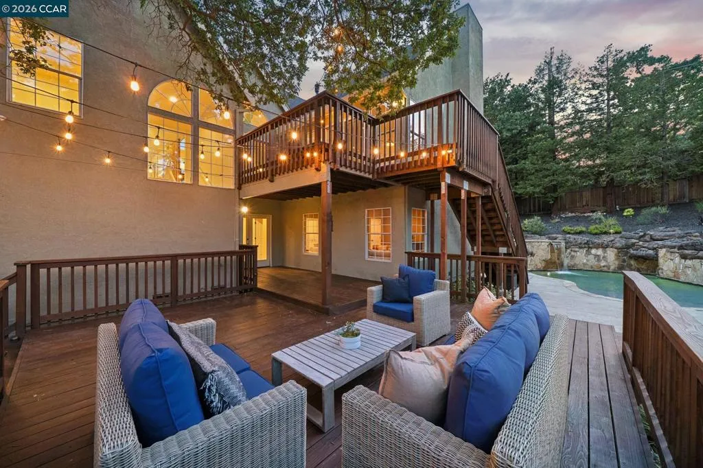 Tucked along a private lane on an expansive half-acre lot in the premier pocket of Westside Alamo, this beautifully updated 3,430-square-foot residence offers an exceptional blend of privacy, space, and resort-style living. Location highlights include: private seclusion with your own backyard oasis, minutes to the shops/dining of downtown WC, and a commuter’s dream to HW24/BART. Additionally, the house is minutes to favorite East Bay trails and accessible to the Iron Horse Trail, perfect for exercise, or a stroll to amenities in downtown Alamo/WC. The Backyard Oasis: The true soul of this home is the backyard, a resort-style sanctuary framed by towering Redwoods and mature oaks for total privacy. • Pool and hot tub: Natural rock-accented PebbleTec heated pool with a sun shelf, waterfalls, and a huge hot tub—Wi-Fi controlled. • Outdoor kitchen: Fully equipped high-end kitchen with a natural gas BBQ, fridge, and bar seating. • Natural gas fire pit: Perfect for evening drinks or s'mores under the stars. • Double decks: String lights cast an enchanting glow over the yard. • Heated outdoor shower: For ultimate resort-style living. • Detached studio: Flexible space for an office, gym, or workshop. • Level backyard: Low-maintenance turf for play and recreation. The Residence: The open-concept plan is enhanced by vaulted ceilings and abundant light, with greenery visible from every window. The updated kitchen features a quartz island, stainless appliances, and a charming eat-in nook overlooking the stunning pool. It flows into the family room, where French doors open to an expansive deck—creating the perfect indoor-outdoor connection. The home also includes an elegant formal dining room and a large living room for entertaining. The main level primary suite provides a peaceful retreat, complete with a spacious walk-in closet and a beautifully updated bathroom featuring a jetted tub and a double-headed shower. Hardwood flooring extends through main living areas, while secondary bedrooms offer new carpeting. A generous bonus room with a media projector presents a versatile option for a fifth bedroom or theater. Both secondary bathrooms are beautifully updated. With a low-maintenance front yard, an expansive driveway, and a three-car garage—complete with built-in cabinetry and EV charging—this home is as efficient as it is beautiful. This is a unique opportunity to own a piece of Alamo where your daily transit is simplified and your home feels like a vacation.