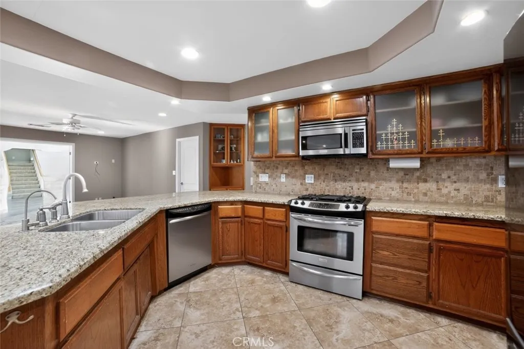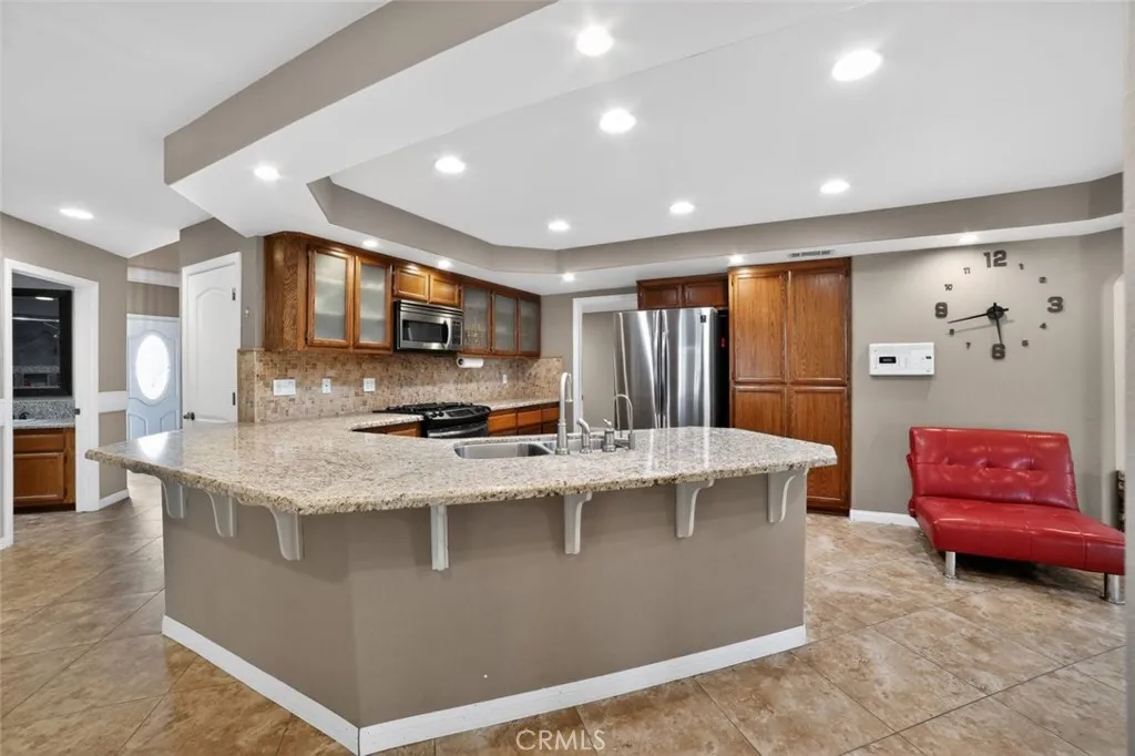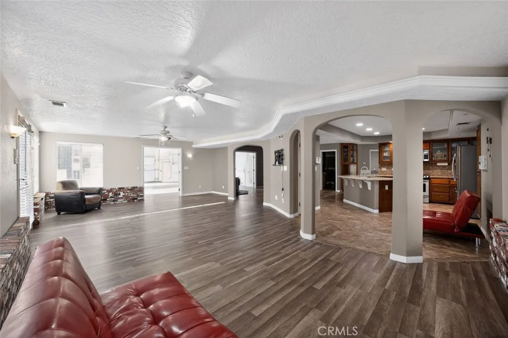 Expansive Victorville residence offering 4650 sq ft of living space with 6 bedrooms and 3 bathrooms, designed for flexibility, comfort, and functionality. This spacious home features multiple living areas with a layout that supports both everyday living and larger gatherings. The interior showcases a blend of updated flooring and generously sized rooms filled with natural light. Several living spaces provide options for a formal living room, family room, and additional flex areas, including a fireplace feature that adds warmth and character. The kitchen is centrally positioned and equipped with ample cabinetry, a large center island, and extensive counter space, making it ideal for cooking and hosting. Bedrooms are well distributed throughout the home, offering privacy and versatility. Each room provides comfortable space with closets and natural light, while the bathrooms are designed with practical layouts and include a variety of features such as dual vanities, a soaking tub, and separate shower areas. The backyard offers a spacious outdoor setting with a pool, mature landscaping, and a covered patio area that enhances usability year round. The combination of lawn space and hardscape creates multiple areas for relaxation and outdoor enjoyment. Additional highlights include a spacious driveway, attached garage, and dedicated laundry area, adding to the overall convenience of the property. Located in an established Victorville neighborhood, this home offers size, versatility, and a layout that accommodates a wide range of living needs.
