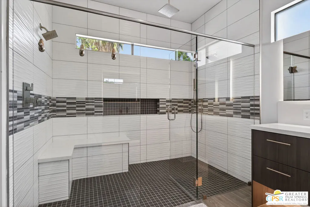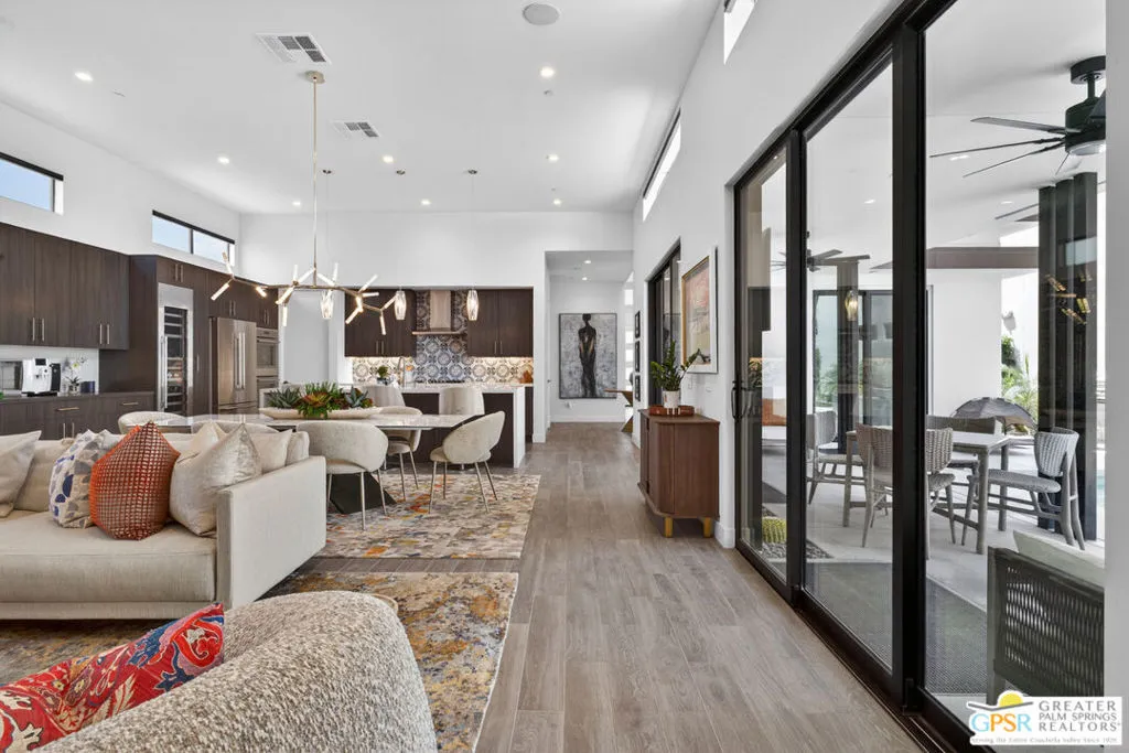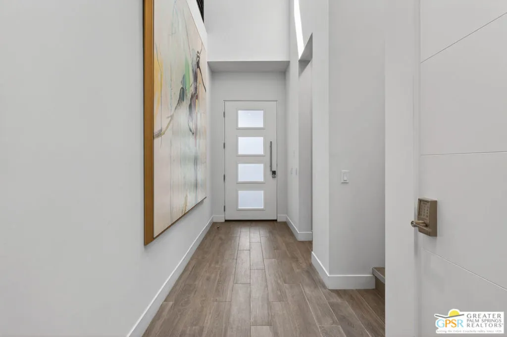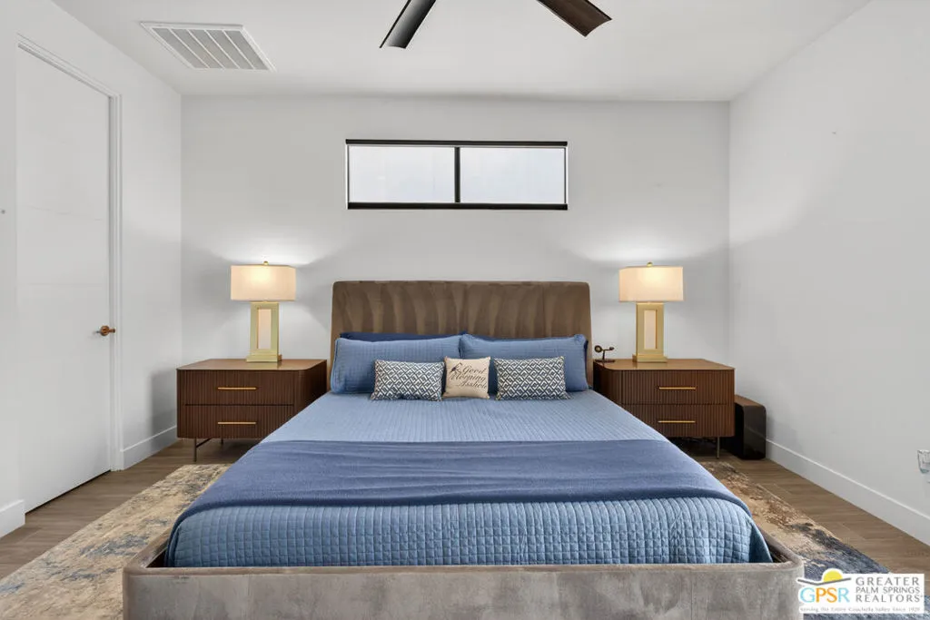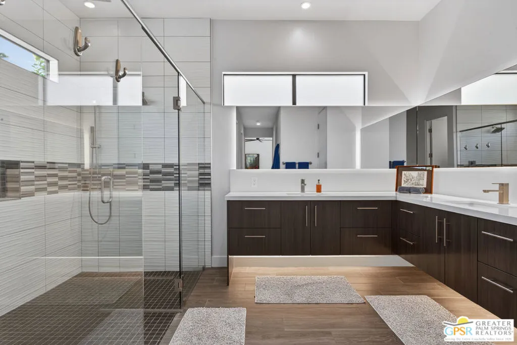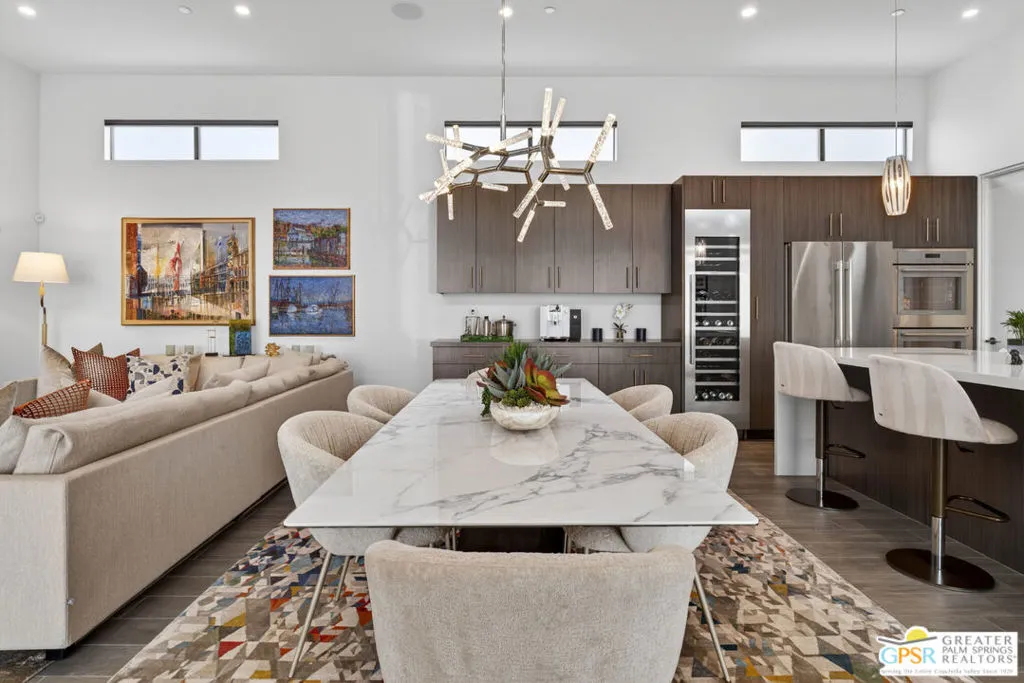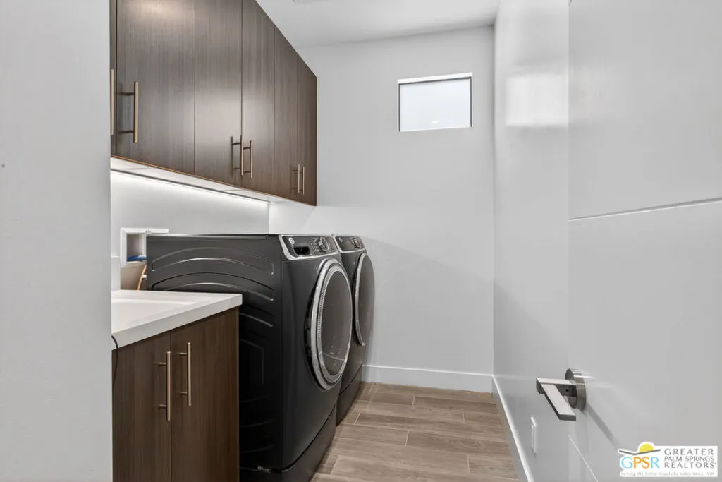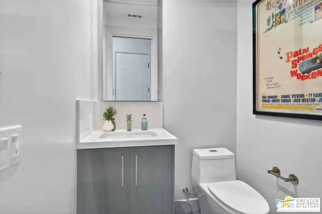 Welcome to 1320 Woodward at VUE, Where striking modern architecture pairs with laid-back desert living in one of Palm Springs' most visually compelling neighborhoods. This is more than a home; it's a statement of style, sophistication, and intentional design, where dramatic scale, clean lines, and walls of glass create a seamless connection between indoors and out. Offering the largest floor plan in VUE at an impressive 2,693 sq. ft., this 4-bedroom, 3.5-bath residence (with the 4th bedroom currently styled as a chic office/den) delivers both flexibility and privacy. A smart, modern layout places a guest retreat on the second level, ideal for visitors or multigenerational living. Every element has been thoughtfully elevated with designer finishes and premium upgrades, including a top-tier Thermador appliance suite with integrated wine refrigeration, EV charging, and an expanded OWNED solar system with 41 panels for optimal efficiency. Step outside to your own private resort. The reimagined pool is a showpiece, featuring a dramatic waterfall, fire bowls, outdoor shower, and built-in BBQ perfect for unforgettable evenings under the desert sky. Bold architecture, refined materials, and an unbeatable Palm Springs setting this is VUE living at its finest, crafted for those who demand exceptional design and elevated everyday living.