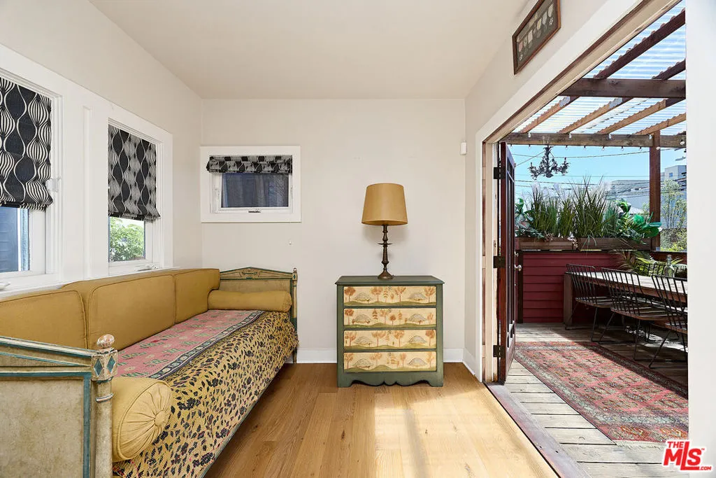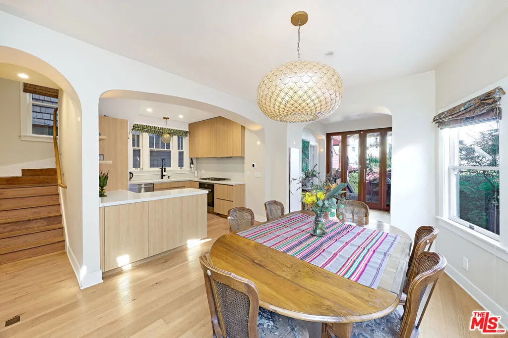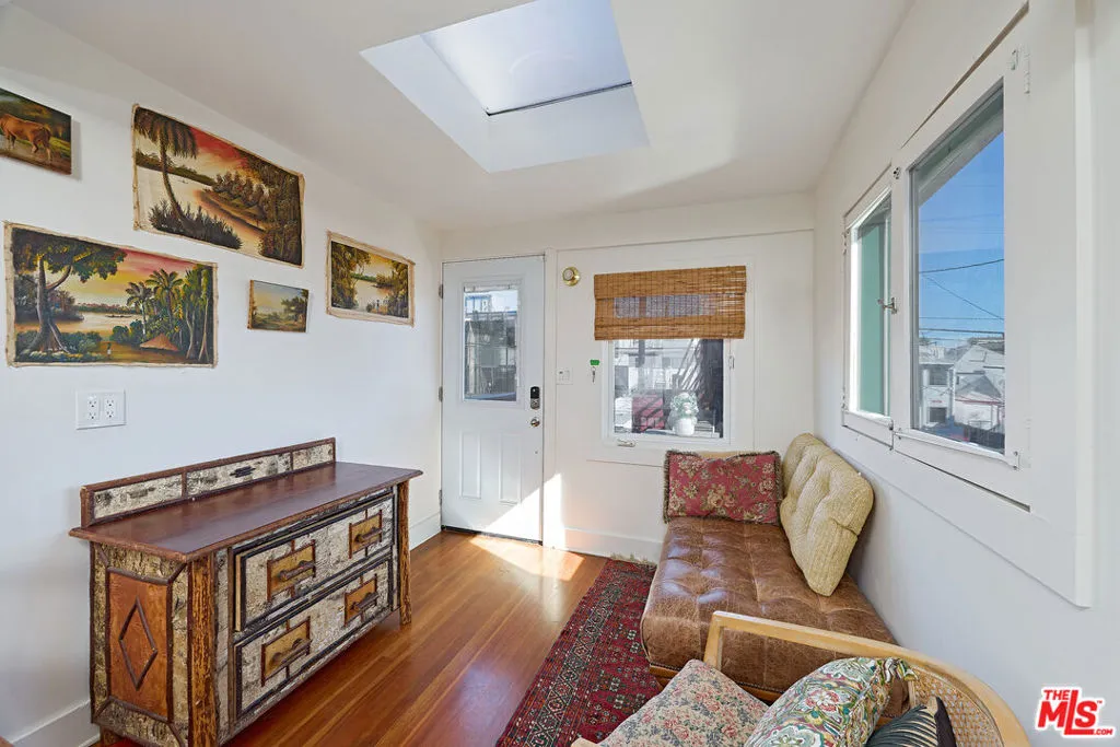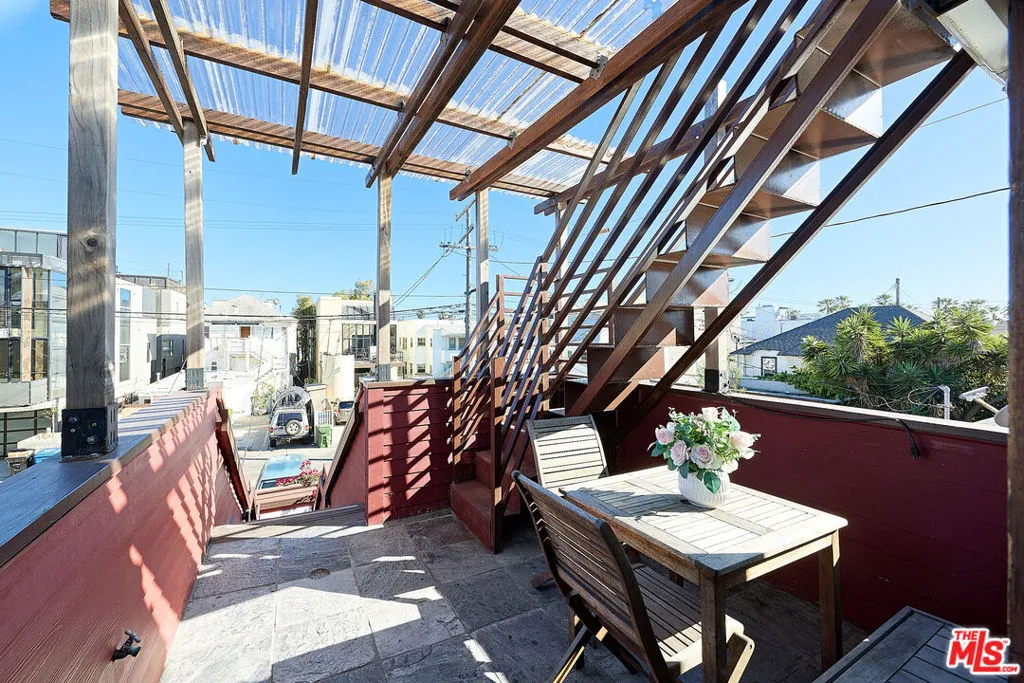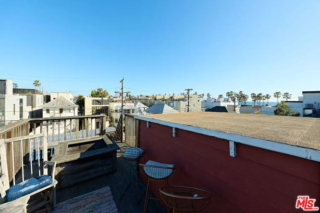 This iconic walk street Craftsman, just moments from the sand, has been thoughtfully reimagined creating a timeless coastal retreat. This rare 5-bedroom, 3-bathroom residence offers a beautifully curated living experience that honors its classic roots while embracing contemporary design. At the heart of the home, a fully redesigned kitchen showcases premium Fisher & Paykel and Miele appliances, seamlessly connecting to a spacious rear deck - perfect for indoor-outdoor gatherings. Newly installed hardwood floors on the main level pair beautifully with the restored original hardwood upstairs, creating a warm aesthetic throughout. The main level features a versatile bedroom or office and a beautifully updated full bath. Upstairs, the tranquil primary suite offers picturesque, tree-lined views, accompanied by two additional bedrooms, two stylishly renovated bathrooms, and a generous family room with sophisticated detailing. A tucked-away loft provides an intimate bonus space, while the expansive rooftop deck captures ocean views. Outdoor living is equally inviting, complete with a private outdoor shower for post-beach days and a rare three-car parking pad. Modern conveniences include a tankless water heater, Pelican whole-house water filtration system, and a comprehensive security system with cameras. With a separate entrance to the upper level, the home also offers flexibility for a private two-bedroom living space. Ideally located near Abbot Kinney, Rose Avenue, the Venice Canals, and an array of beloved dining, shopping, and wine destinations, this exceptional residence embodies the best of Venice living.