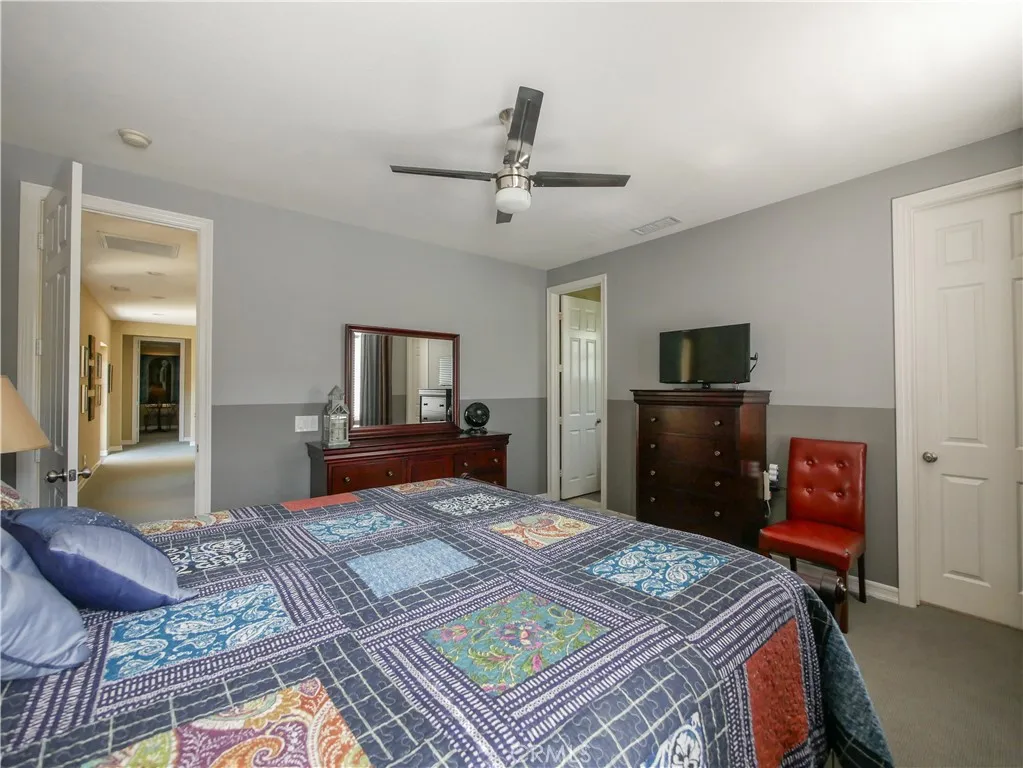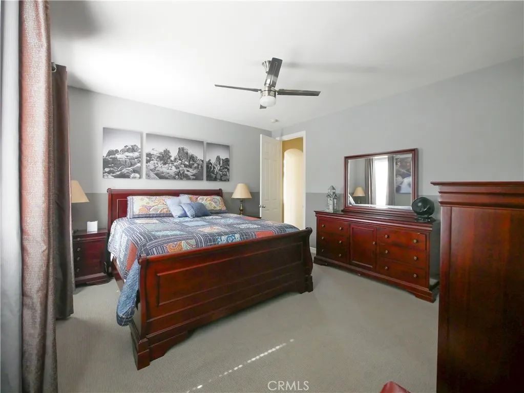 If it is perfection you demand, this house is for you! You won't find another house like it! This home backs to open space with sweeping sunrise and moon rise views! Over 4,700 sf, 5 bedrooms and 4.5 bathrooms. Unique boutique Elevator in Courtyard! Perfect for senior adult that needs to get upstairs without steps. 42 paid for solar panels and enphase battery. One-of a kind Custom Wind Cellar that holds 700 bottles! Above ground spa in the interior court yard. Furnished formal dining room, furnished formal living room, furnished front sitting room, furnished downstairs office with chairs. Gourmet chef's kitchen with all upgraded stainless steel appliances. One bedroom downstairs which is currently being used as an office, but has a full bathroom. Upstairs are 3 furnished bedrooms, one with its own private bathroom and the other 2 with jack and jill bathrooms. Also upstairs is a large bonus room/theater room with an entertainment center. Also upstairs is a large Master bedroom that extends across the entire rear of the home and has its own private balcony, perfect for enjoying your coffee in the morning with the sweeping sunrise views. All outdoor furniture is also included. Backyard is beautifully maintained with grass and hardscape. Located in the Retreat - the Inland Empire's premiere 24-hour, manned gated community.