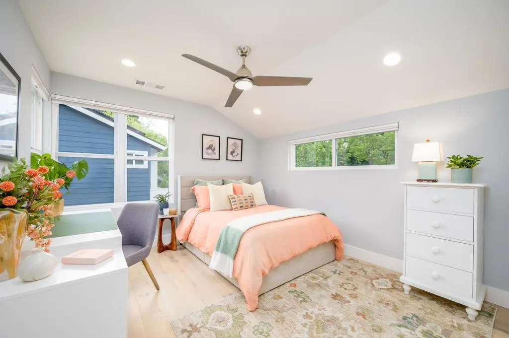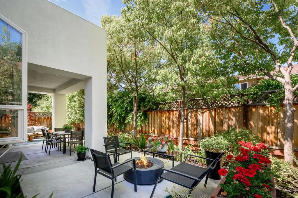 Stunning 2018-built modern home in prestigious Old Palo Alto featuring 4 bedrooms and 3 full baths. Bright open-concept layout with high ceilings, expansive windows, and a spacious great room with fireplace. Chefs kitchen with lacquered cabinetry, quartz countertops, premium appliances including Bertazzoni gas range, and large island. Sliding doors open to a private backyard with patio, fire pit, and BBQ, perfect for indoor-outdoor living. Flexible floor plan includes main-level bedroom and full bath. Luxurious primary suite with private balcony and spa-like bath. Features include smart home systems, solar panels, EV charging, dual-zone climate, and attached garage. Prime walkable location near Stanford, California Ave Shopping District, University Ave, Town & Country, Caltrain, and top Palo Alto schools with walking distance to Palo Alto High School.