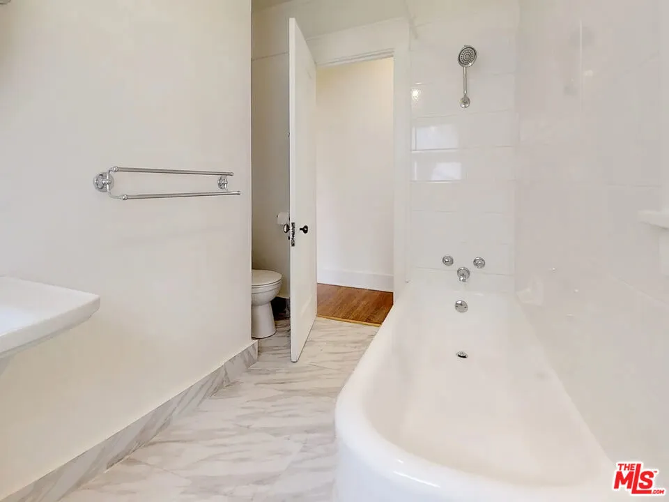 This lovely 2 bedroom, 1 bathroom upstairs unit is an architectural gem situated on a quiet, tree-lined street in the heart of West Hollywood. Offering privacy and a true standalone-home feel, this unit sits above the 4 car garage and does not share any walls with neighbors. Inside, you'll find updated appliances, newly refinished hardwood floors, and custom built-ins that have uplifted its historical character and charm. The living area consists of a cozy fireplace, built in shelving and tall windows throughout, allowing ample natural light to stream in. In addition to the open floor plan living and dining room, the kitchen has a perfect area to house a breakfast nook. The unit is equipped with central heating and multiple newly replaced AC units. This unit can also be leased with a reserved parking space. Plenty of street parking. This unbeatable location has a Walk Score of 91 out of 100, putting you within a block of amenities, restaurants and shopping. Most errands can be accomplished on foot, with Gelson's and Earthbar a block away. Nearby parks include William S. Hart Park, West Hollywood Park and Rosewood Park. Within close proximity to historical hotspots like The Comedy Store, Whiskey A Go-Go, The Troubadour, and more, it's also located near grocery stores, shops, parks and the best restaurants in town.
