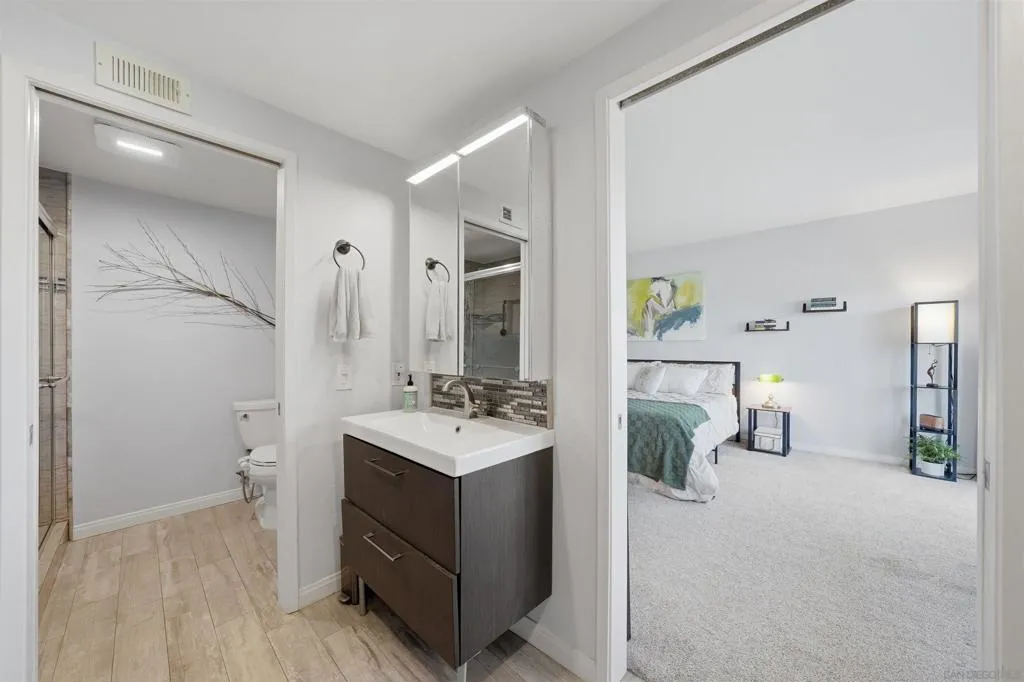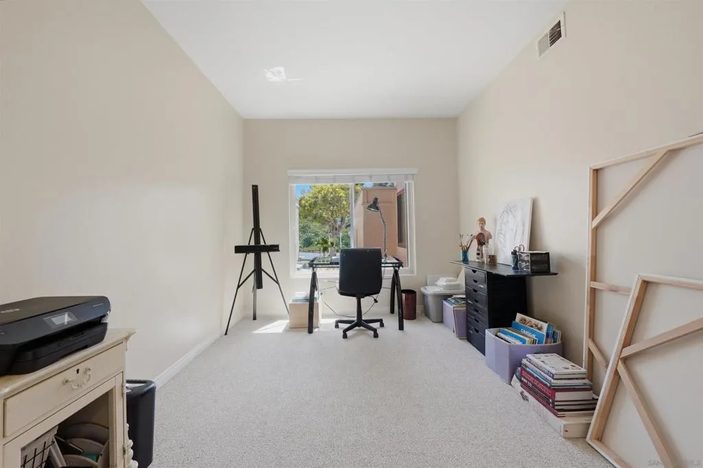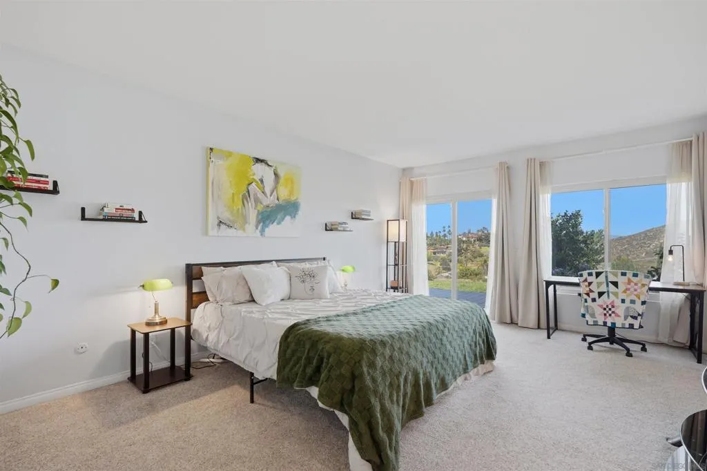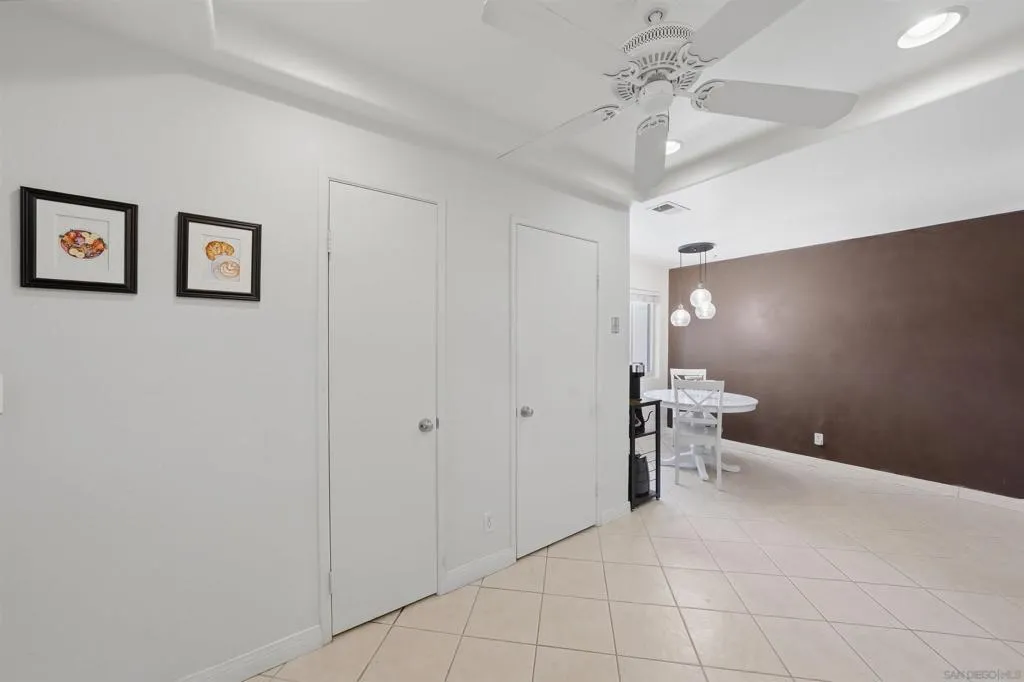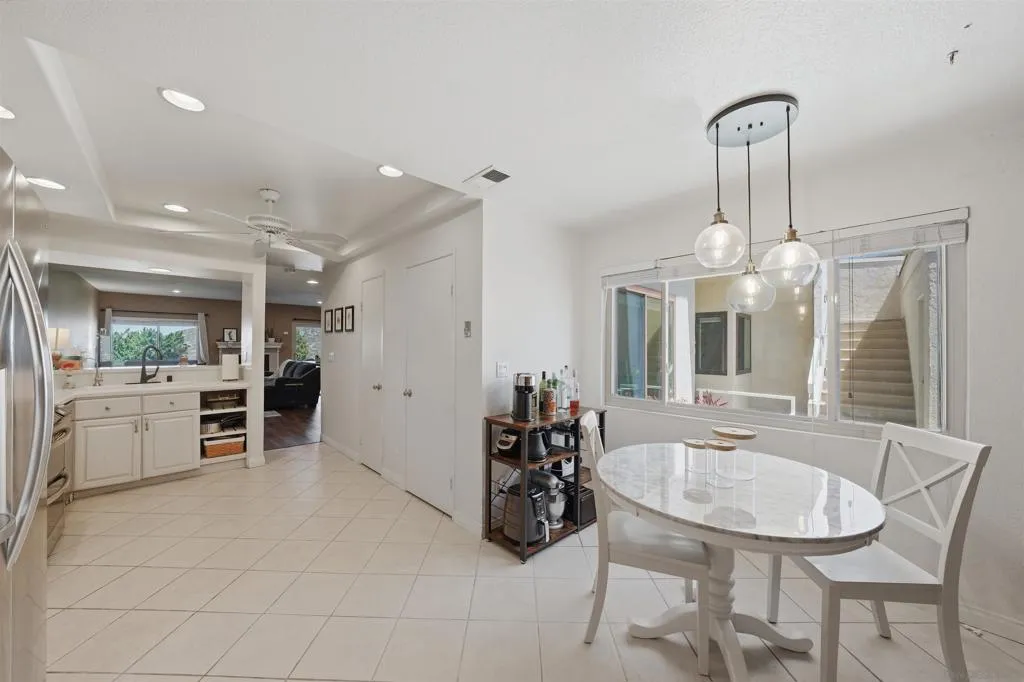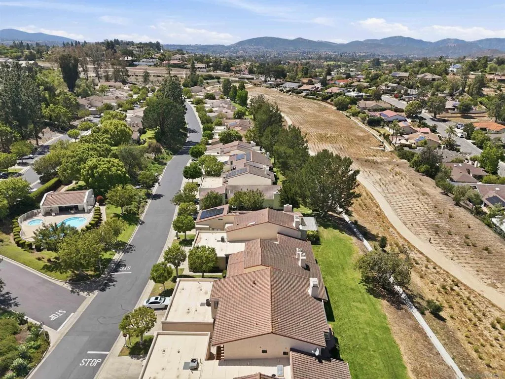Welcome to Stoneridge Châteaus! This downstairs, 1,624 sq. ft. move-in ready home offers 2 beds/2 baths with a versatile bonus room that can serve as a den, office, 3rd bedroom or playroom! You’ll enjoy the unobstructed panoramic views of the mountains and green belt from your great room, master suite and large private patio! And the home features high ceilings to give a nice open feel. Recently remodeled bathrooms, newer tile, vinyl planking and carpet, and kitchen with hard surface counter tops, abundant cabinetry, and stainless-steel appliances. And you’ll enjoy central HVAC that keeps the home comfortable year-round. The floor plan features a large open-concept living room, dining area, inside full-size laundry closet (washer/dryer included). The master bedroom is large and has a recently upgraded walk-in closet! And your 1.5 car garage has lots of storage cabinets, and nearby guest parking. The HOA covers water, sewer, trash, exterior maintenance and it recently replaced the roof in 2024. Pets are allowed and amenities include two clubhouses with TWO YEAR-AROUND HEATED pools and hot tubs, 1 mile of private common area green belt space and adjacent to The Farm development with easy access to 3.5 miles of public walking trails! Minutes to Lake Poway, Valle Verde Park, nearby golf, dining, shopping and convenient freeway access. And for family’s with kids, you’ll appreciate the home is located in the award-winning Poway Unified School District. Note that this is NOT a 55+ community and easy to show. VA & FHA loans are approved!