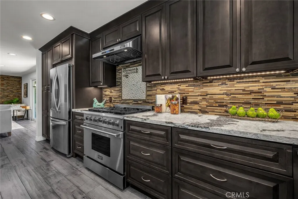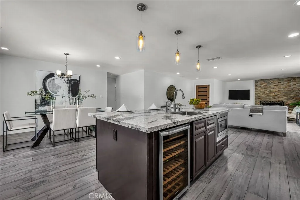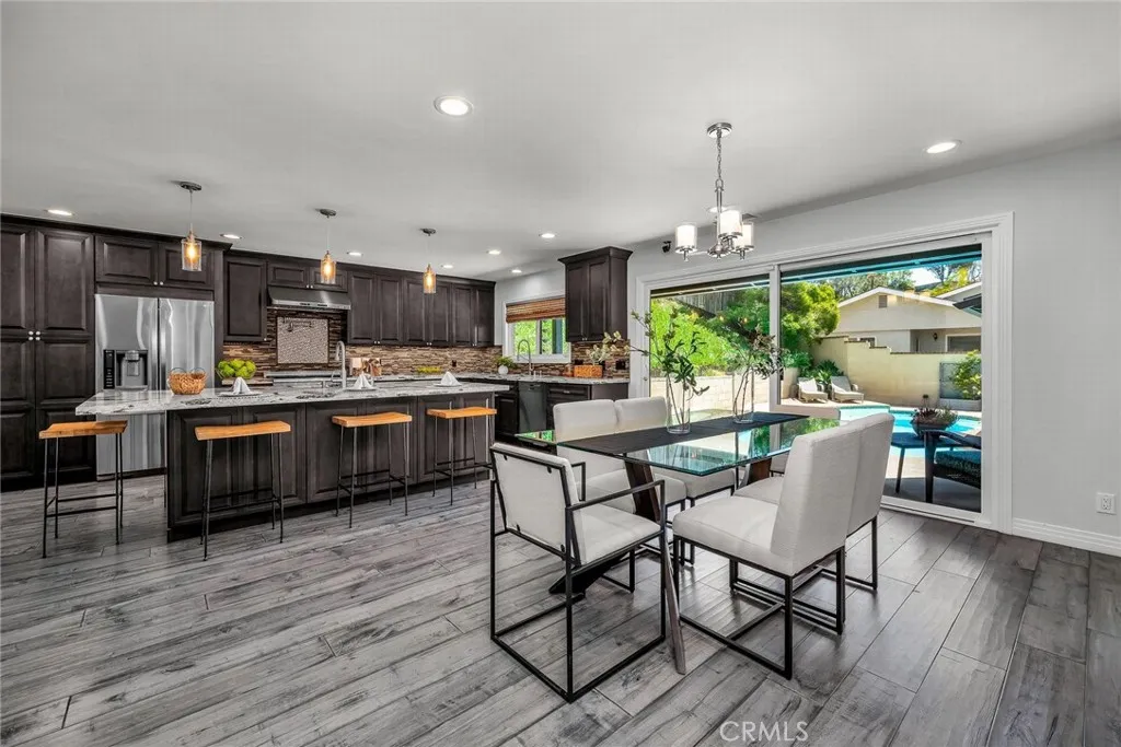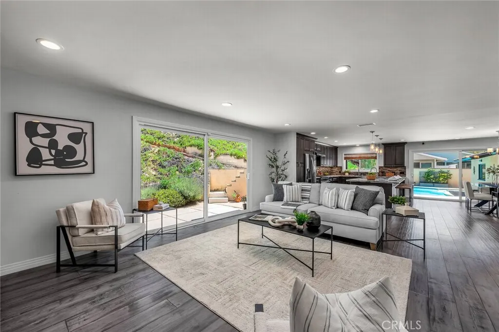 Lovely remodeled Montecillo single level, 3 bedroom, 3 bath pool & spa home on estate size .41 acre lot. The open floorplan offers seamless blend of indoor-outdoor comfort, privacy & functionality. Welcoming covered front entry opens to warm & inviting living room with stone facade gas fireplace, spacious dining area & chef’s delight kitchen. Large center island with breakfast counter, quartz & tile finishes, 2 stainless steel sinks & disposals, undercounter lighting & stainless steel appliances including refrigerator, 36” 6-burner gas range, hood, wine cooler, microwave oven & dishwasher. Hardwood floors, dual pane windows & upgraded doors throughout. The primary suite has walk-in & mirrored wardrobe closets & beautifully finished quartz & tile bath with dual sinks, large separate shower & soaking tub. Additional bedrooms have mirrored wardrobe closets & Plantation shutters & baths have attractive stone & tile finishes. Convenient inside laundry room with washer & dryer & pull-down stairs in hallway for extra attic storage. The property was extensively remodeled throughout in 2016-17 including sewer & gas lines, ABS waste & copper plumbing, HVAC system (furnace, condenser, ductwork & Nest thermostat), tankless water heater, upgraded panel & electric service, recessed LED lighting, pre-wired for sound at pool patio, pool replumbed, pool heater, pebble decking around pool with drains, irrigation system & landscaping. Newer light-weight tile roof, engineered concrete drainage at the top of rear hillside, water softener, security & multiple smart systems plus heavy-duty shelving, 220V & 20A outlets, roll up garage door & opener in attached 2 car / finished garage. Ideally located in the N/E section of Rolling Hills Estates, near Jack Kramer Club, Rolling Hills Country Club & award-winning Palos Verdes Schools, with easy access to shopping, restaurants & freeways. Enjoy morning coffee on the rear patio & sunset cocktails around the pool & spa!