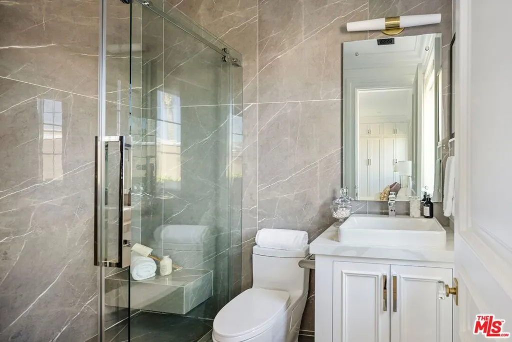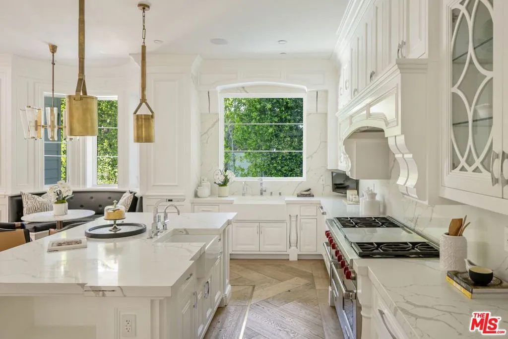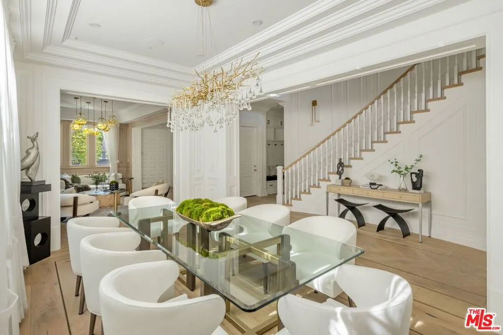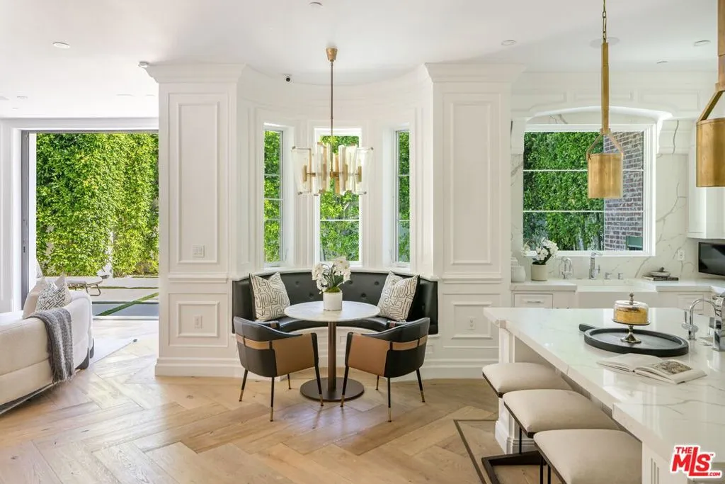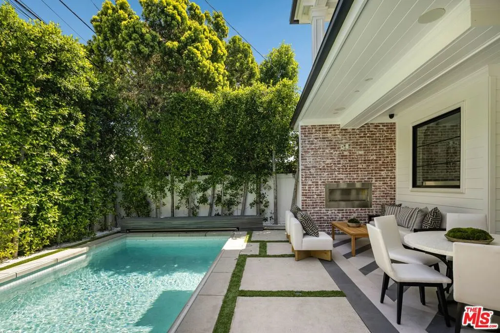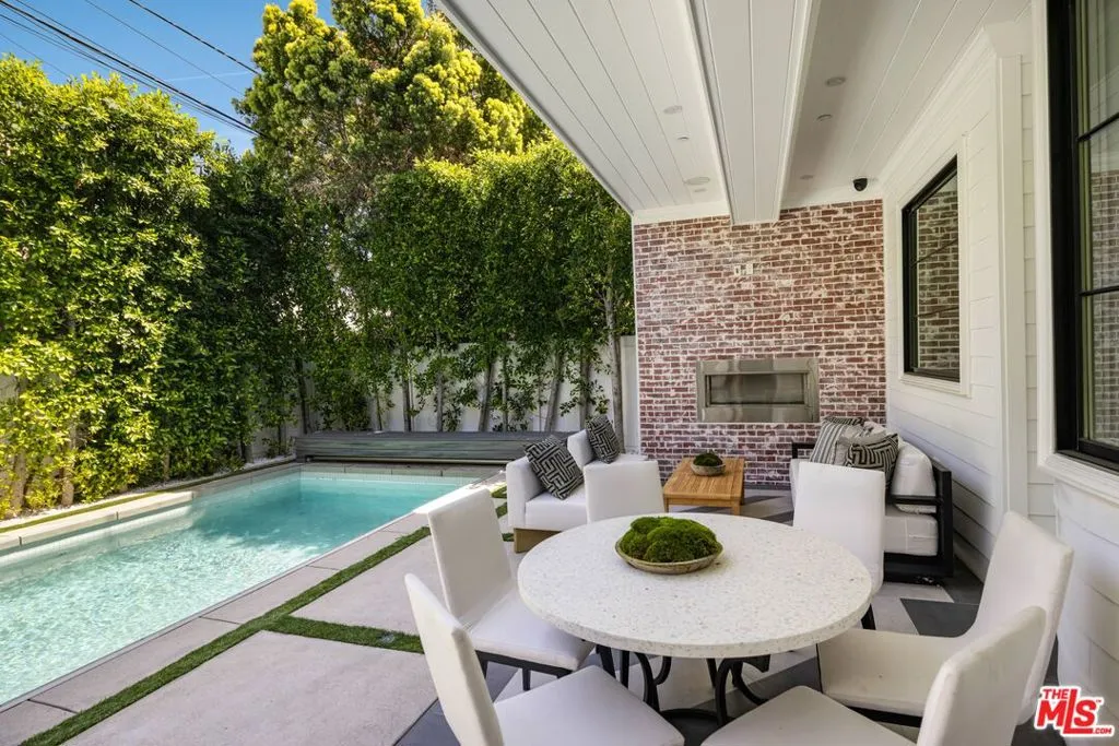 A striking modern Cape Cod in the heart of Beverly Grove, where timeless architecture meets refined, design-forward living. Set behind a clean-lined facade with crisp white brick, bold black accents, and classic detailing, the home delivers immediate curb appeal with a presence that feels both sophisticated and enduring. Step inside to a dramatic, light-filled interior where soaring ceilings and defined architectural lines create a sense of scale and flow. The main living spaces unfold seamlessly, designed for both elevated entertaining and effortless daily living. At the center of the home, a chef's kitchen appointed with Sub-Zero and Wolf appliances, custom cabinetry and an oversized island anchors the space opening to a warm, inviting family room framed by walls of glass. The transition outdoors is seamless, revealing a private backyard retreat curated for the Los Angeles lifestyle, complete with a white-pebble pool and spa, outdoor fireplace and multiple lounge and dining areas. The main level also features a home theater, curated wine room, guest suite, and powder room thoughtfully designed to balance function with luxury. Upstairs, additional en-suite bedrooms and a dedicated office are complemented by a primary suite that serves as a true sanctuary, offering designer closets, a private balcony, and a spa-inspired bath with soaking tub and oversized shower. Every detail has been carefully considered from smart home integration and multi-zoned climate control to integrated security and modern systems creating a residence that is as effortless as it is refined. Located just moments from The Grove, Beverly Center, and West Hollywood's most sought-after dining and retail, this is a rare offering that captures the essence of Beverly Grove living timeless, polished and built to impress.