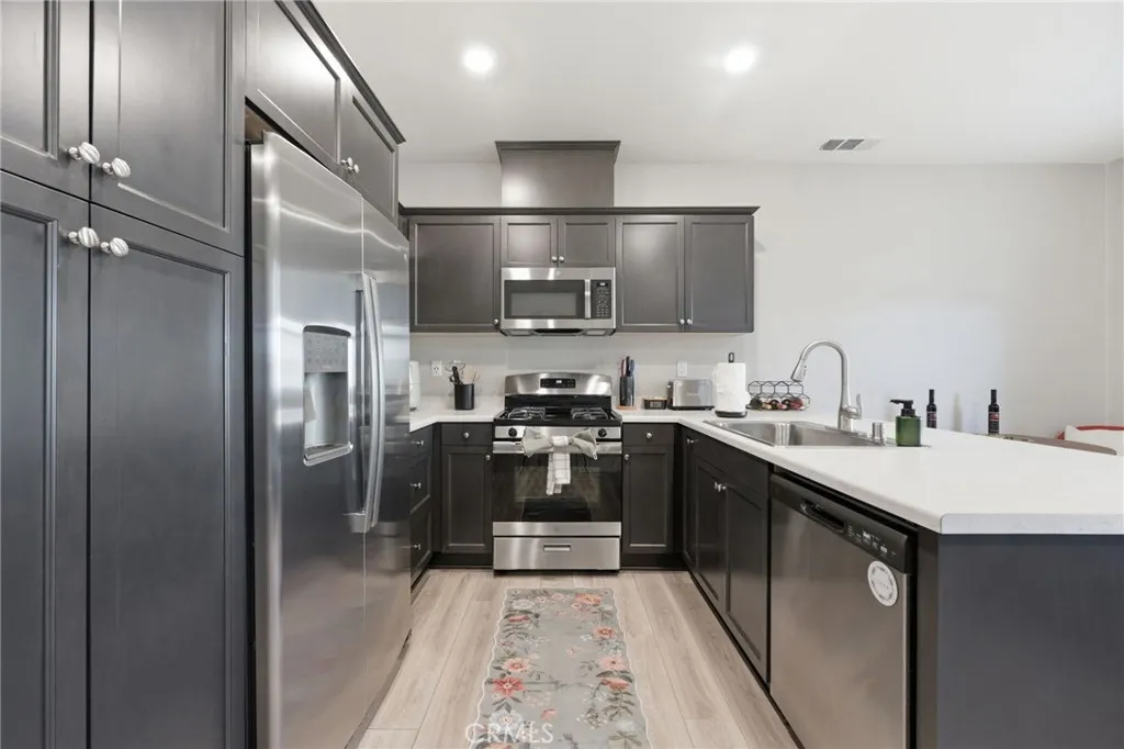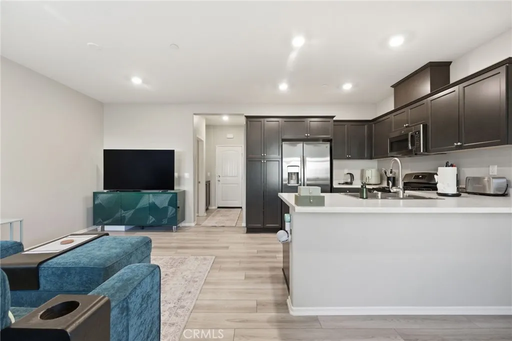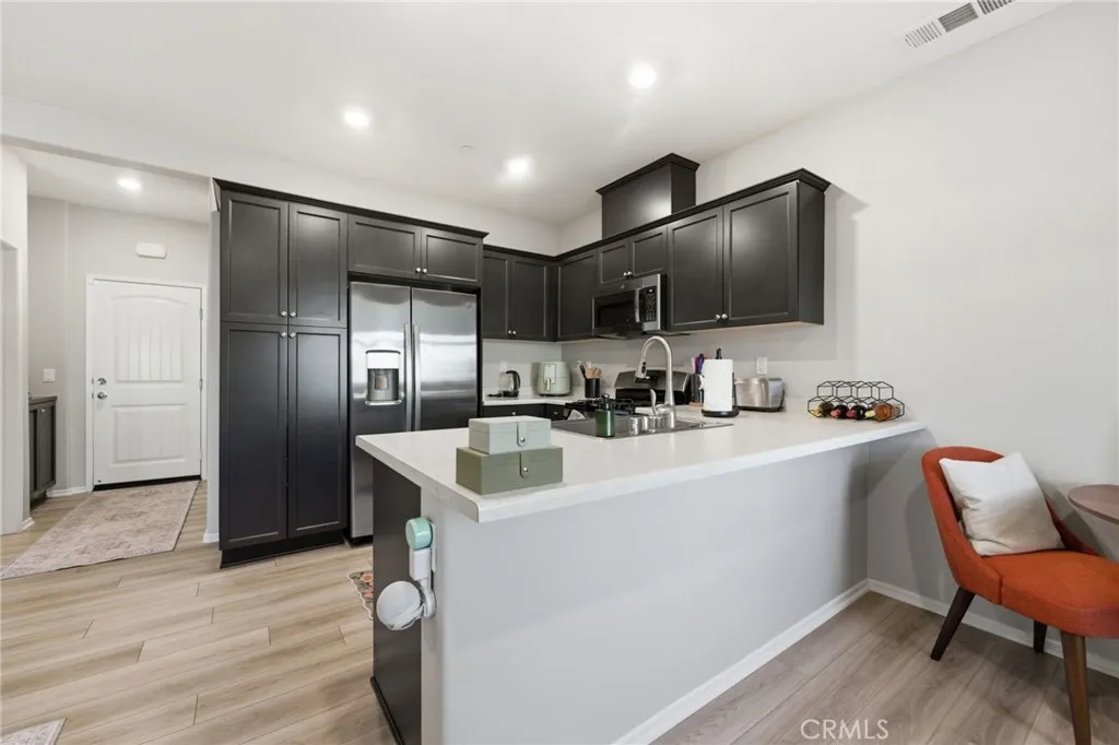 Welcome to this well-maintained and thoughtfully designed 2-bedroom condo, where location and modern living come together. Built in 2021, this home offers a clean, updated feel and a functional layout suited for everyday living. Ideally situated with convenient access to the 215 freeway, this property is within walking distance to restaurants, shopping, and nearby walking, hiking, and biking trails. It is also located near Santa Rosa Academy, a highly regarded charter school. The community offers a variety of amenities for residents to enjoy, including a pool, playground, outdoor cooking and BBQ area, and well-maintained grounds. Additional features include walking paths with fitness stations and open park areas. This condo features a private front patio with a gated entry, offering a comfortable outdoor space with views of the nearby school. Inside, the main level offers an open floor plan with the living, dining, and kitchen areas seamlessly connected. The kitchen is equipped with stainless steel appliances, and the main floor also includes a convenient half bathroom and direct access to the two car garage. Vinyl plank flooring is featured throughout the downstairs area, as well as in the bathrooms and laundry room. Upstairs, the layout includes a spacious primary bedroom with a walk-in closet and an ensuite bathroom featuring dual sinks and a step-in shower. You will also find an additional bedroom, a versatile loft area, a full hall bathroom, and a dedicated laundry room. The upstairs living spaces offer comfort and flexibility, with carpeted flooring throughout. Additional features include a leased solar system and a tankless water heater, contributing to energy efficiency. This home presents a great opportunity to own a newer condo in a highly convenient location with access to a variety of nearby amenities. Do not miss this opportunity, schedule your showing today!